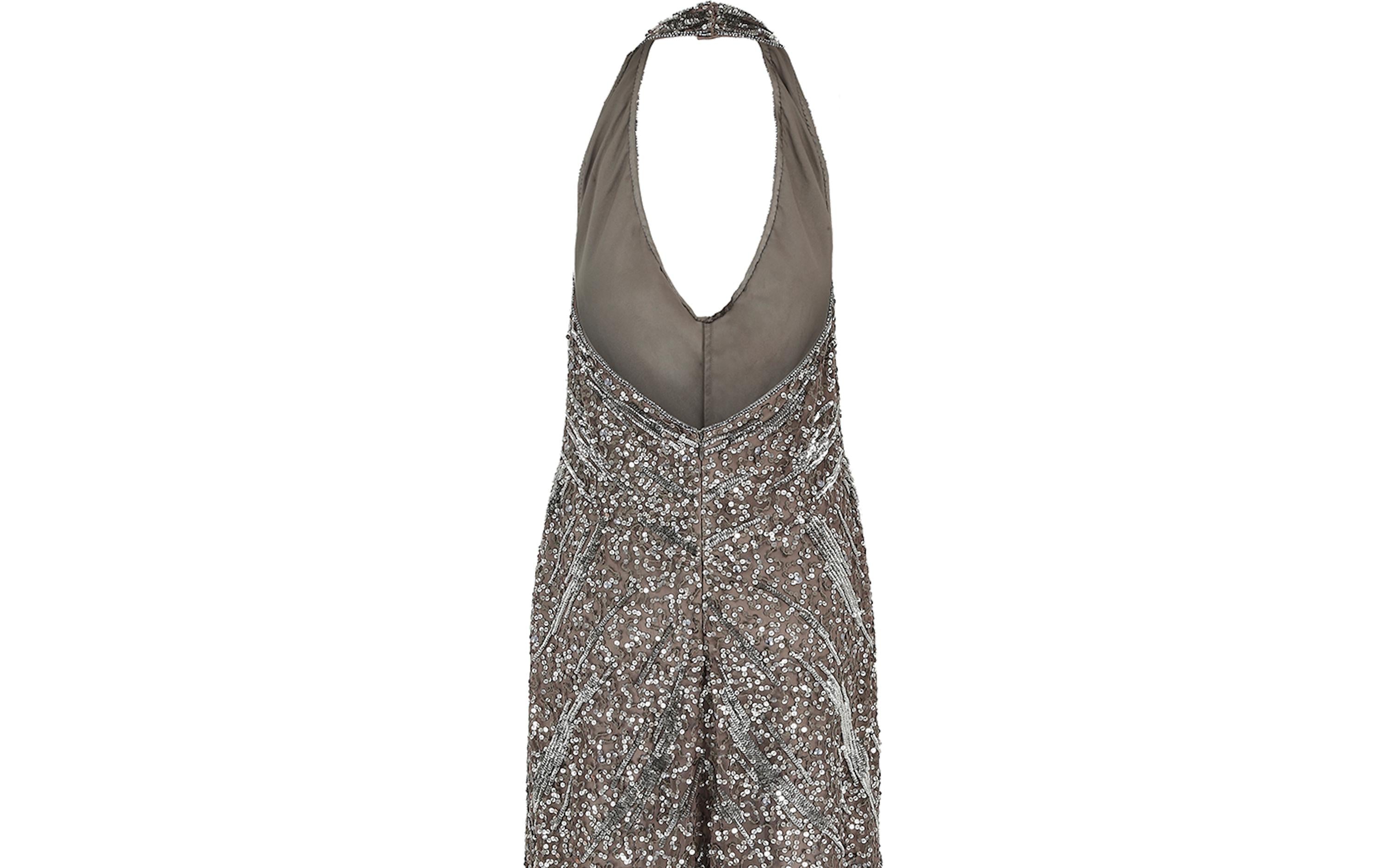 2000s Max Mara Silver Sequin Halter Neck Dress