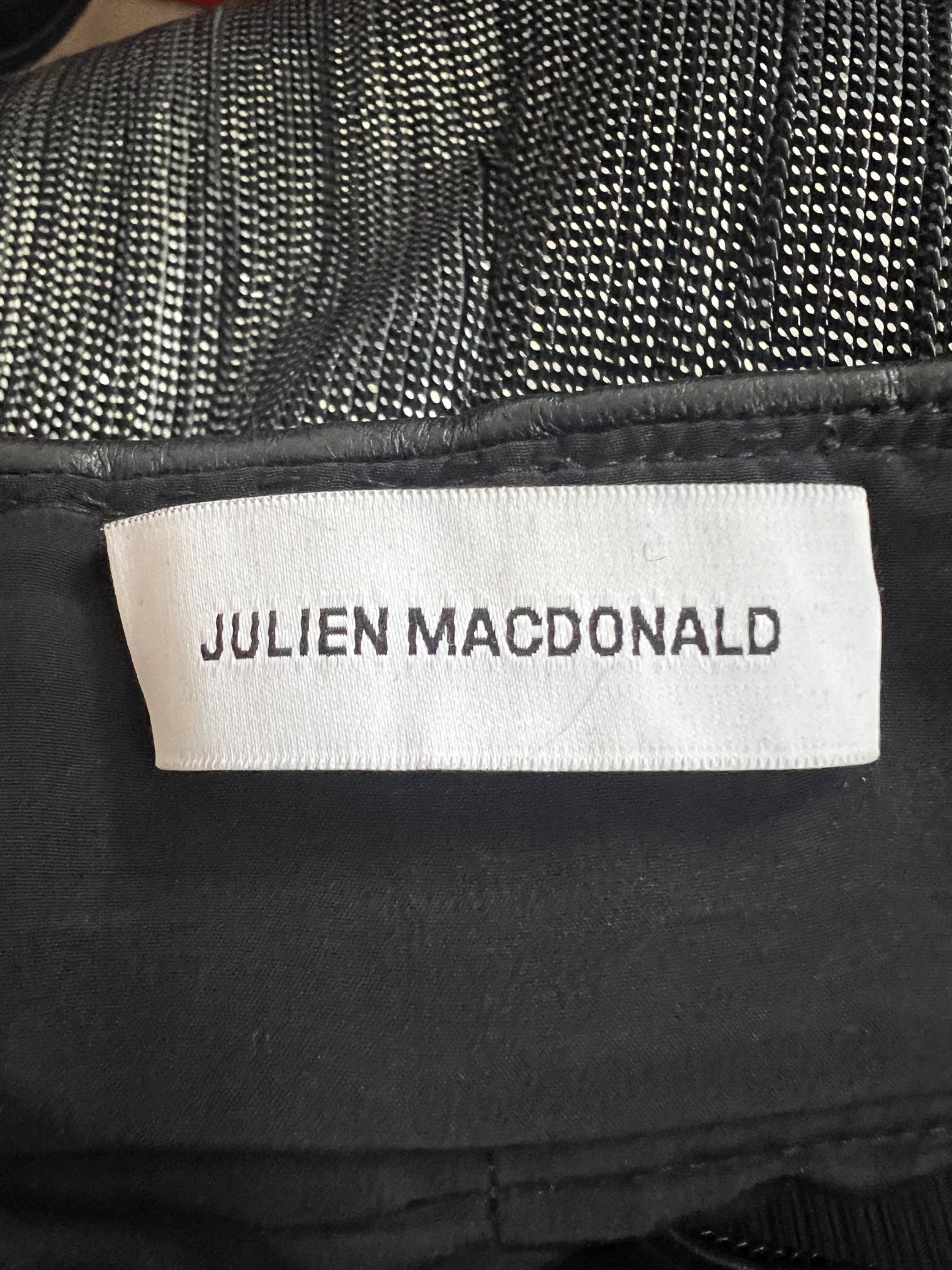 Note on the designer: Julien Macdonald OBE rose to prominence in the late 1990s. After graduating from the Royal College of Art, he was hired by Karl Lagerfeld to work at Chanel, and was later appointed chief designer at Givenchy. In 1997, Macdonald launched his eponymous label and it was here that he cemented his reputation for high-octane, couture-level craftsmanship. He was named “British Fashion Designer of the Year” at the 2001 British Fashion Awards and, in 2006, he was awarded an OBE for services to fashion. Macdonald is known for his meticulous handwork, opulent fabrics, and body-sculpting silhouettes that marry traditional techniques with unabashed sensuality. His designs, often featuring intricate beading, feather work, and lacework, have made him a red carpet favorite and a key figure in modern fashion, celebrated for reviving the spectacle and decadence of haute couture in a contemporary context.
