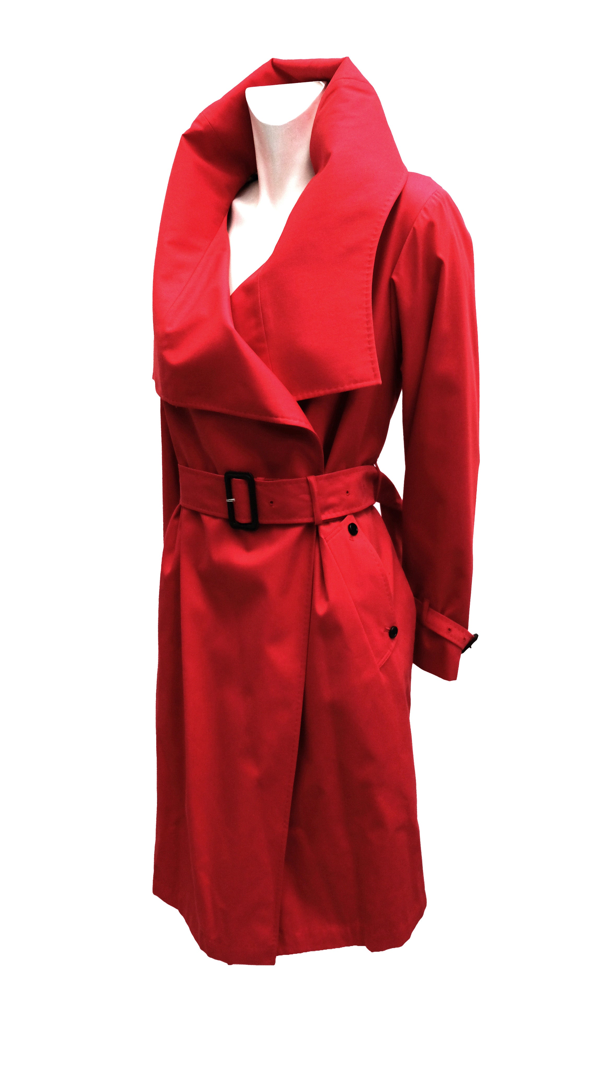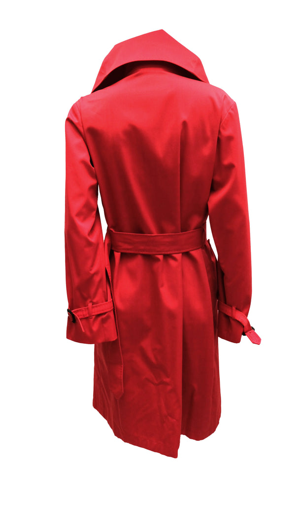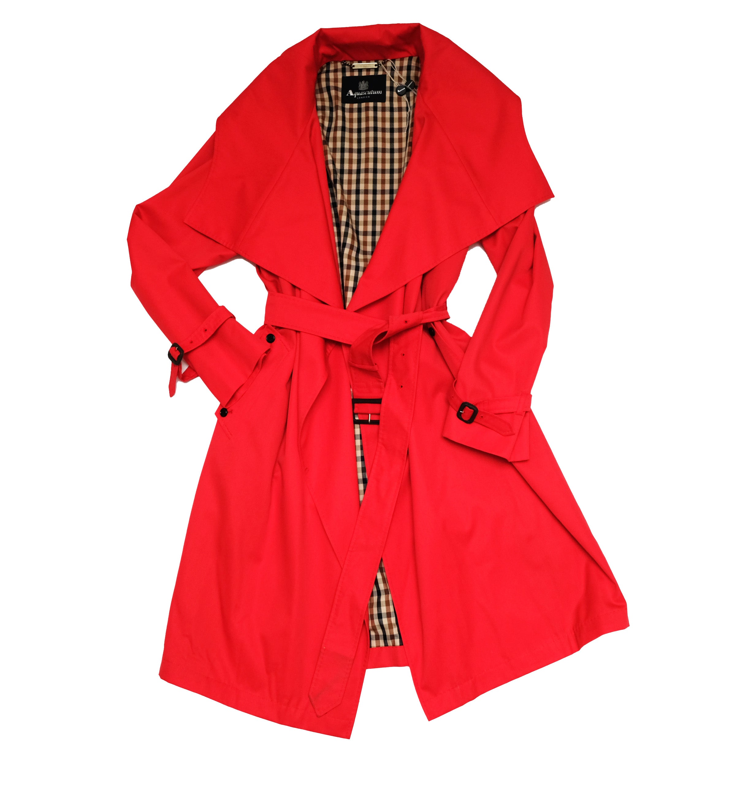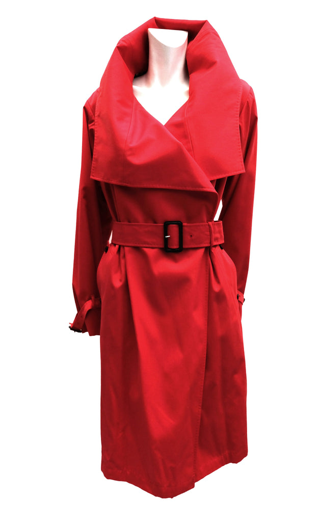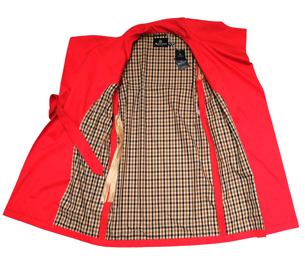 Aquascutum Belted Raincoat in Red with Wide Collar, UK12