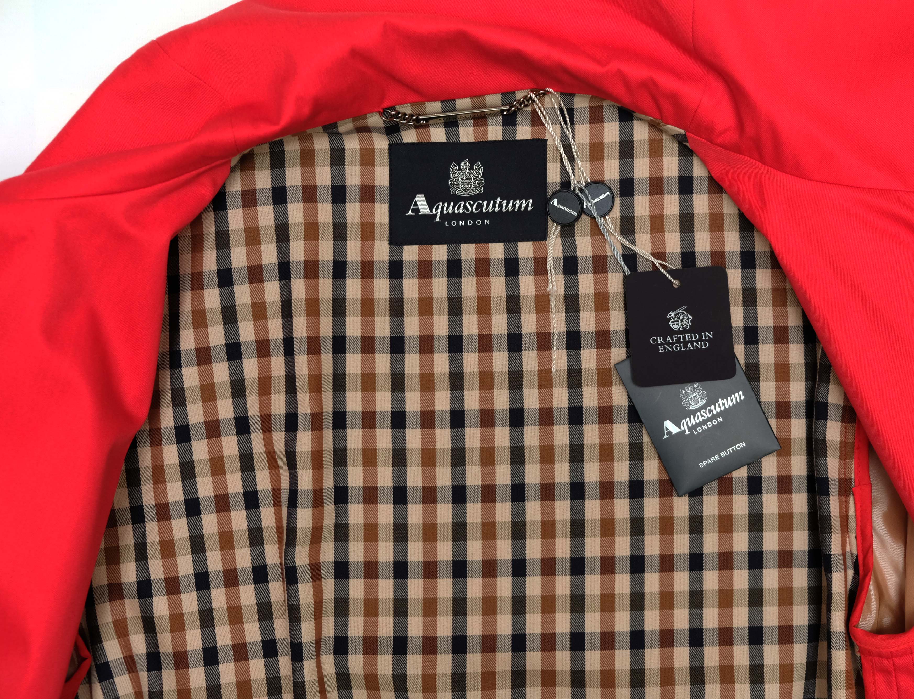 A bold and stylish c.2000s raincoat by Aquascutum in post box red cotton.