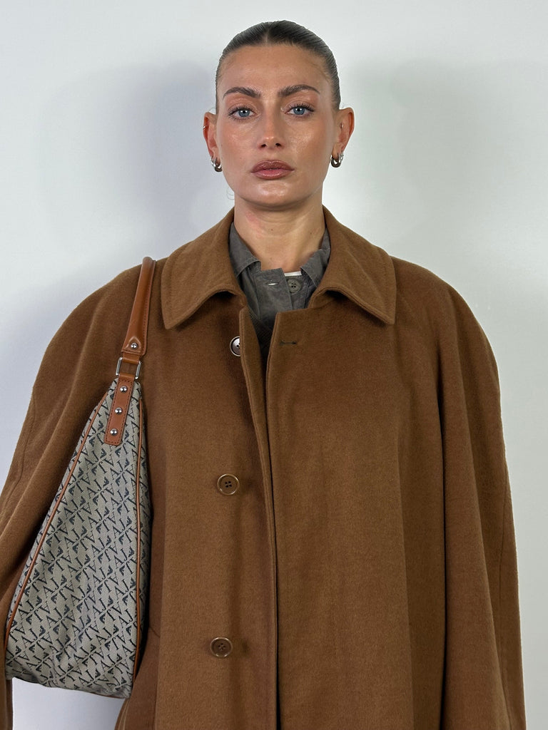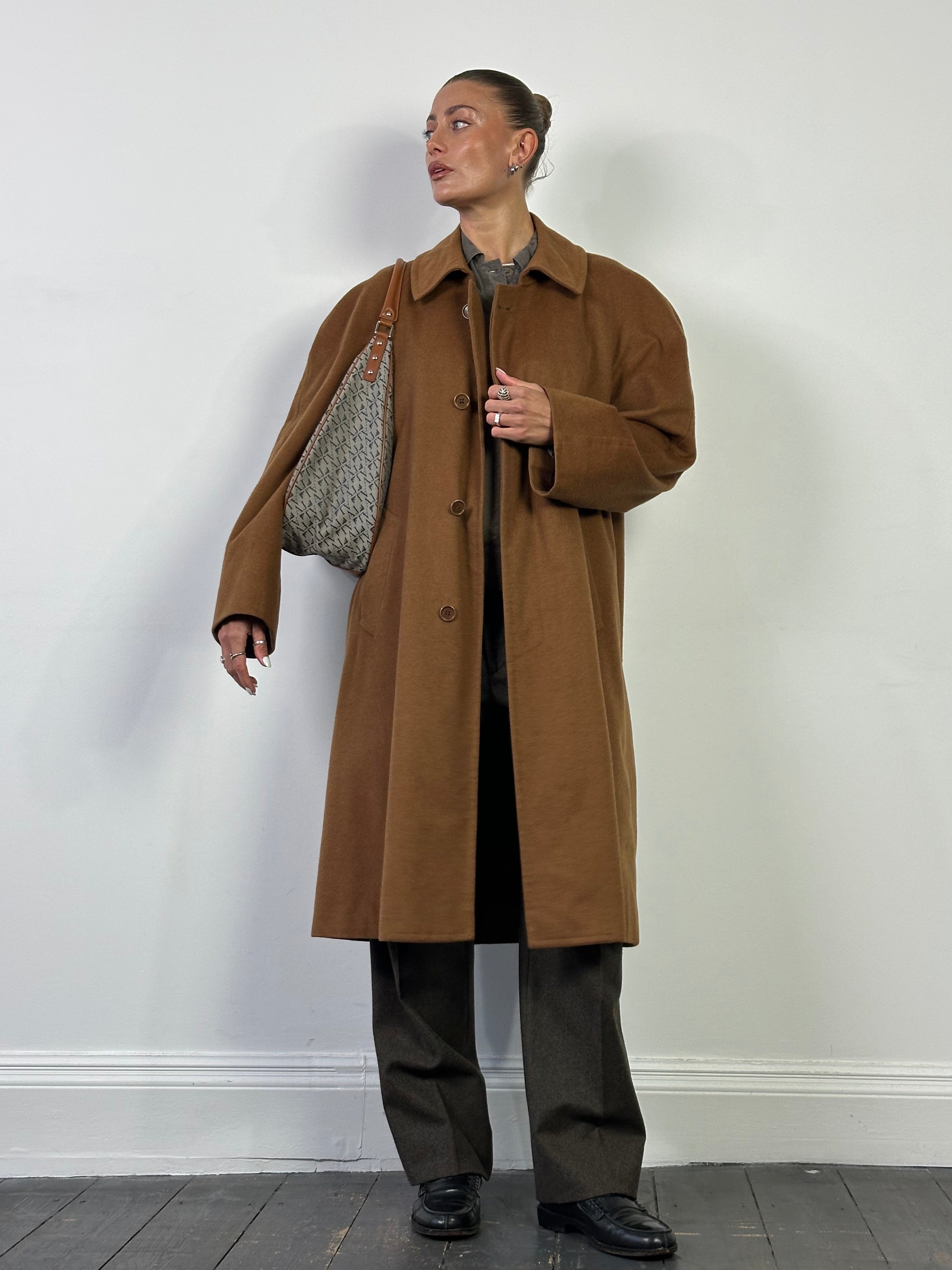 British Vintage Pure Cashmere Concealed Placket Coat - XL