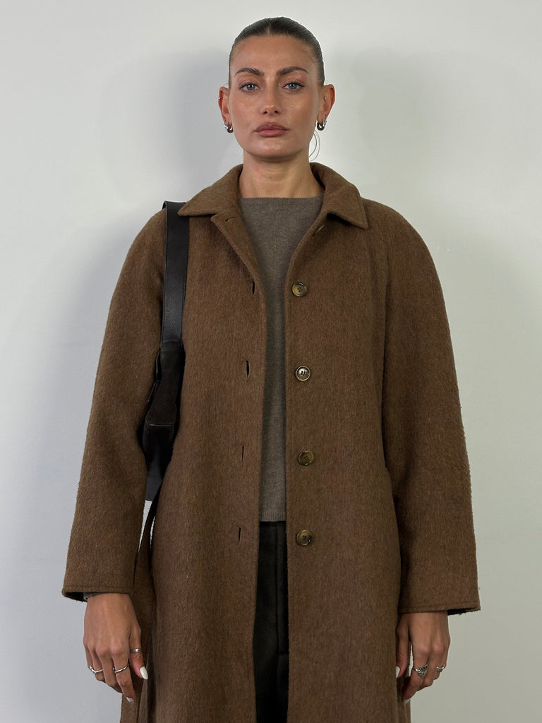 Marella 90s Brushed Wool Single Breasted Belted Coat - M