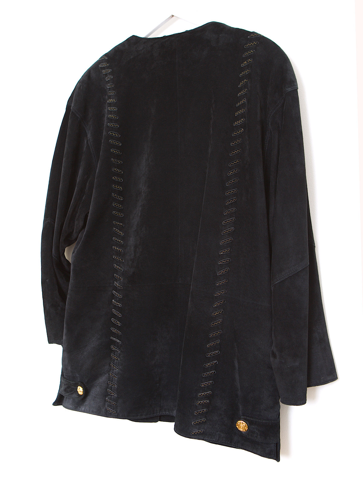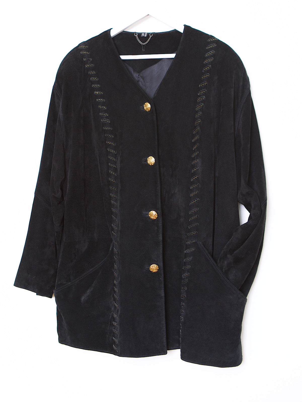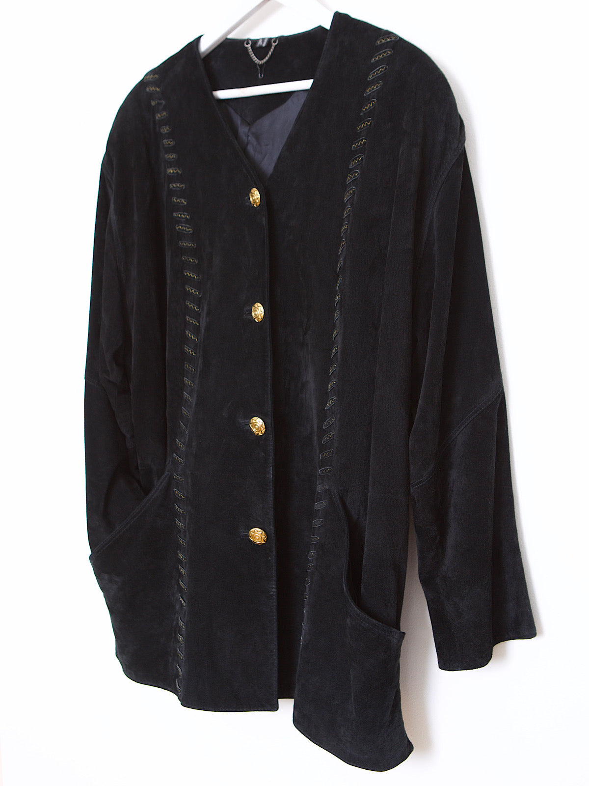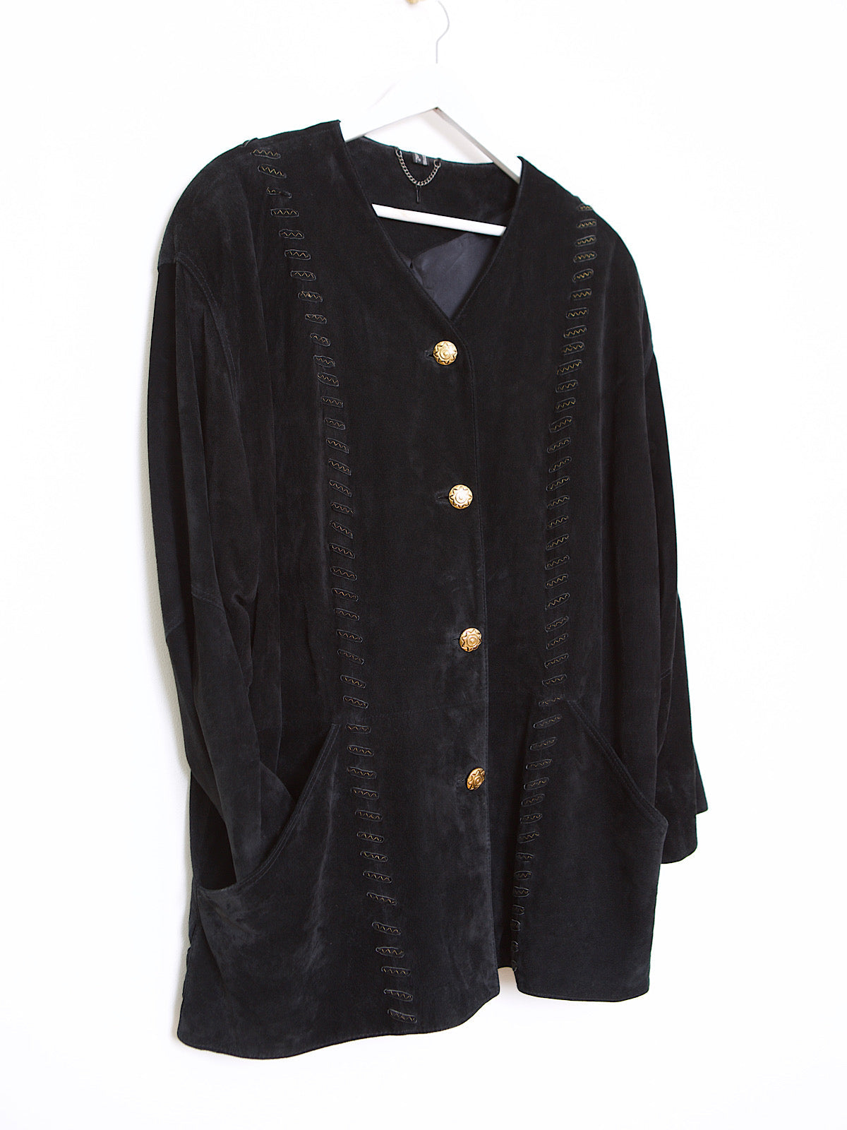 VINTAGE BLACK LEATHER SUEDE COAT GOLD DETAILS