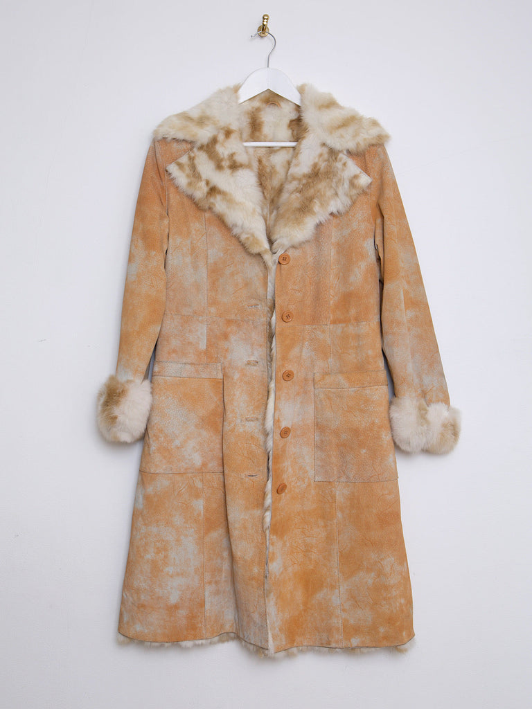 Amazing vintage coat! The tie dye effect looks so great. And the real fur inside is a real delight, it feels so good on your skin.