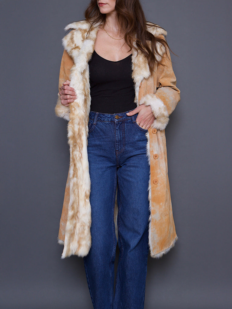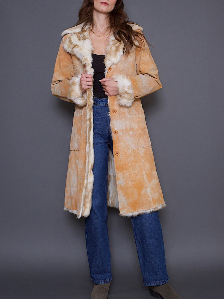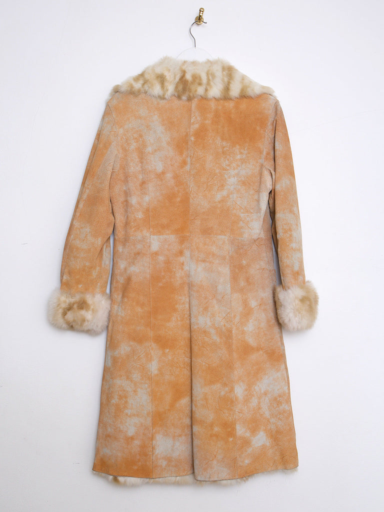 Y2K VINTAGE SUEDE & REAL FUR COAT TIE DYE EFFECT