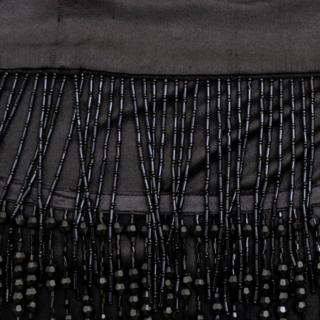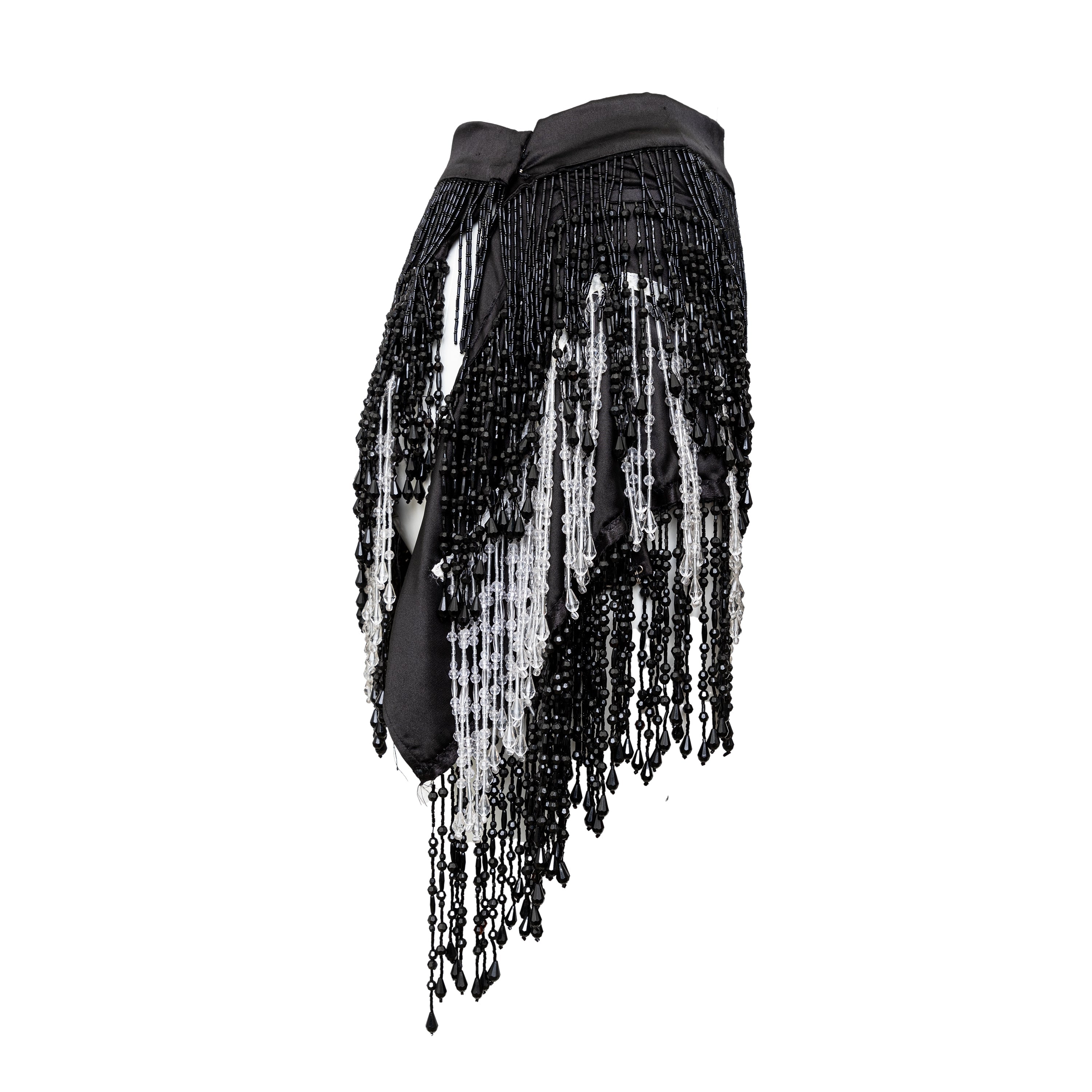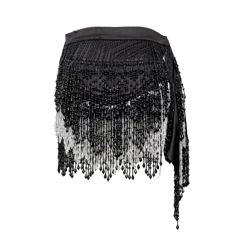 This Collection Privée Beaded Short Skirt is a true gem, perfect for any vintage fashion lover. The wrap style is adorned with intricate black and white beadwork, reminiscent of the glamorous 1920s flapper style. The satin fabric lining adds a luxurious touch, while the hook closure ensures a secure fit.