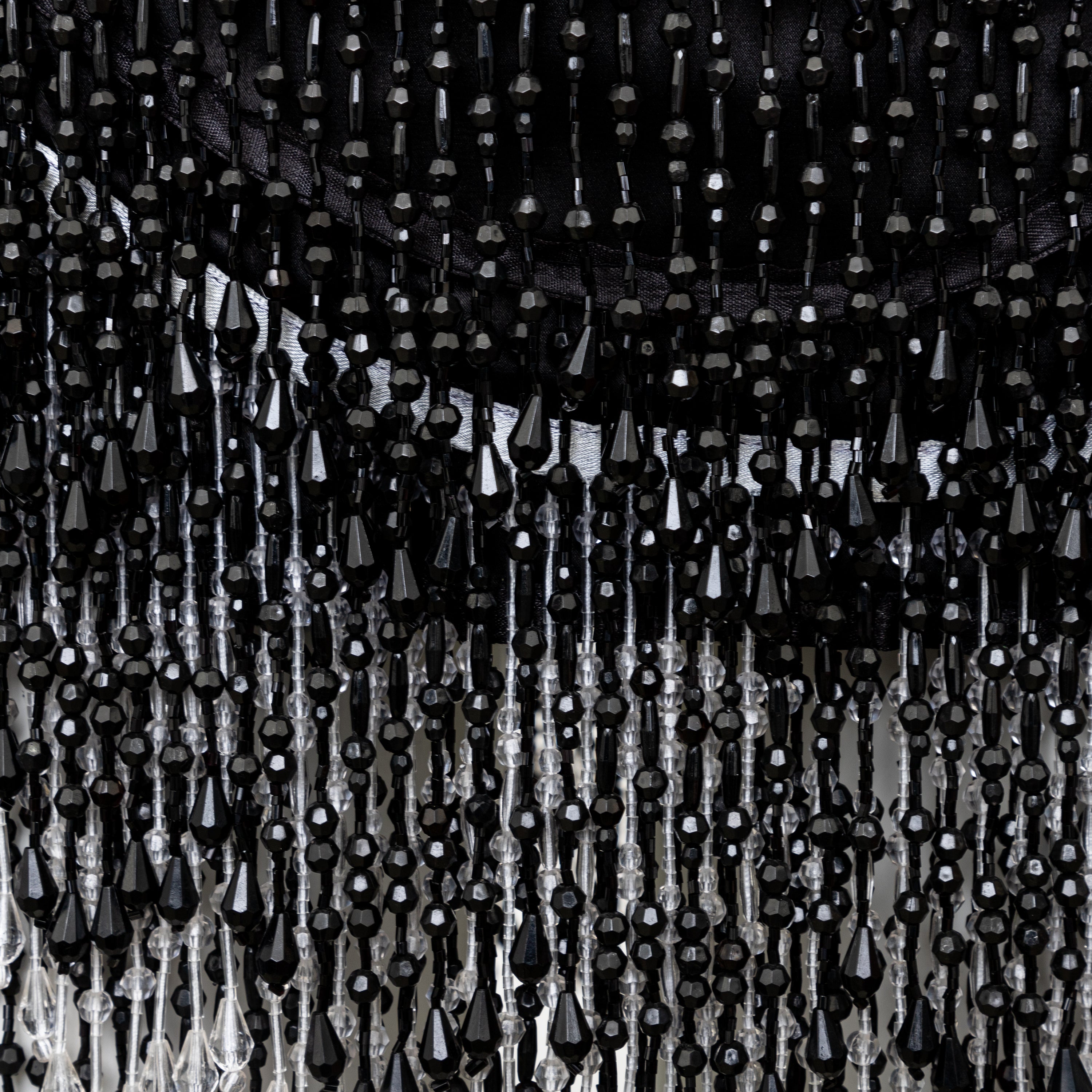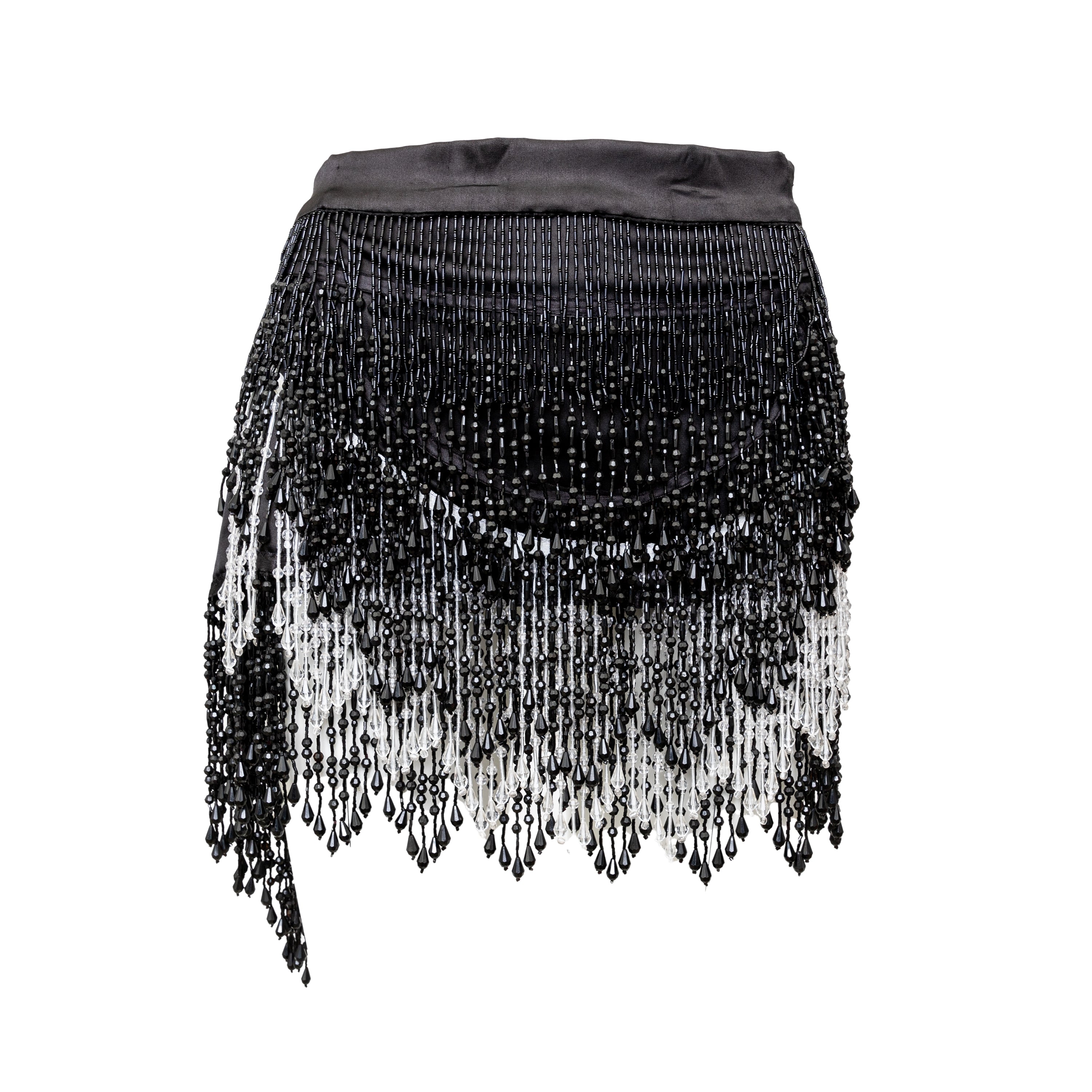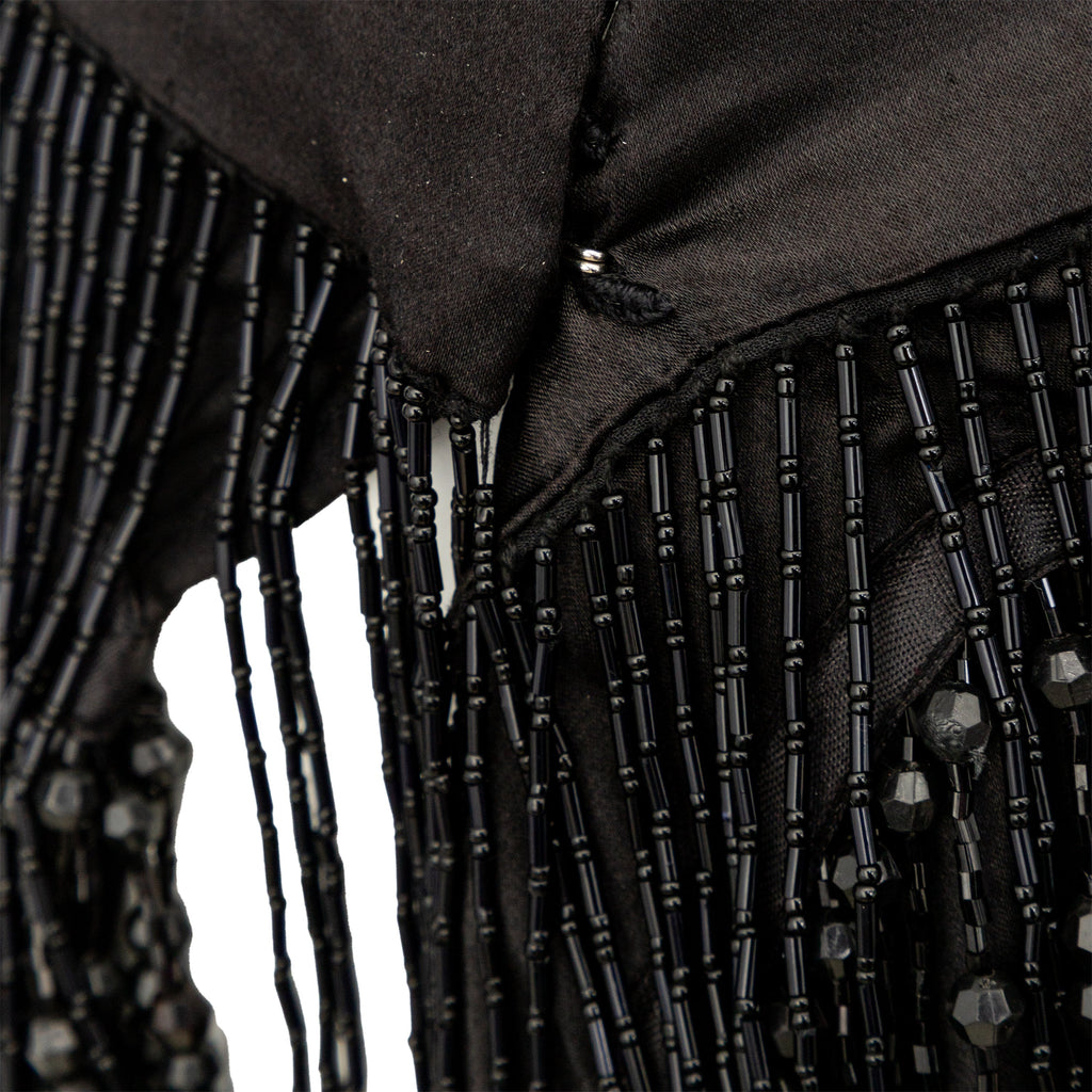 This Collection Privée Beaded Short Skirt is a true gem, perfect for any vintage fashion lover. The wrap style is adorned with intricate black and white beadwork, reminiscent of the glamorous 1920s flapper style. The satin fabric lining adds a luxurious touch, while the hook closure ensures a secure fit.