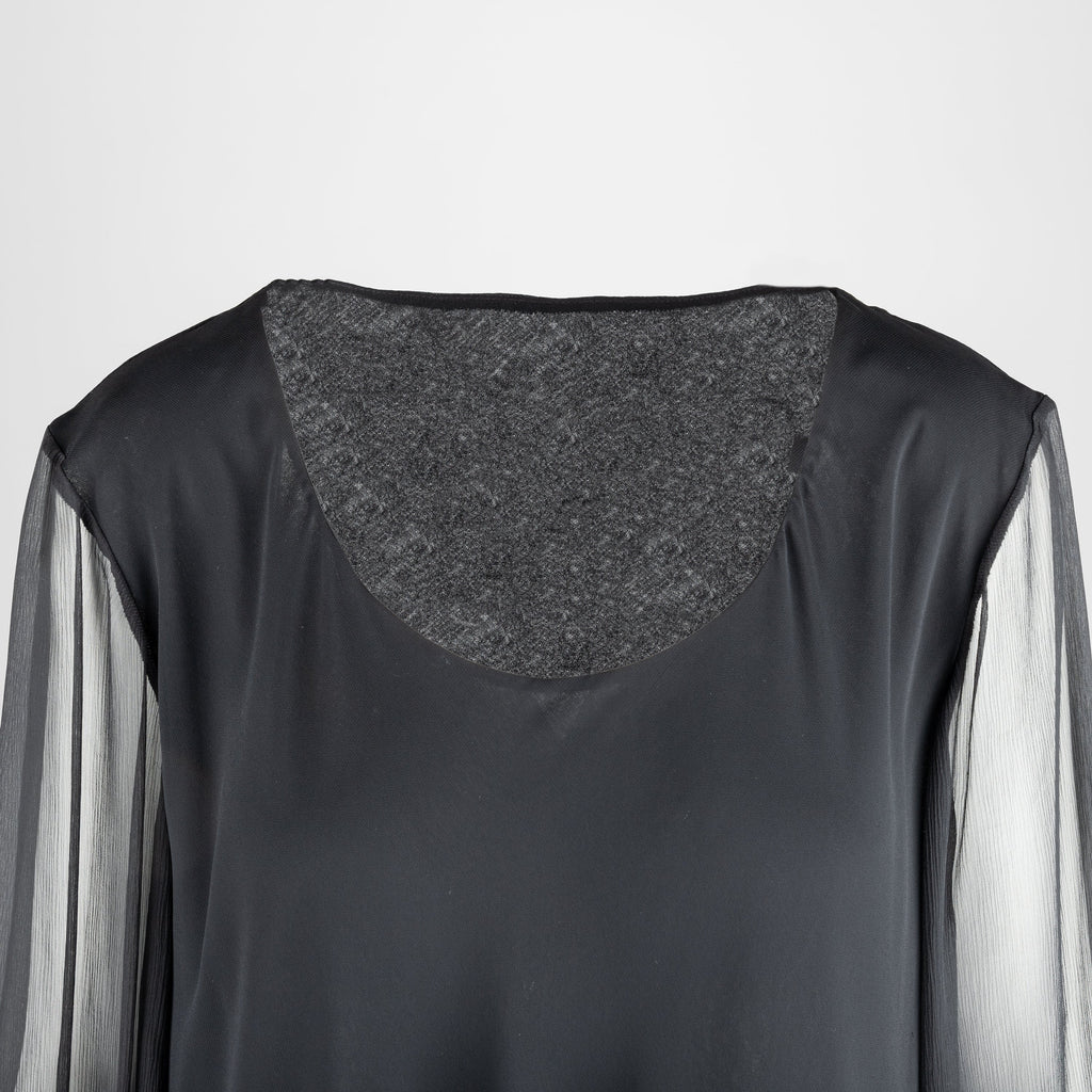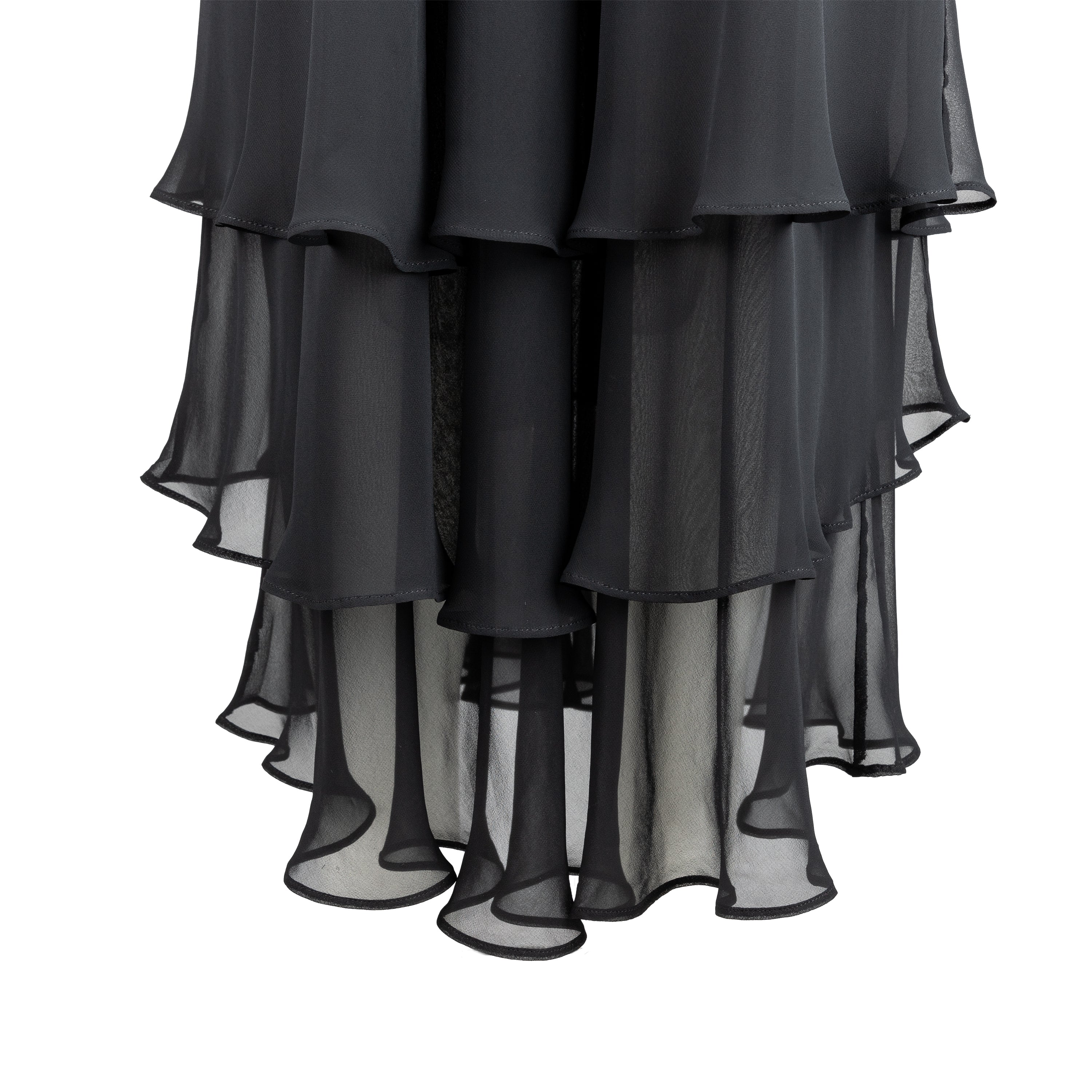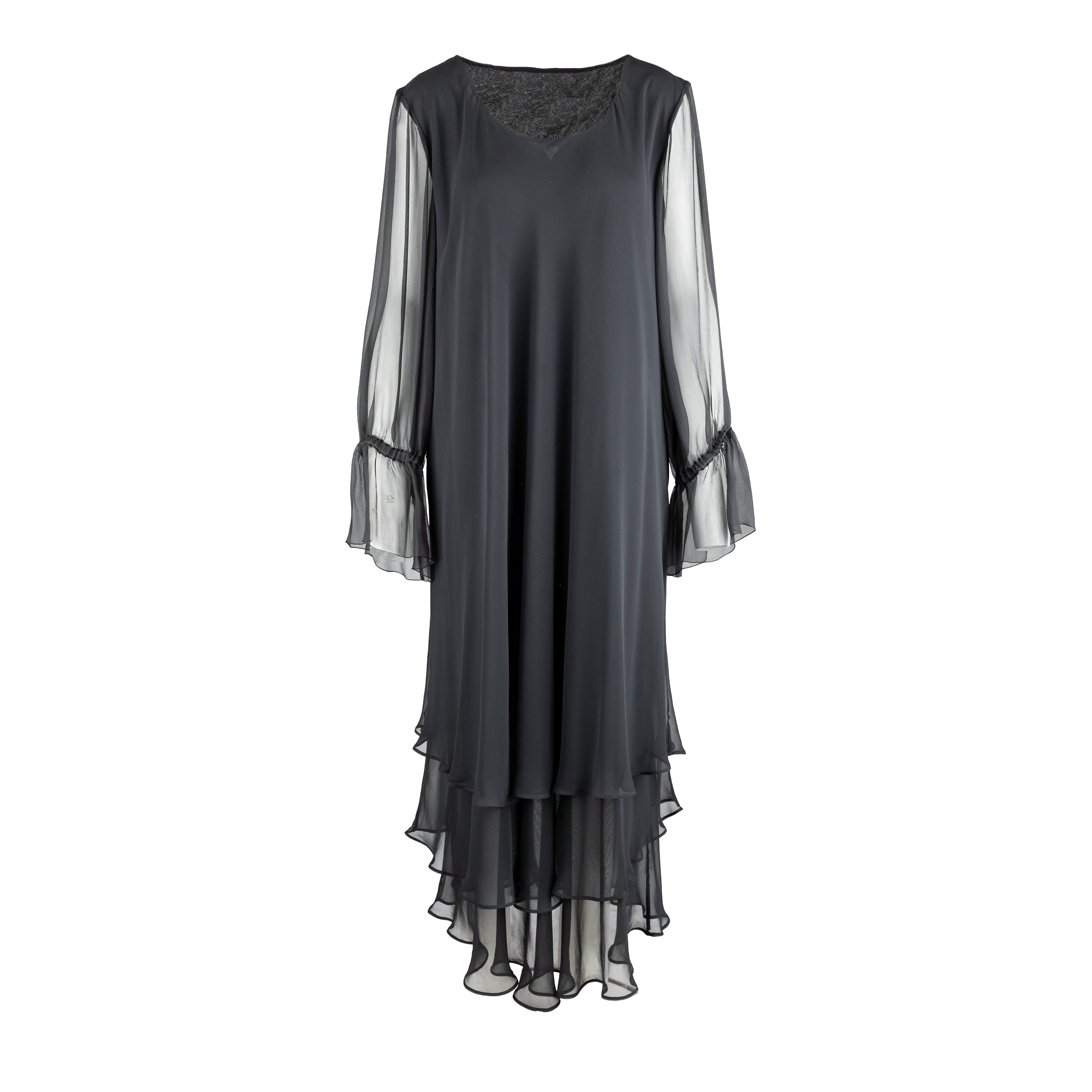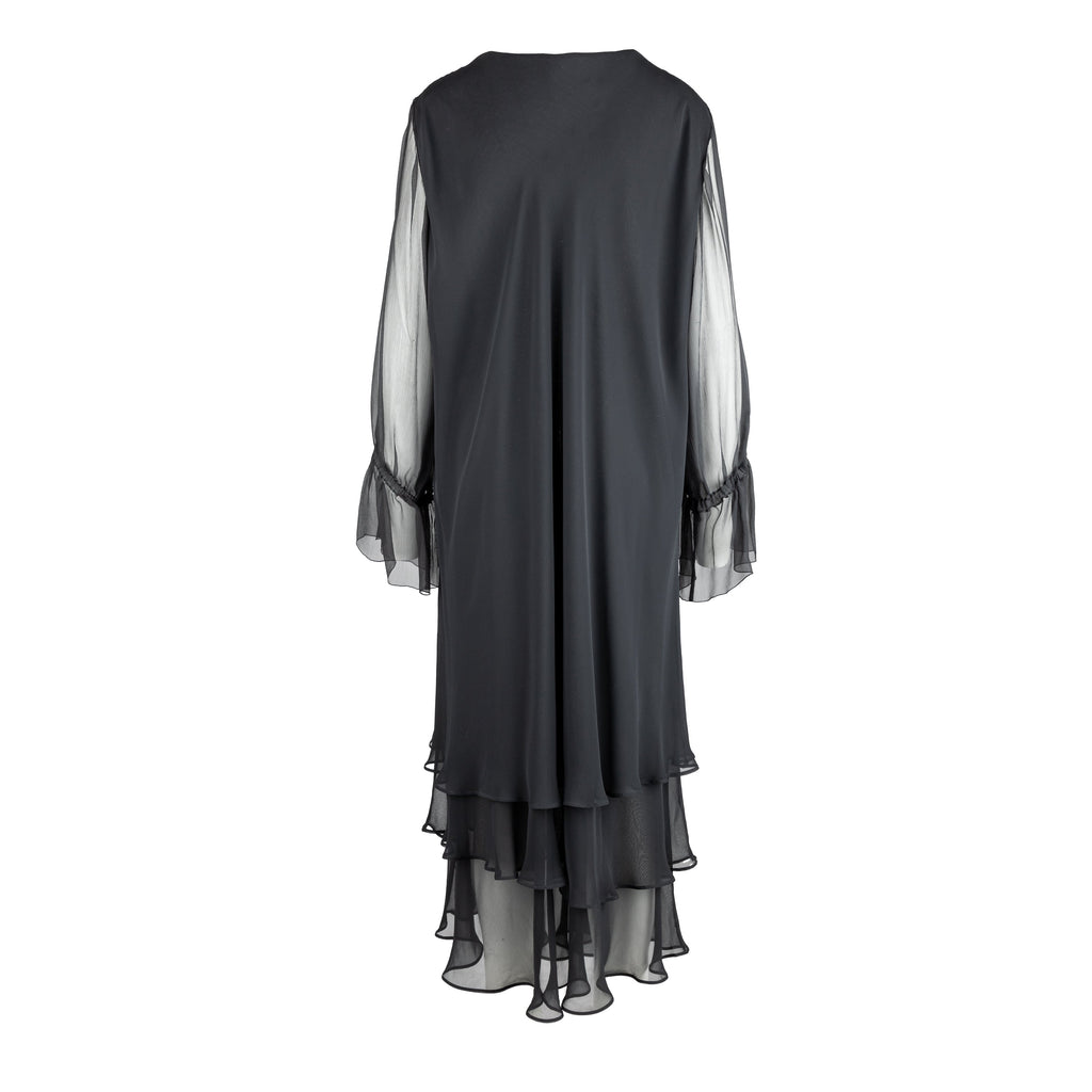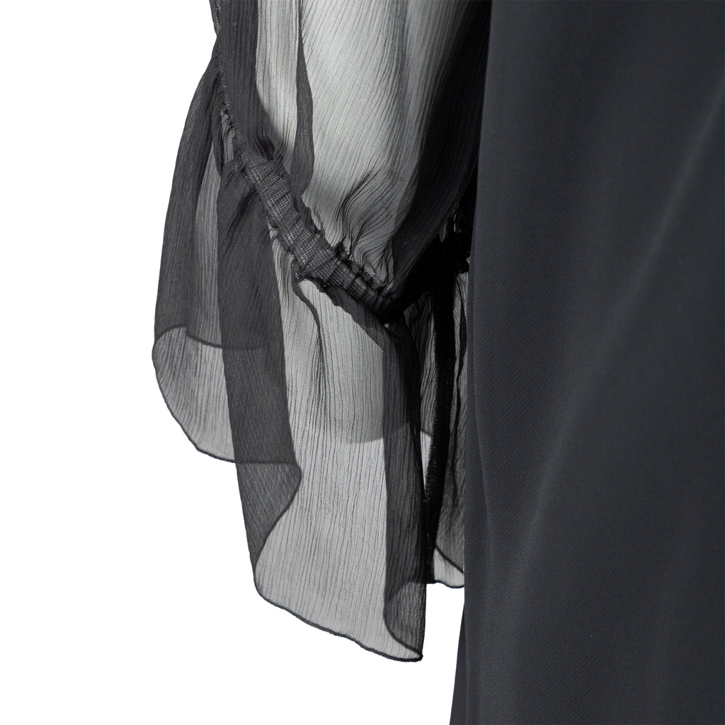 Expertly crafted in lightweight silk chiffon, the Collection Privée chiffon dress embodies elegance and playfulness. The layers gracefully cascade at the hem, while the elastic cuffs add a touch of whimsy to the long sleeves. With a scoop neck and expert tailoring, this dress is a true sartorial piece.