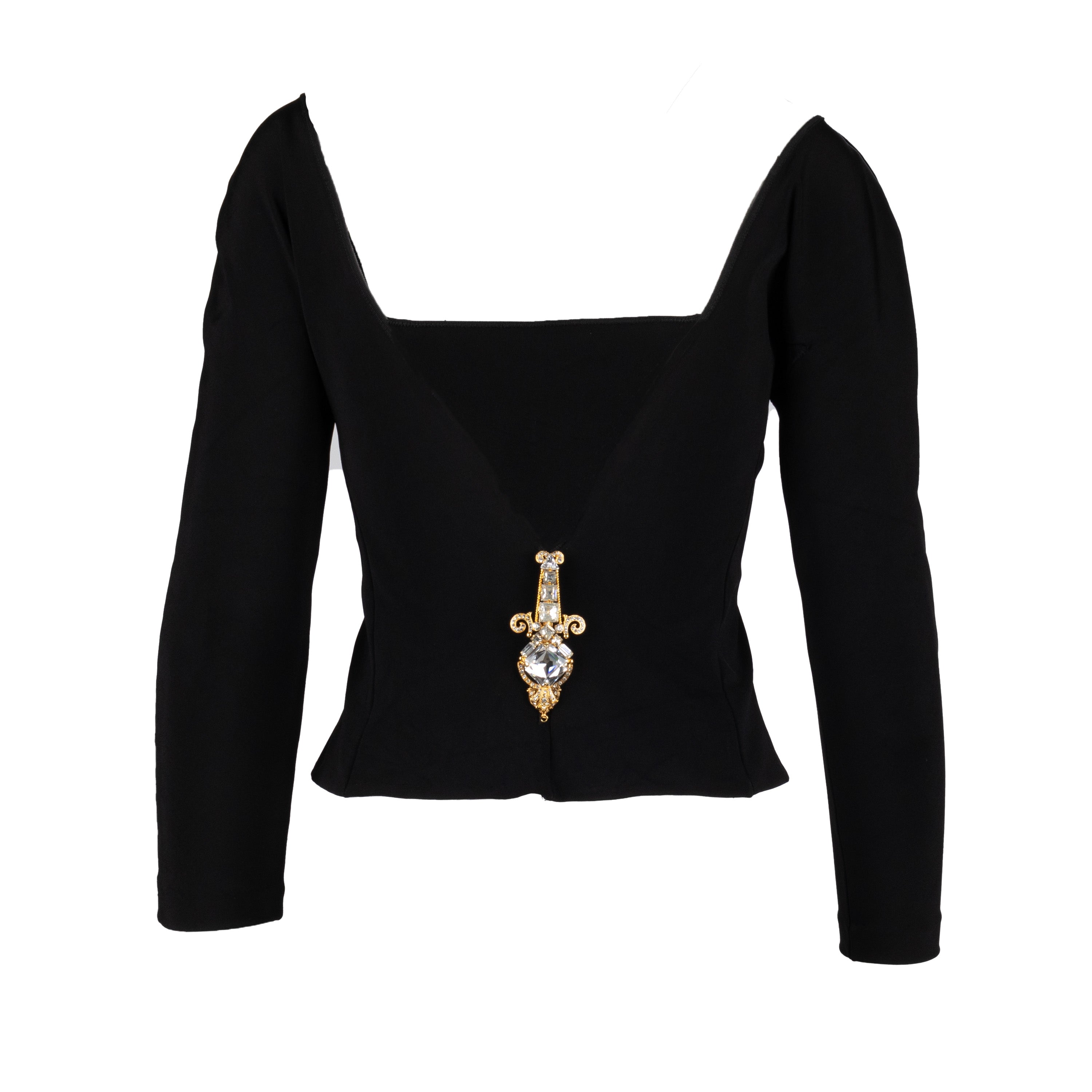 This Collection Privée top is perfect for making a statement. Crafted from black fabric with a plunging back, it features a sophisticated jewelled brooch detail set on gold-tone metal. The boxy front neckline creates a classic silhouette while the plunging back accentuates on the brooch detailing.
