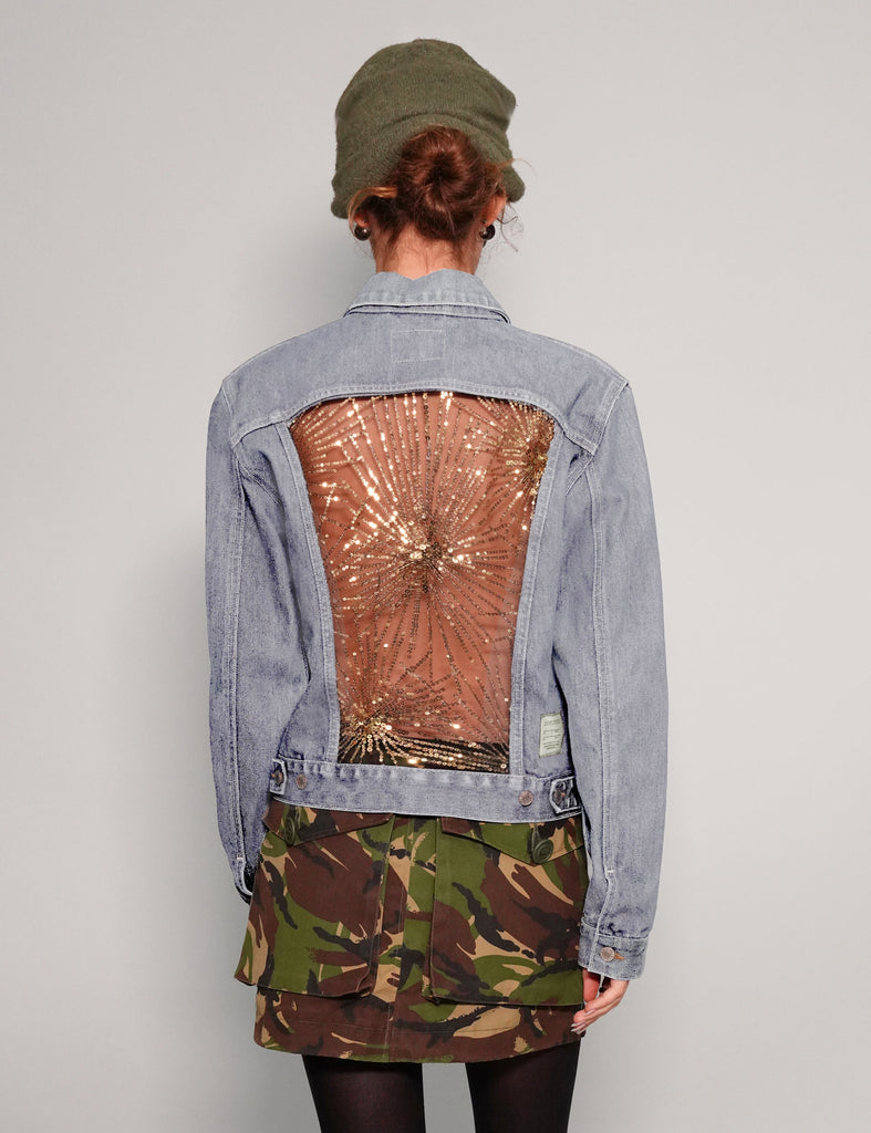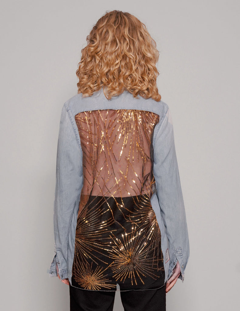 Party Back Shirt - Gold Sequin - Light Blue Denim