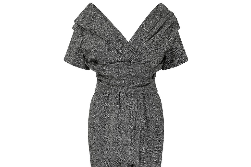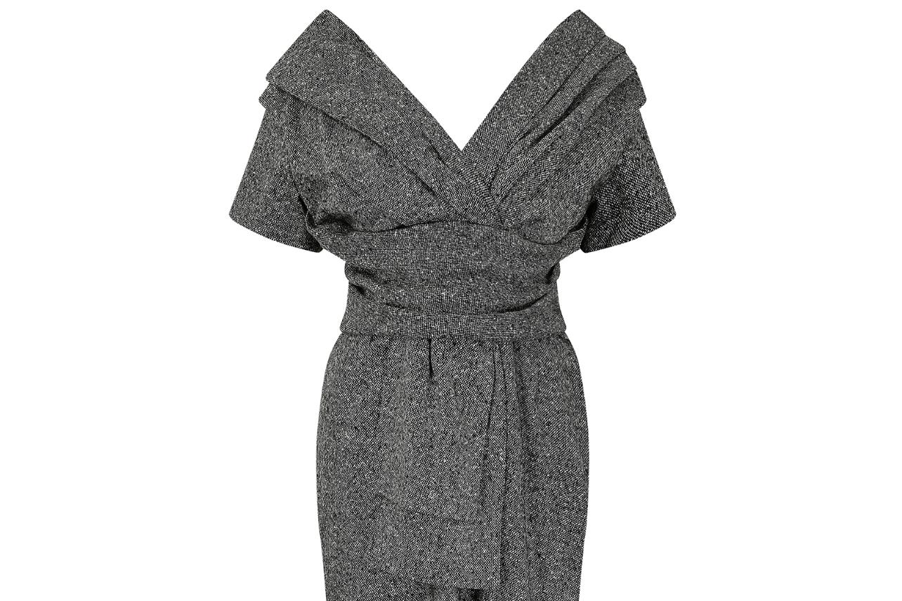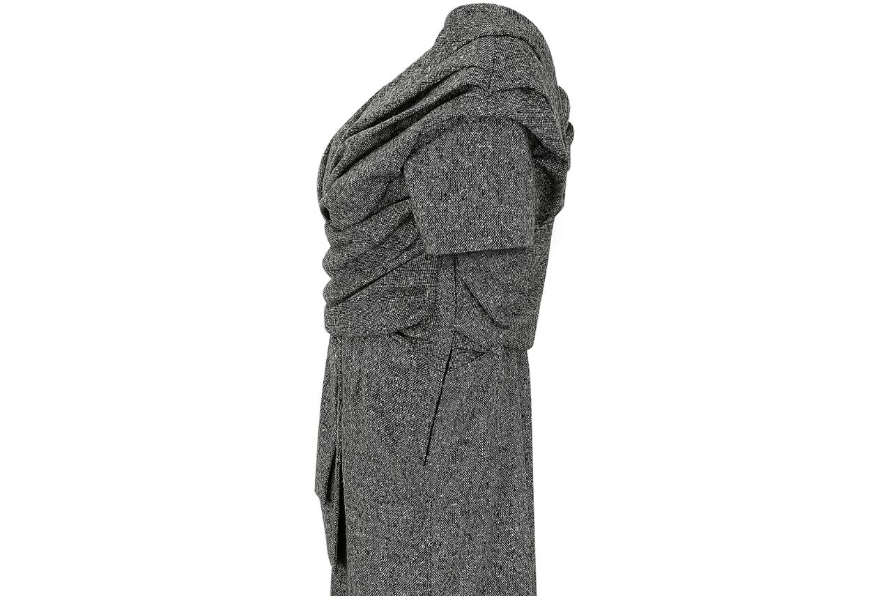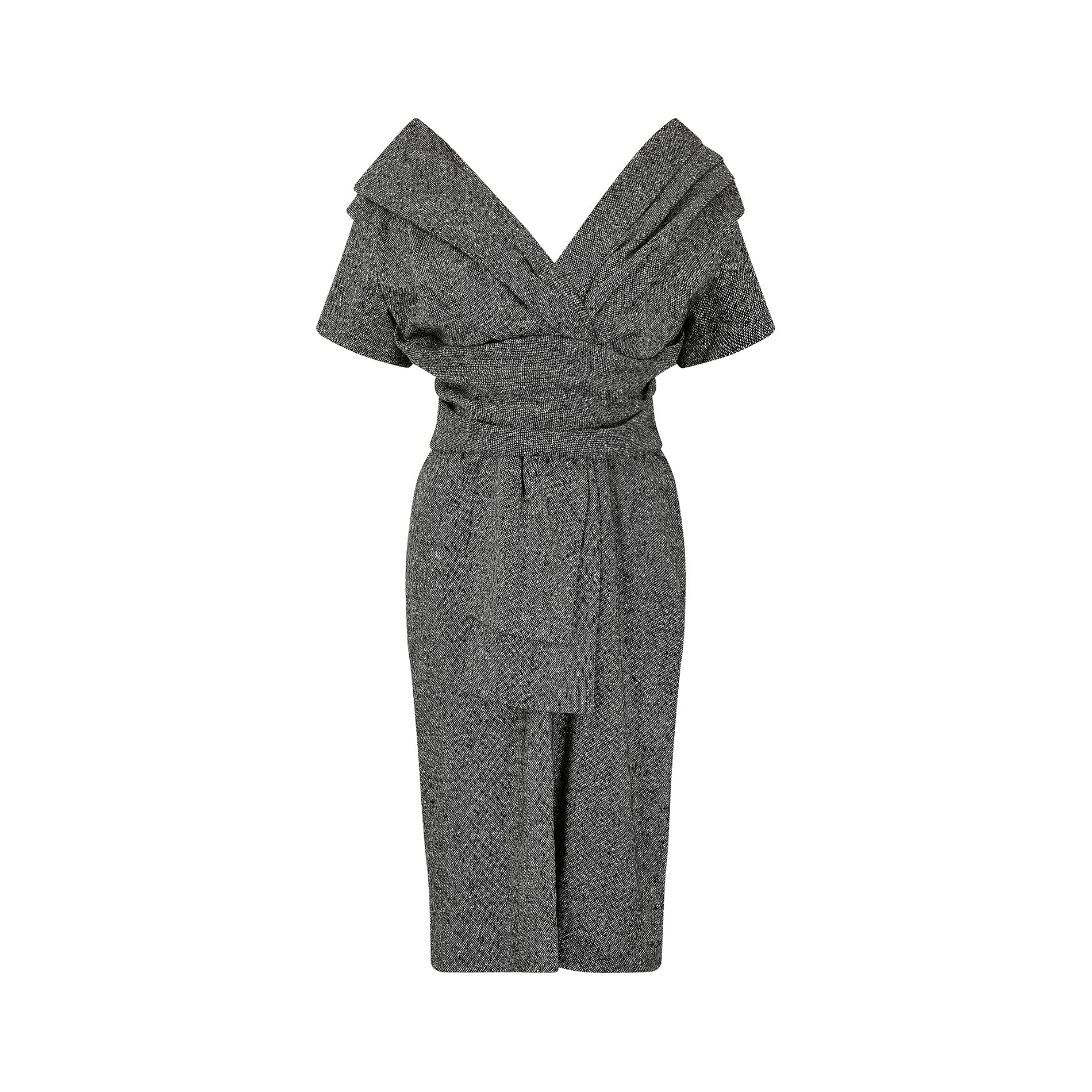 This fabulous Christian Dior grey tweed dress is from the 2007 autumn / winter collection which marked the 60th anniversary of the extolled fashion house. The design harks back to the original nipped-in silhouettes the eponymous designer himself pioneered in the early 1950s.