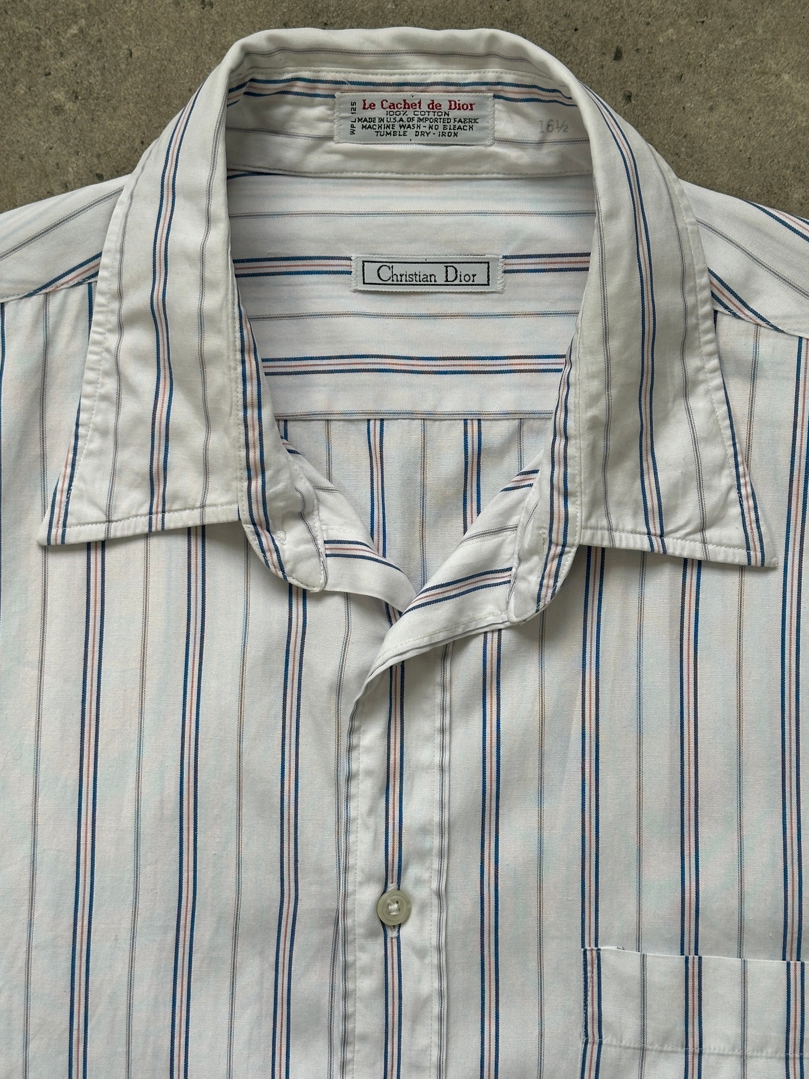 Christian Dior 1980s Stripe Pure Cotton Logo Shirt - L