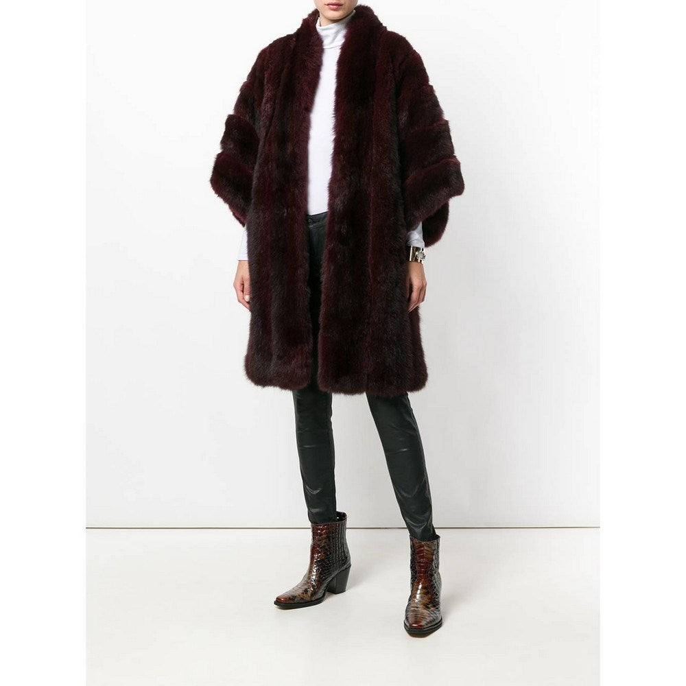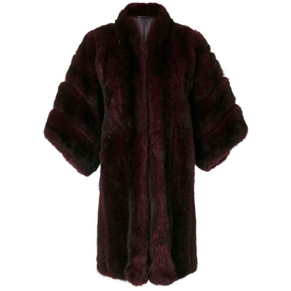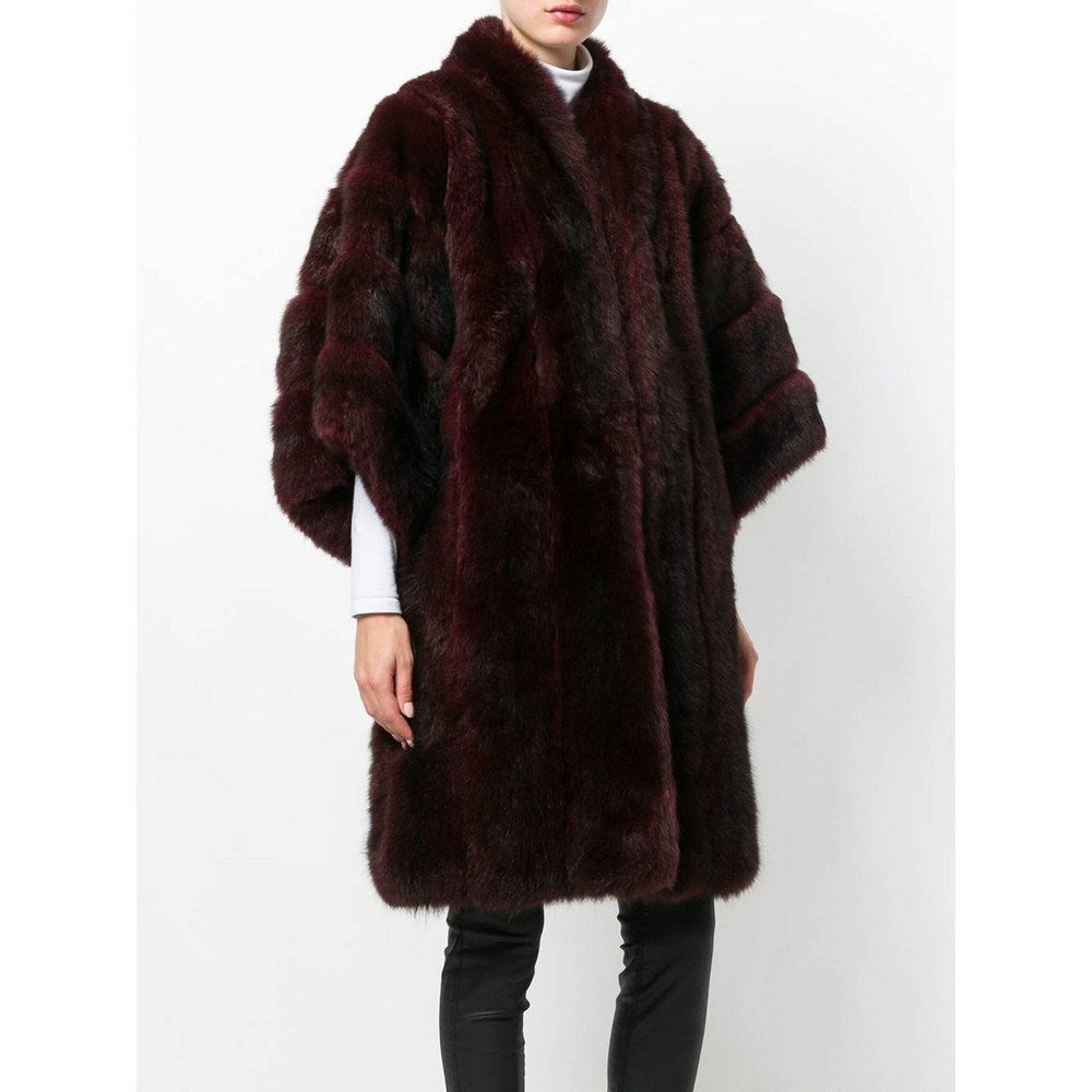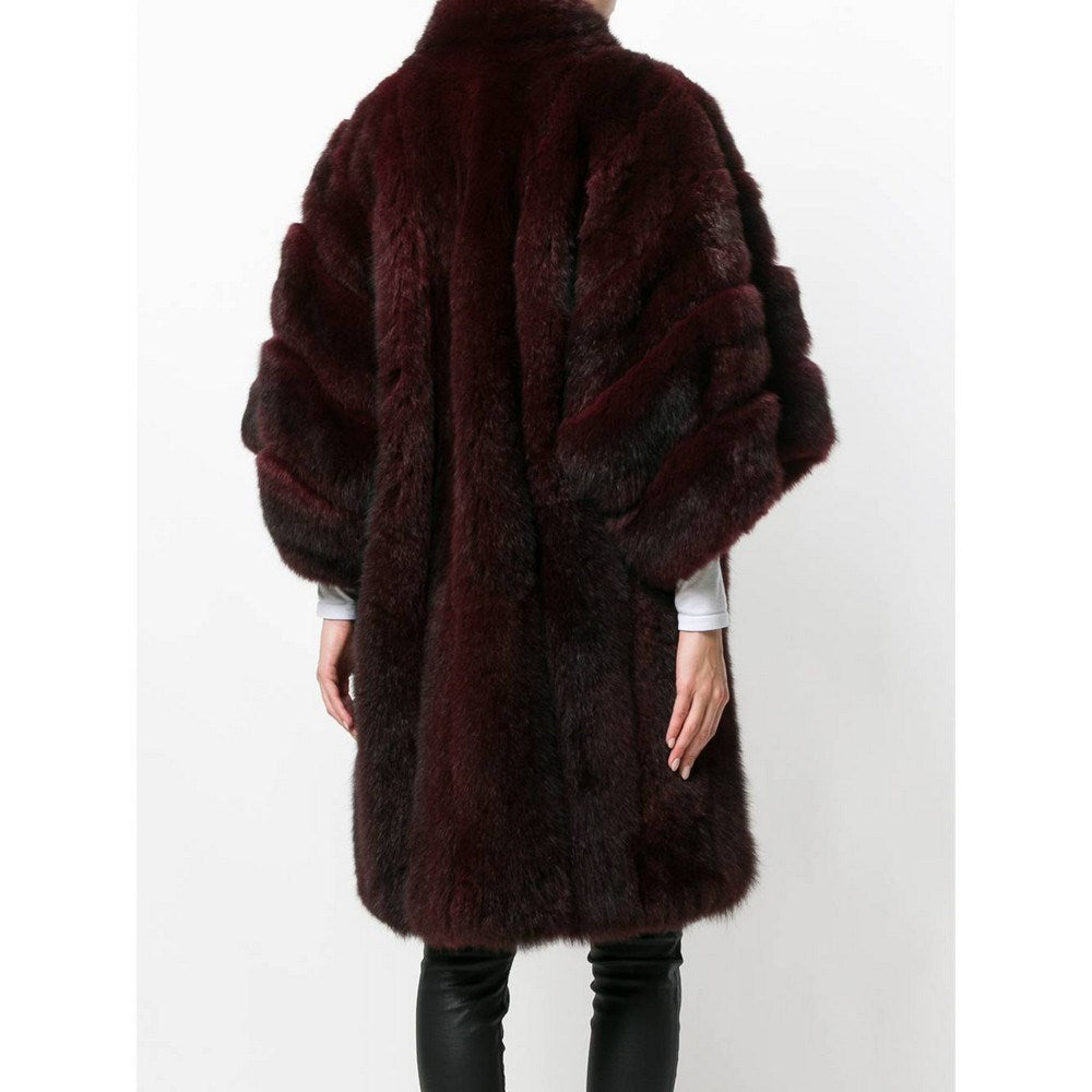 Christian Dior burgundy pine marten fur coat. Model with V-neck, front closure with hook and wide sleeves.