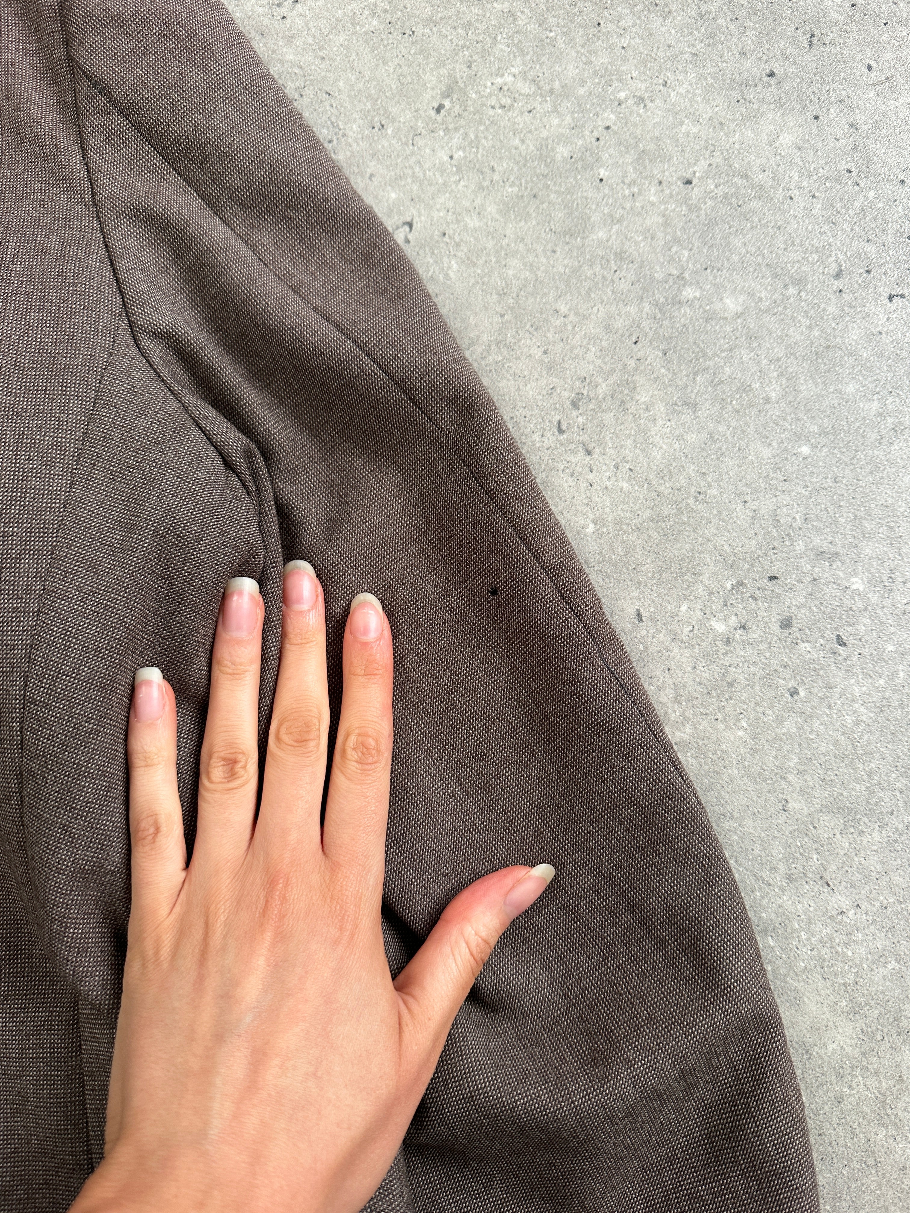 Vintage 1990s Christian Dior Monsieur brown single breasted blazer crafted from pure new wool with a clean tailored silhouette. Finished in a warm brown tone with classic lapels and structured shoulders, offering a timeless menswear profile suited to both formal and smart casual styling.