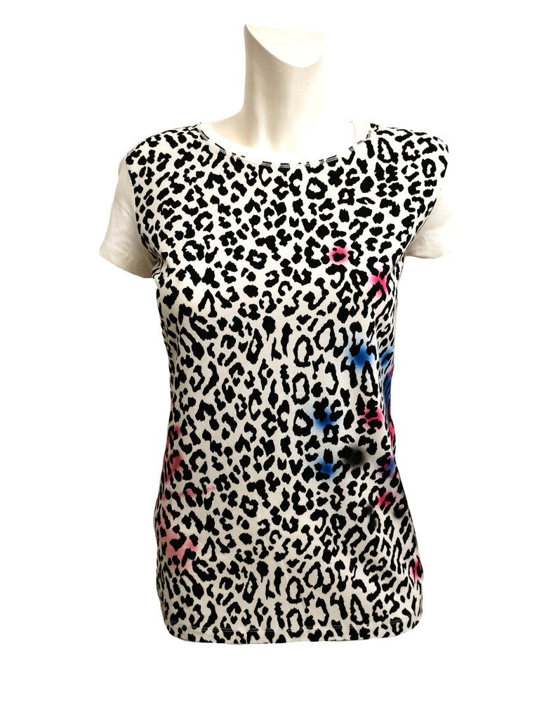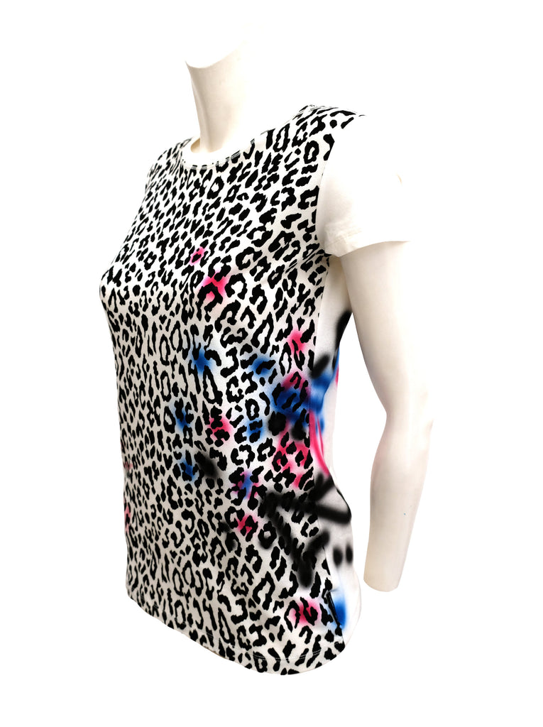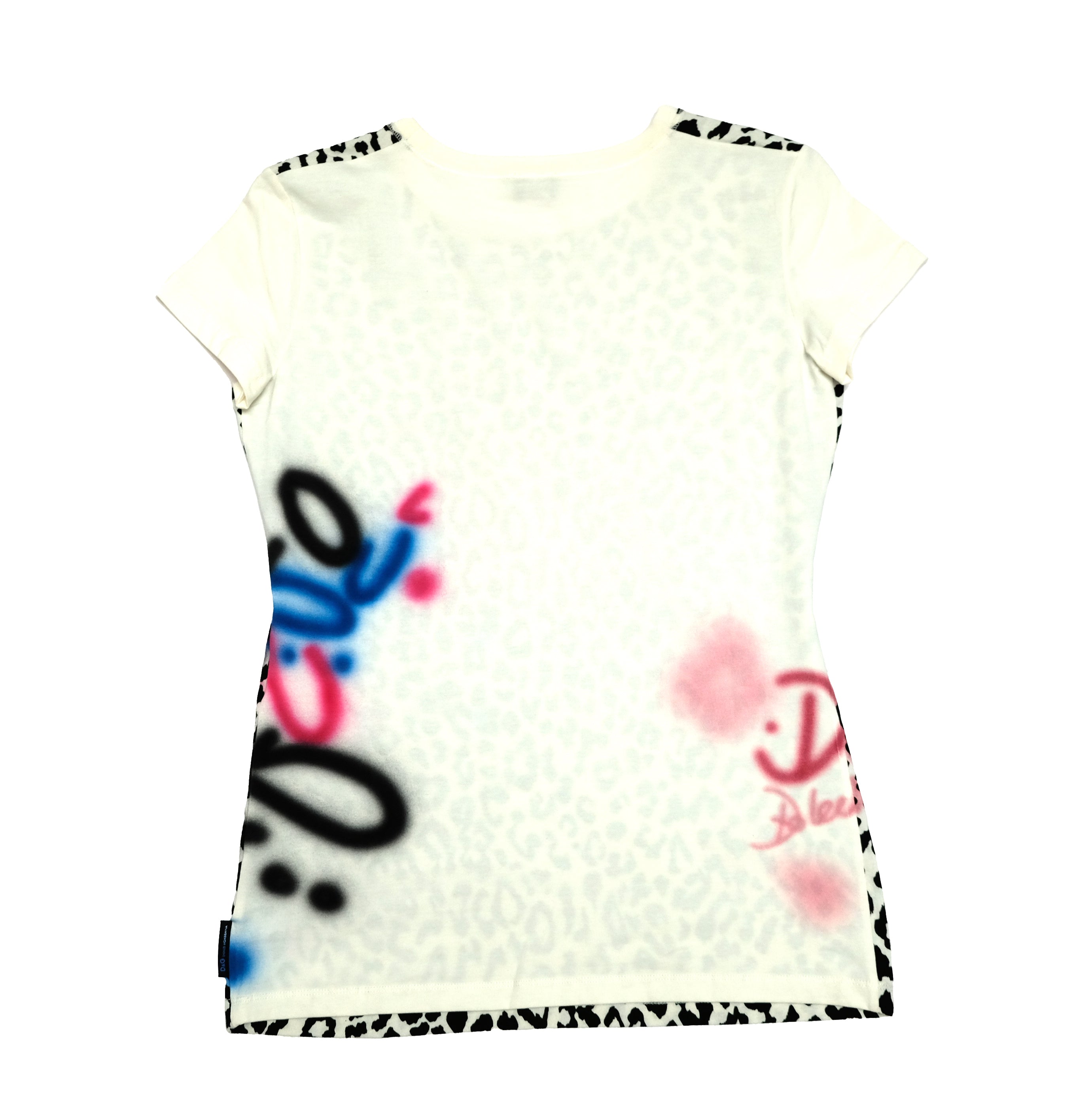 Dolce & Gabbana White Graffiti Leopard Print T shirt, UK10