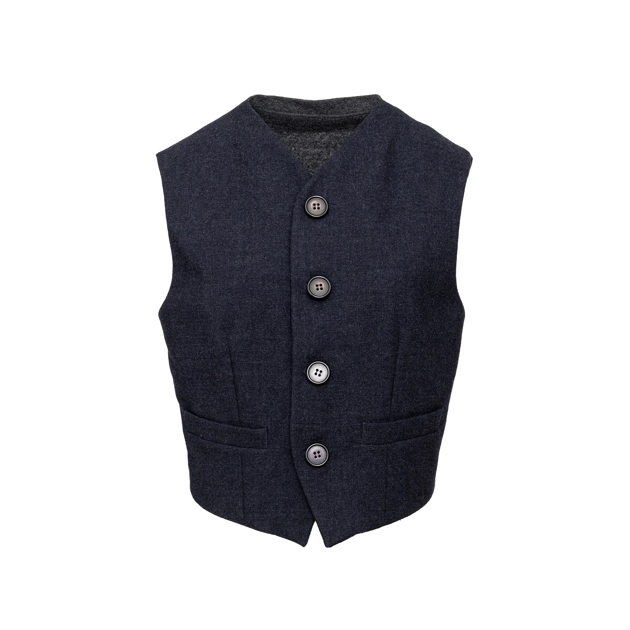 This Dolce & Gabbana wool vest is made of 100% virgin wool for a luxurious look and feel. This timeless design features a V-neck, front button closure, and two pleats with decorative front flap pockets, perfect for finishing a sophisticated look.