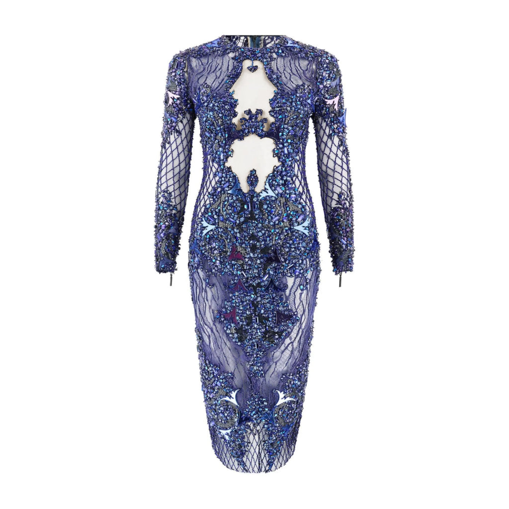 2014 Julien Macdonald Runway Blue Sequin Beaded Dress