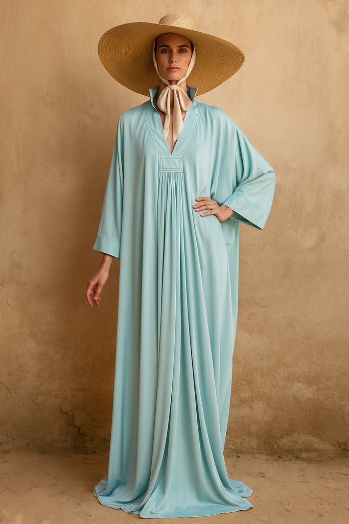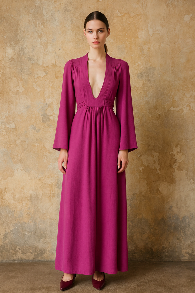 Mary McFadden, 80s silk shift dress with ruffle sleeves