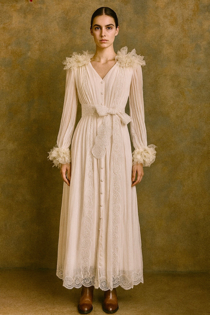 Belville Sassoon, 80s chiffon and lace pleated dress