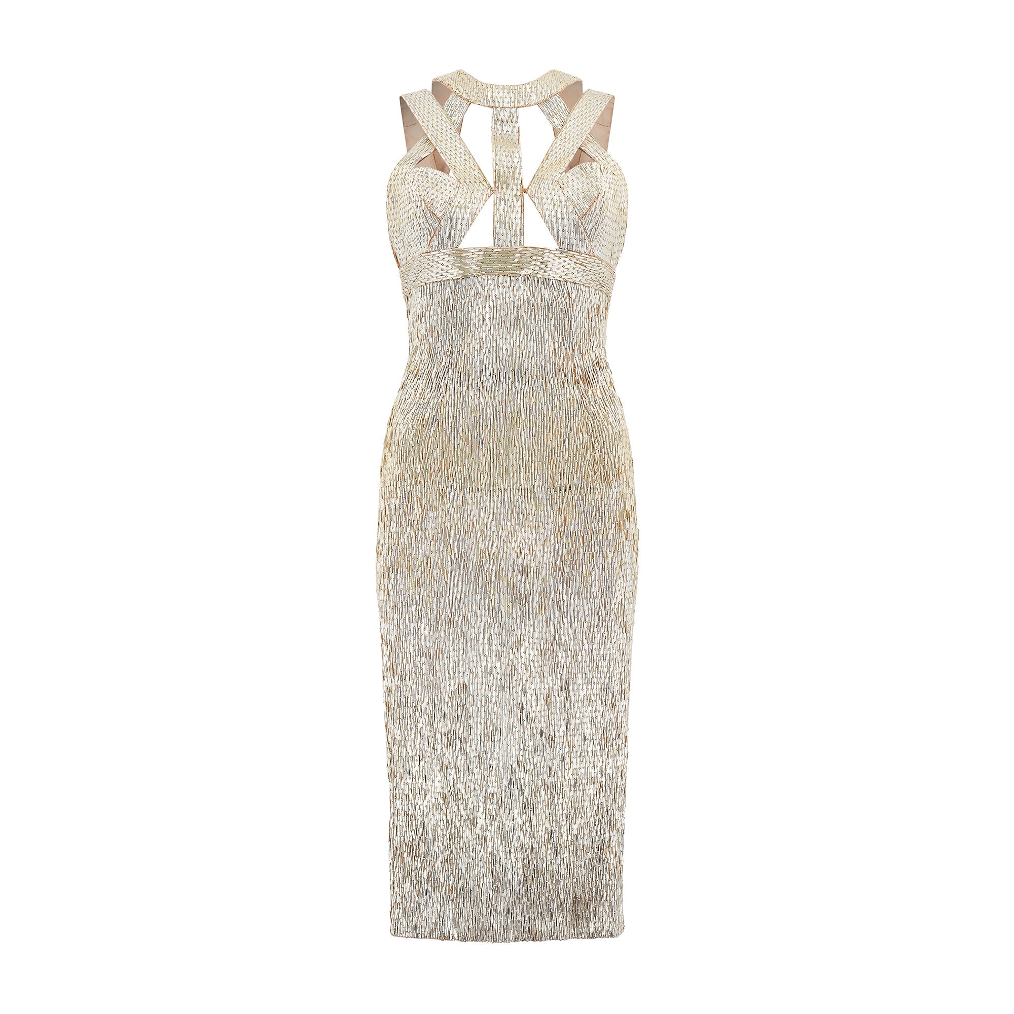 2016 Julien MacDonald Runway Champagne Paillette Cage Bodycon Dress