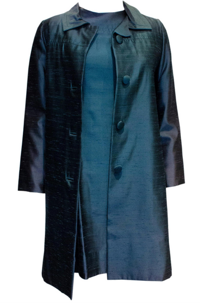 A Vintage dusty blue 1960s Silk Coat and Dress