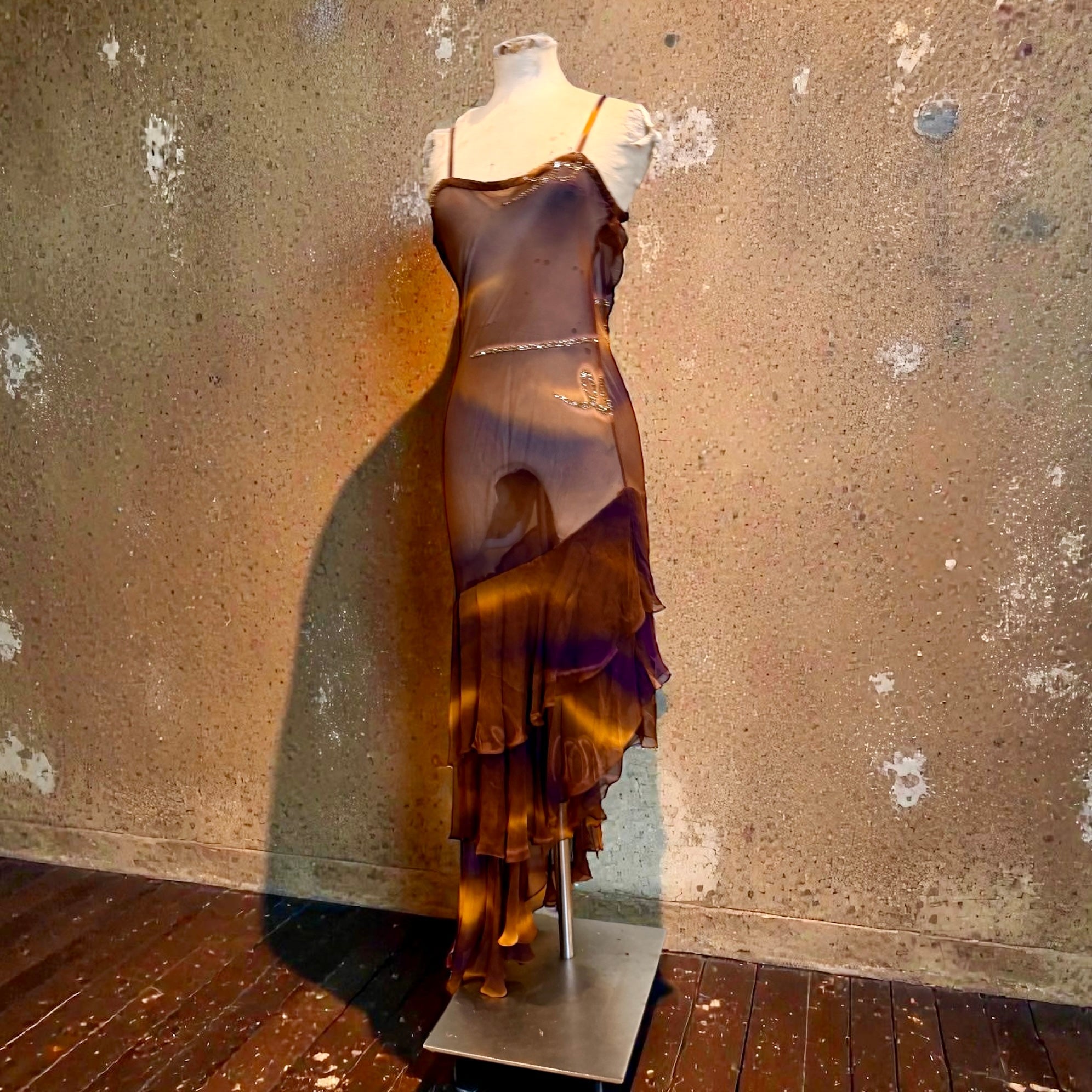 Felix, 90s silk chiffon beaded bias cut frill dress
