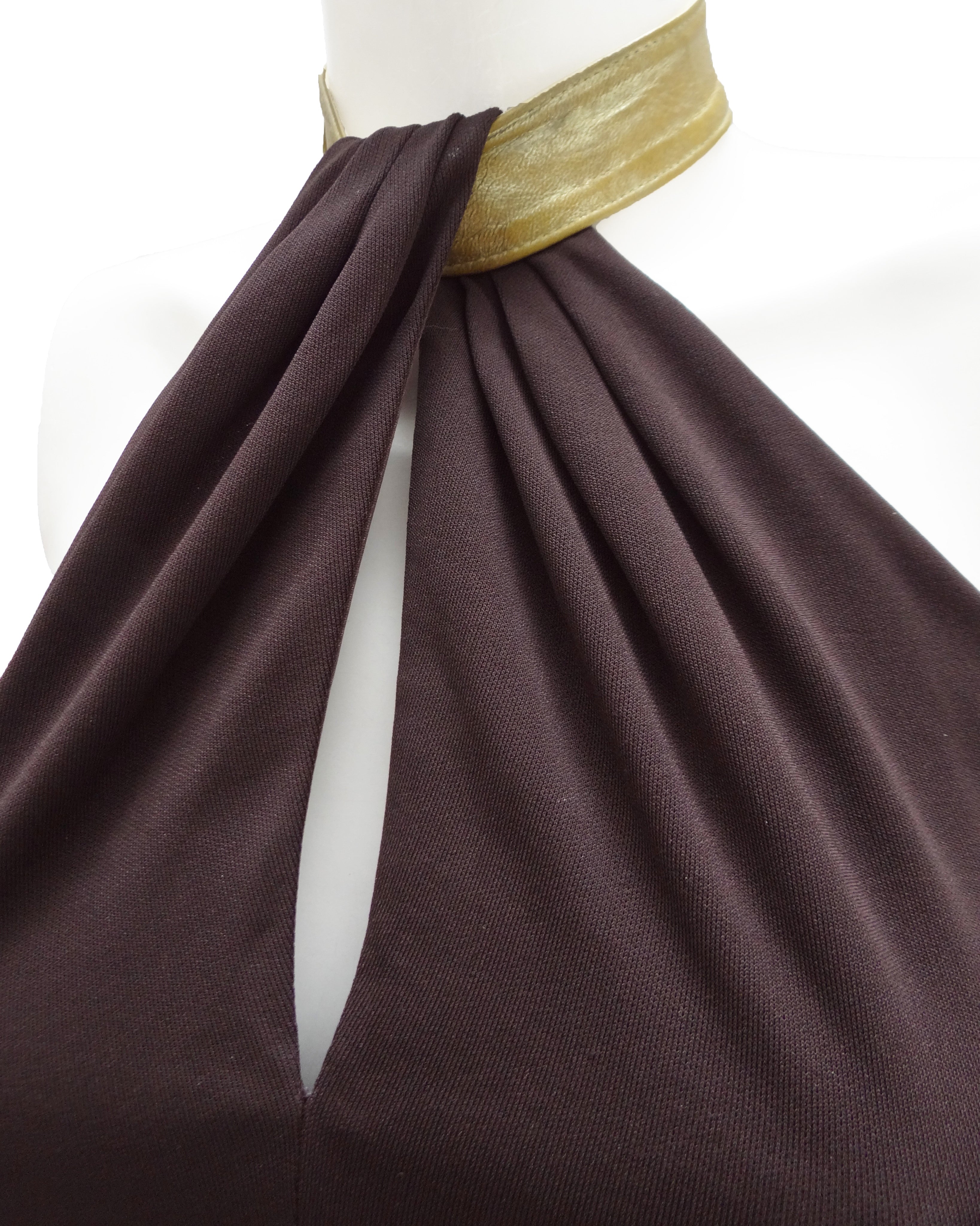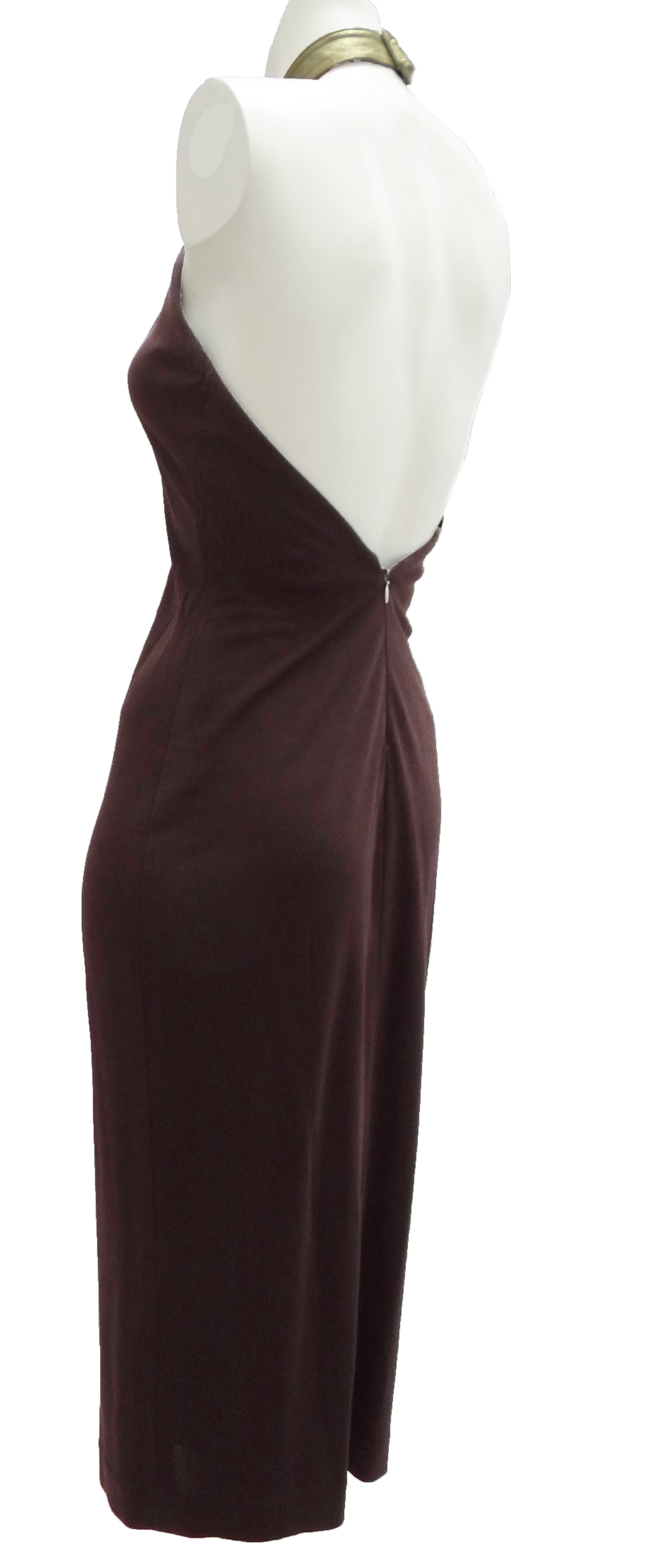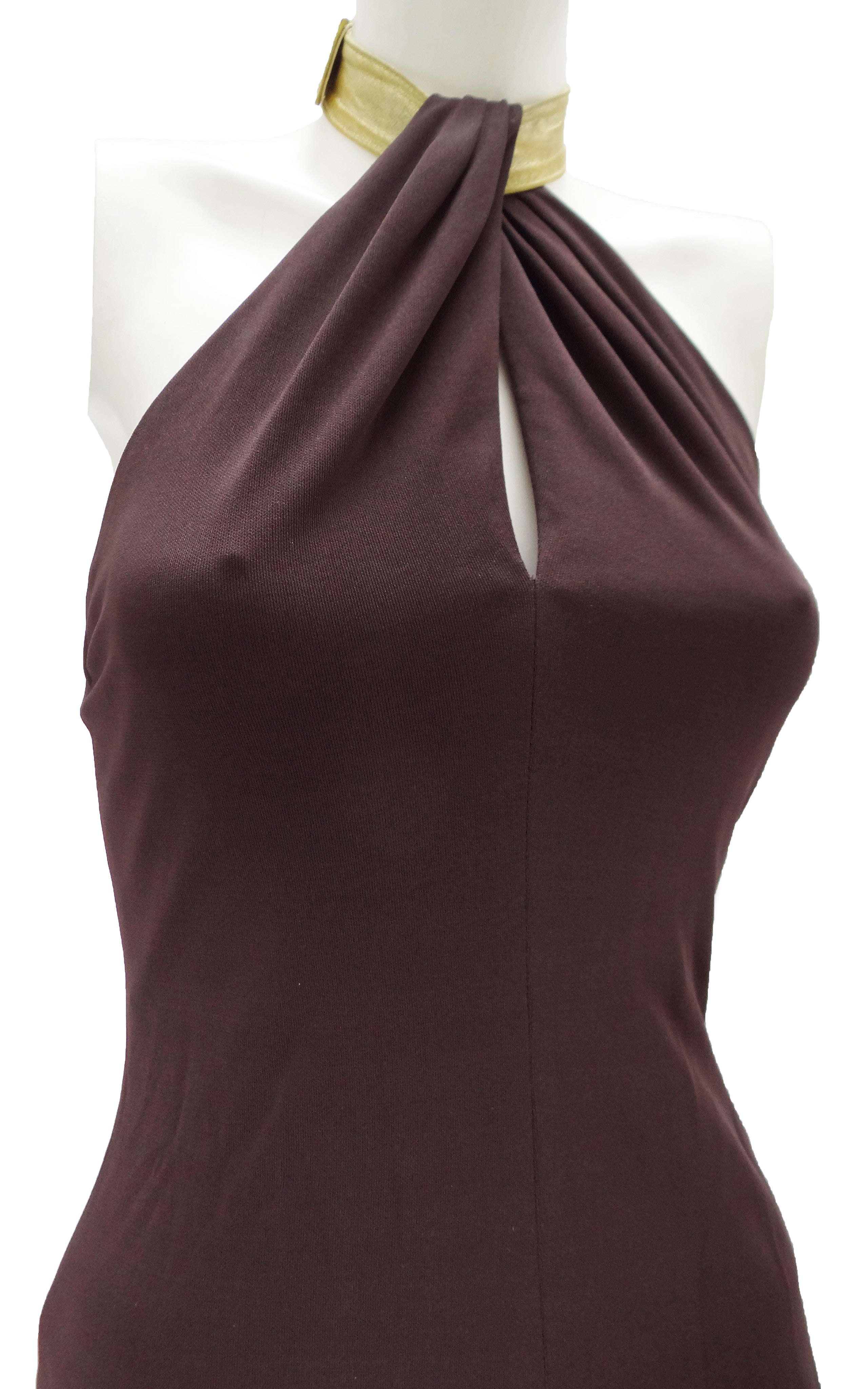 Halston Studio 54 Brown Jersey Halter Dress with Gold Collar, UK10