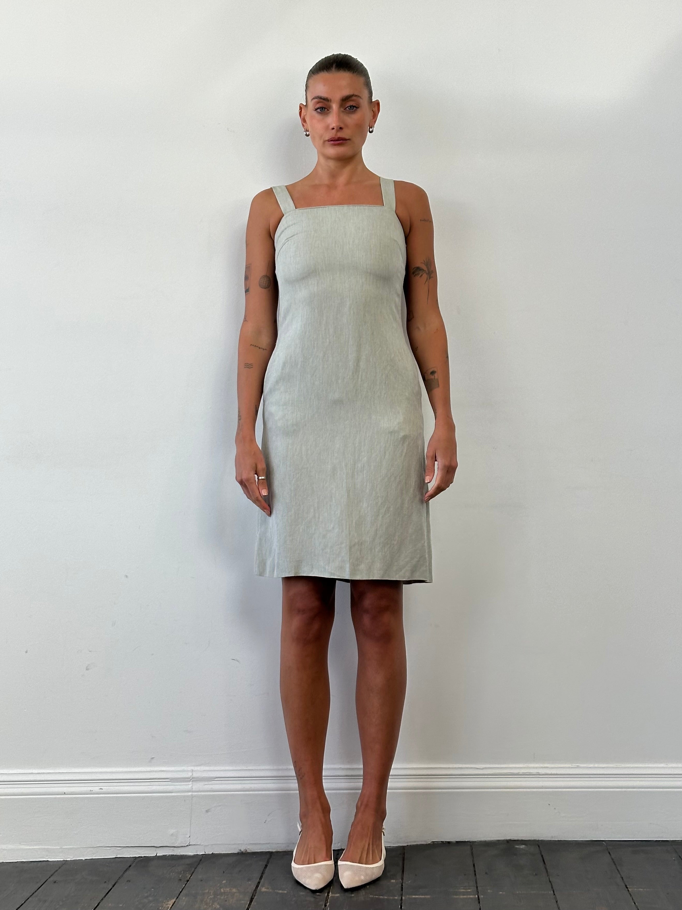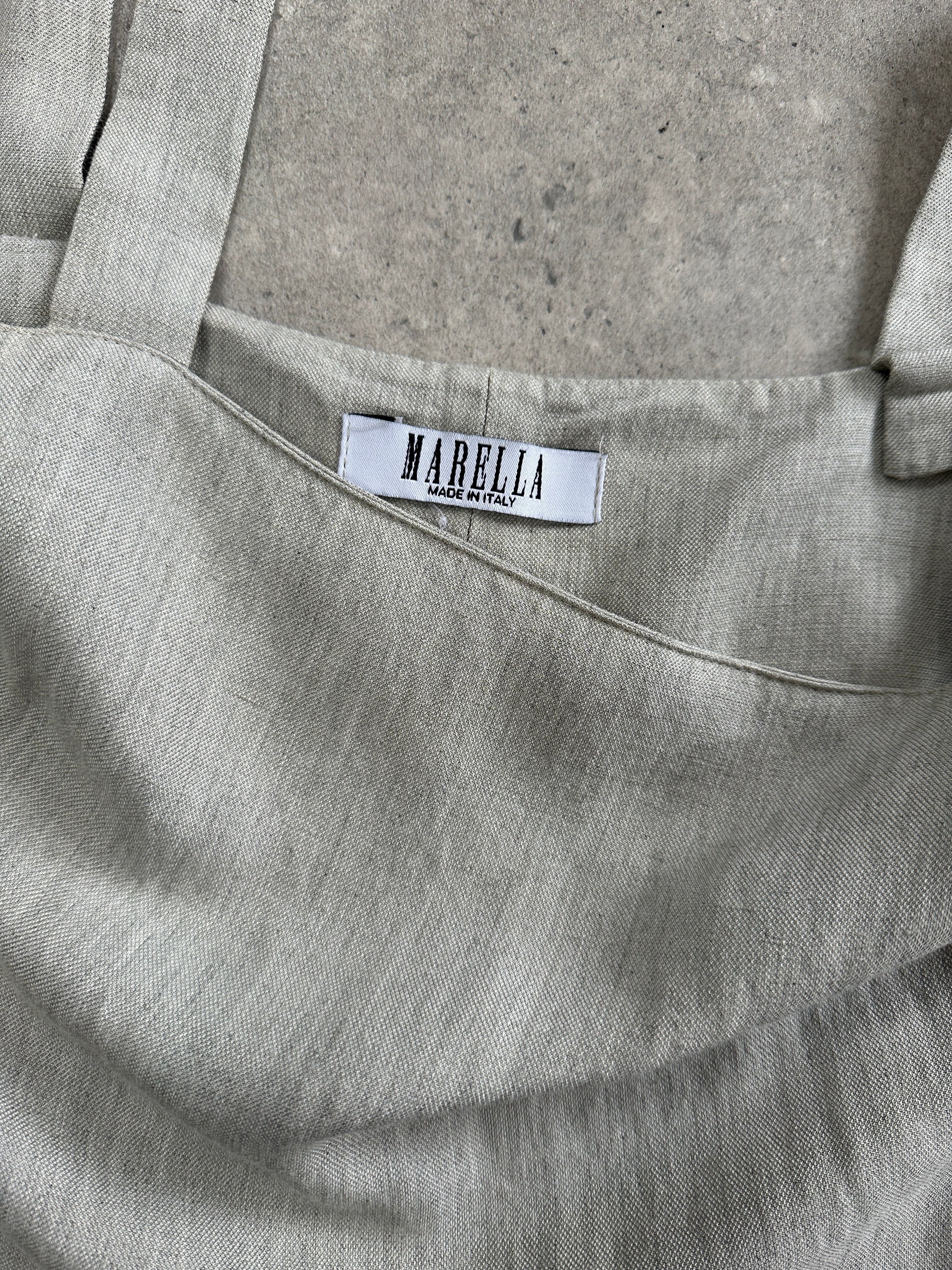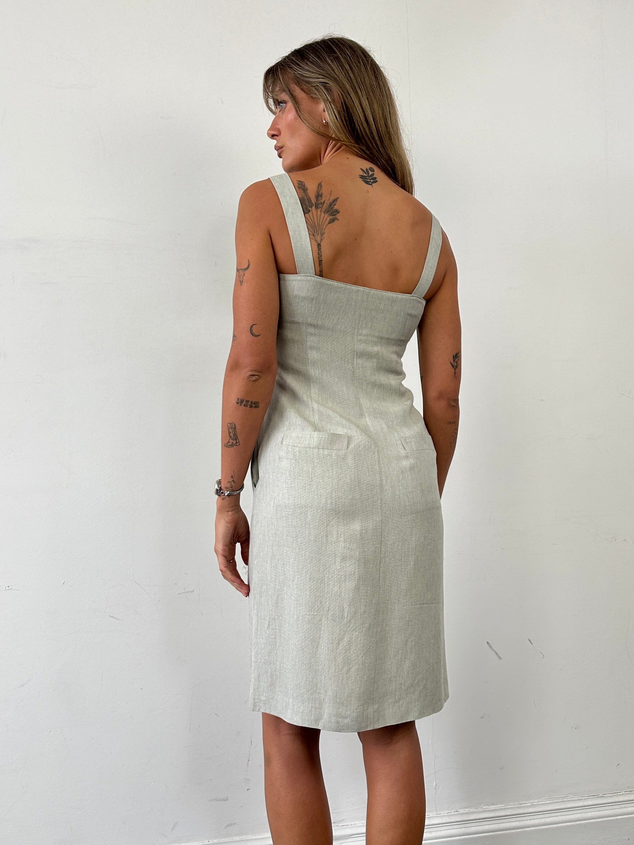 Measurements: bust 30”, waist 28”, hips 34”, total length: 38” - label is UK 8