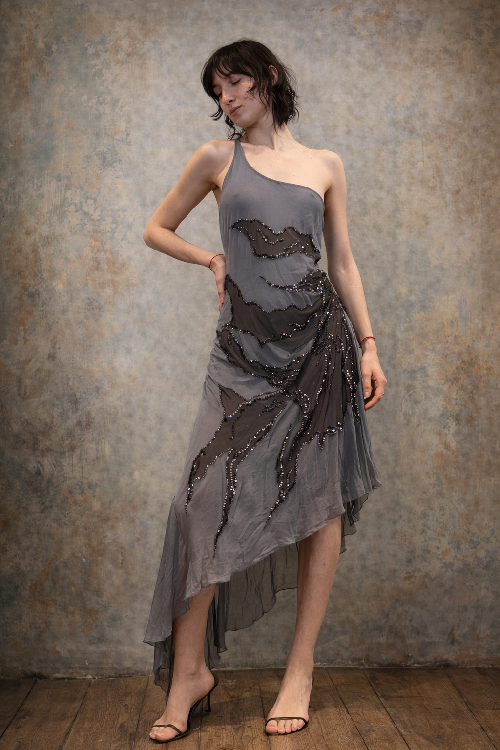 Sabrina, vintage bias cut asymmetric chiffon silk beaded dress