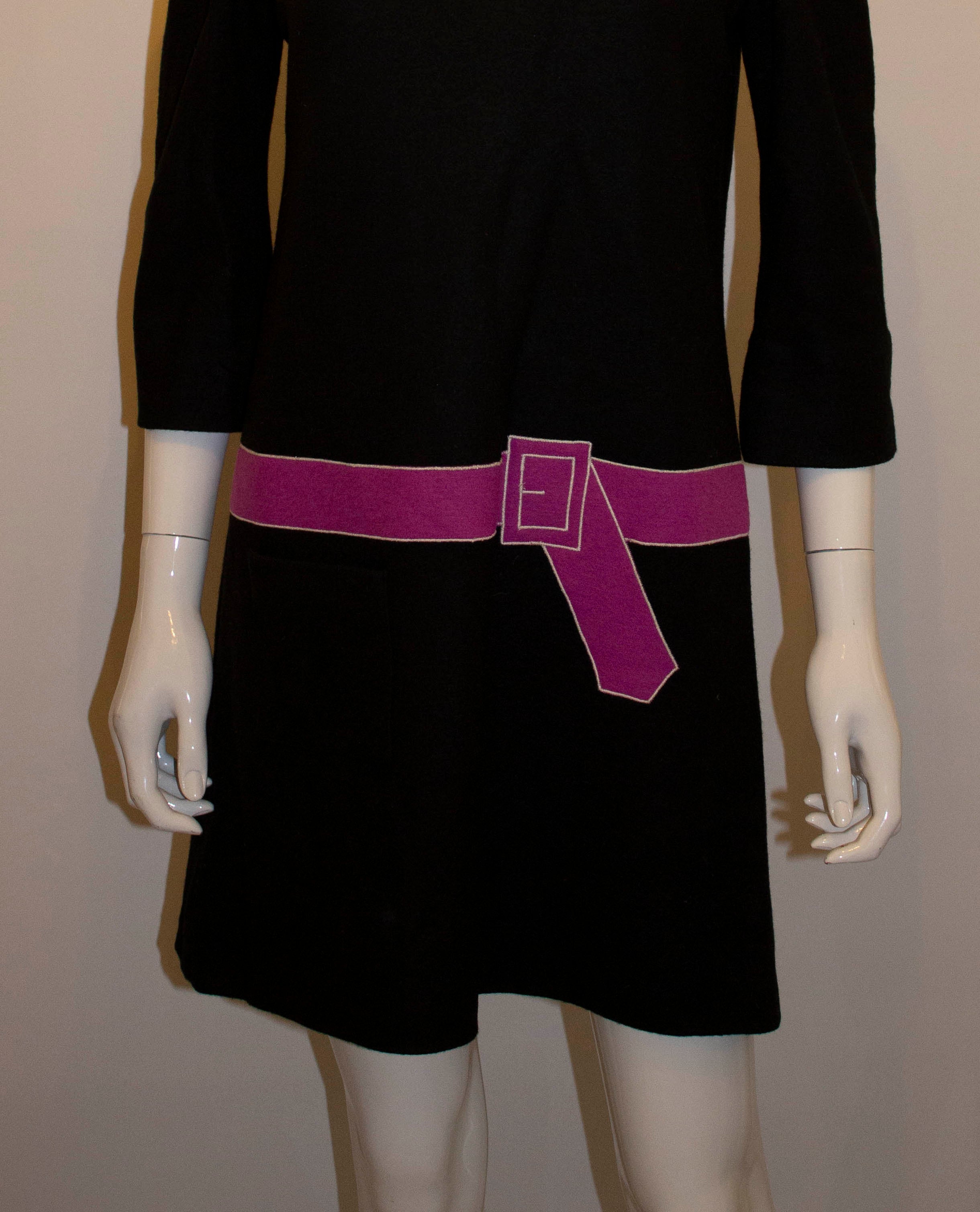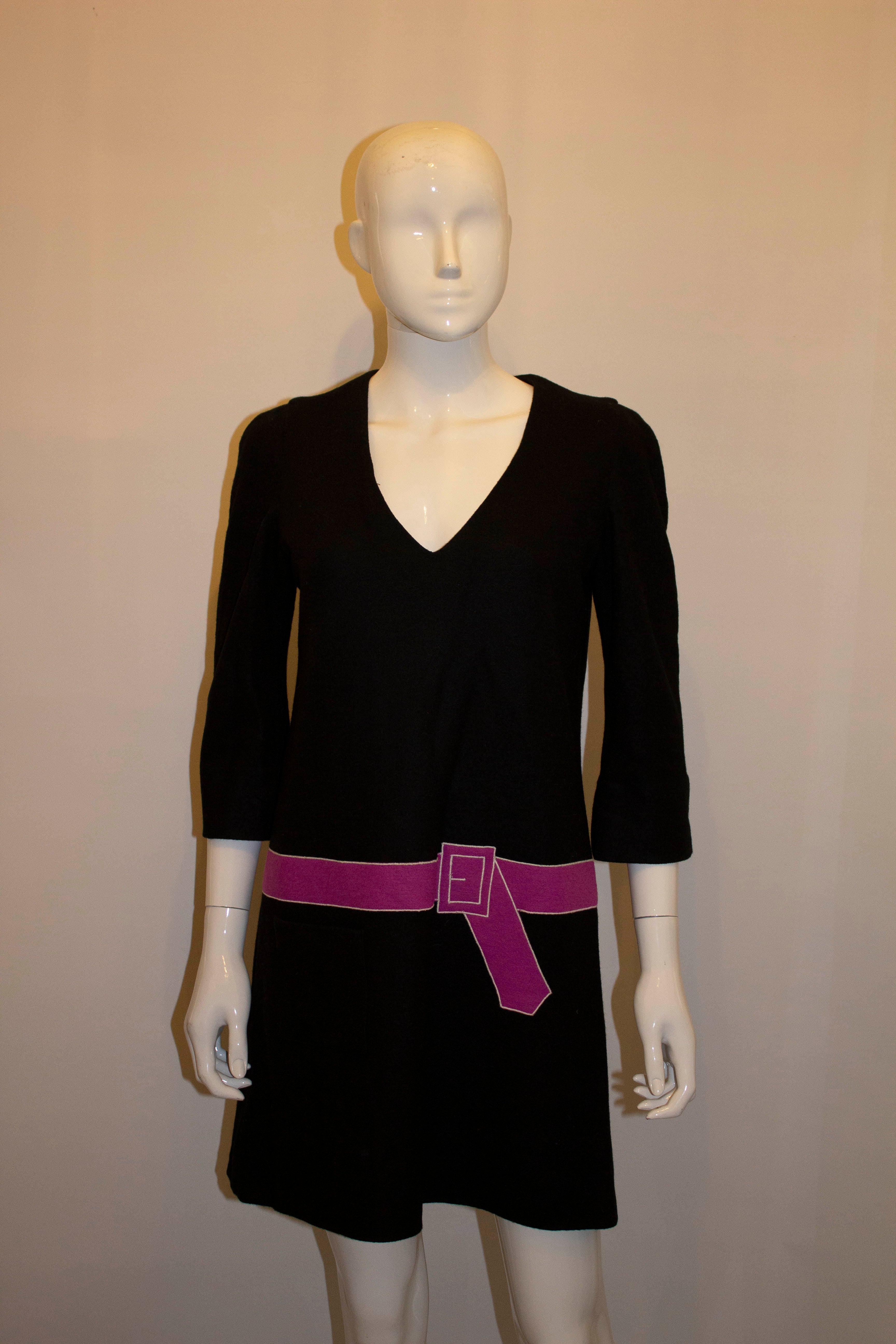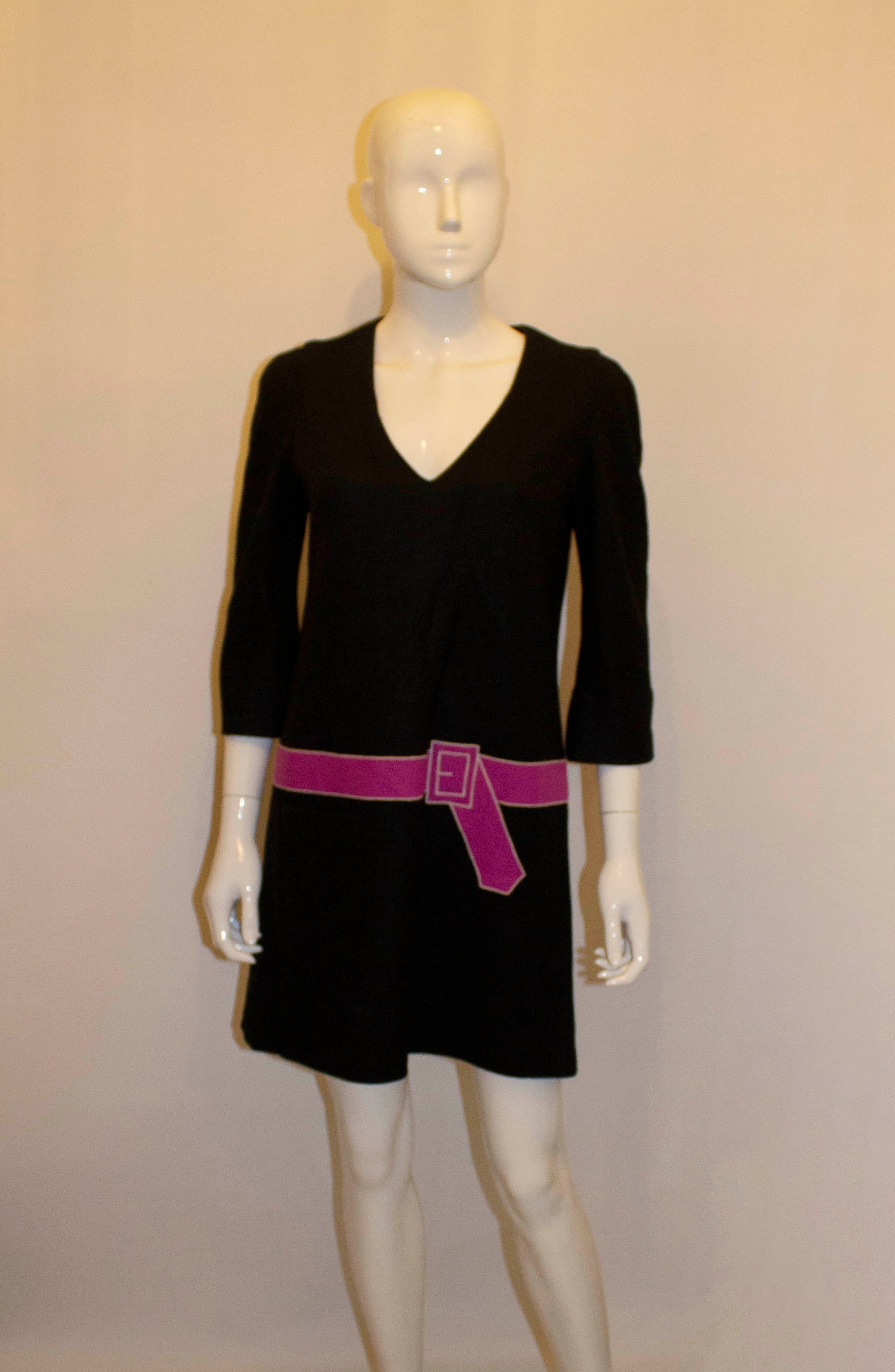 A fun and easy to wear dress by Sonia Rykiel, Sonia line. The wool dress has a v neckline, central back zip opening and a pink fake belt. It is fully lined and has a pocket on the left hand side. Size 40. Measurements: Bust 37'', length 34''