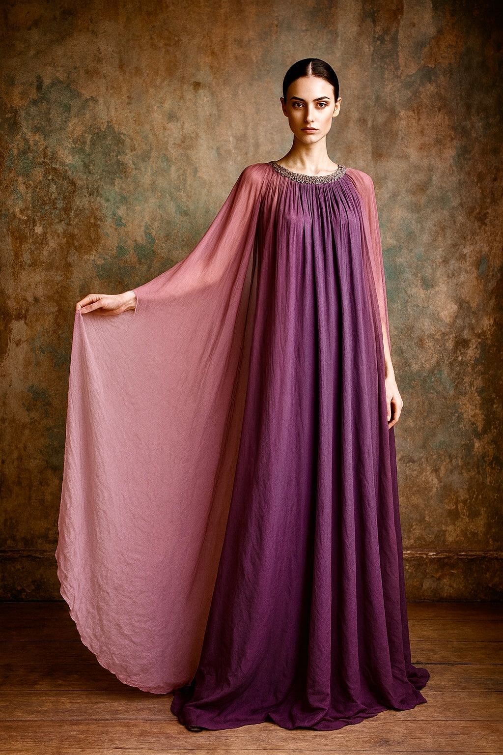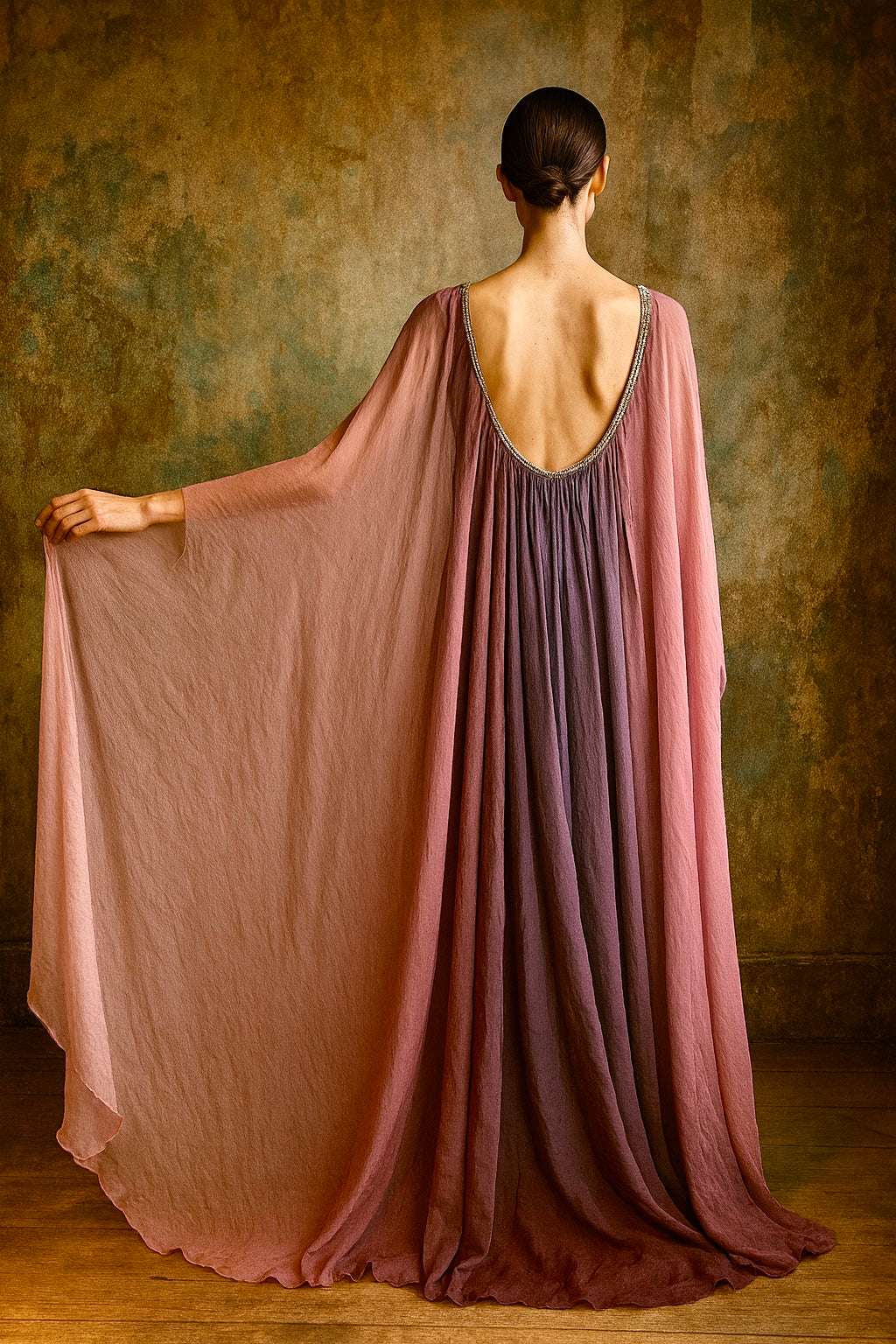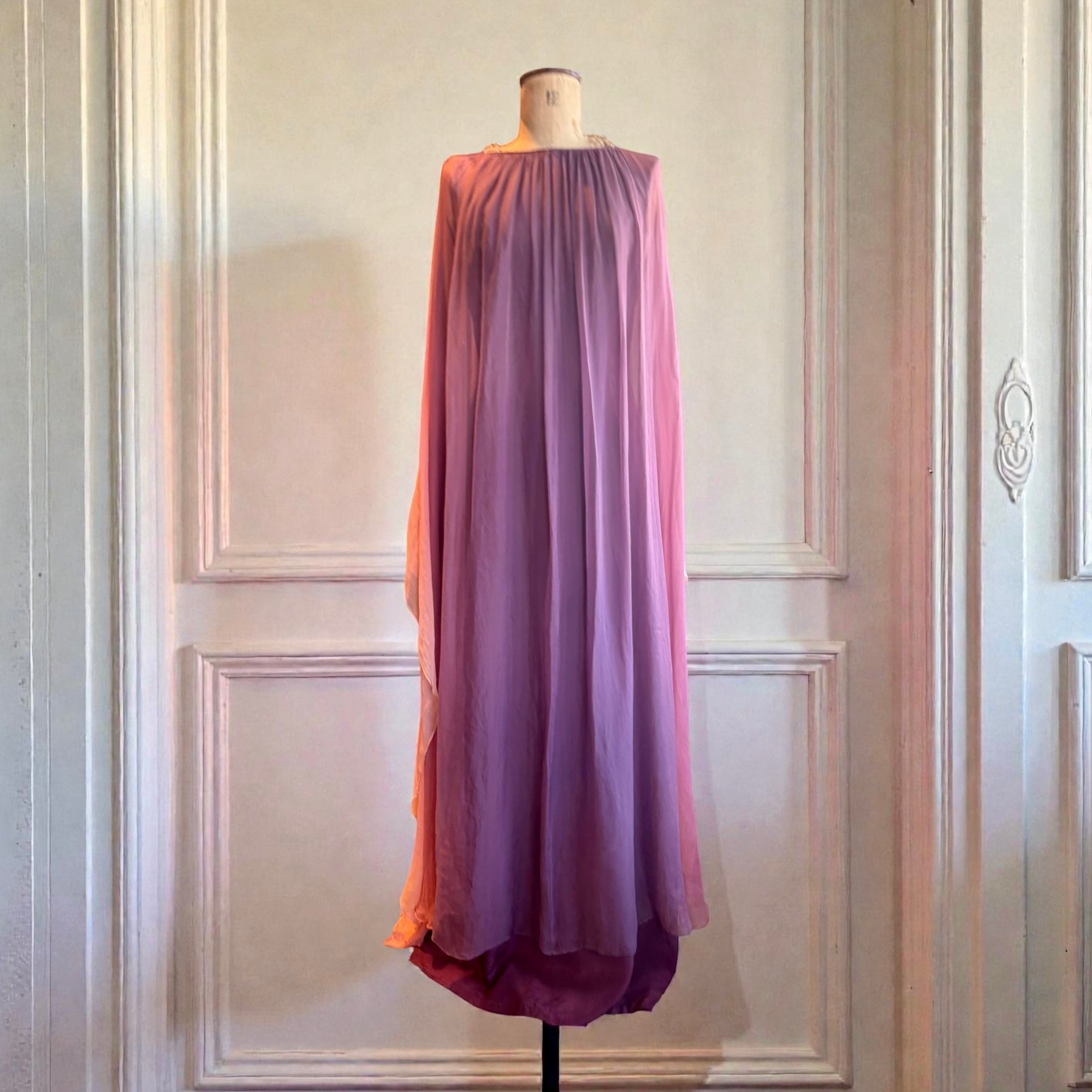 Yuki, for Rembrandt, 70s chiffon ombré antique pink dress