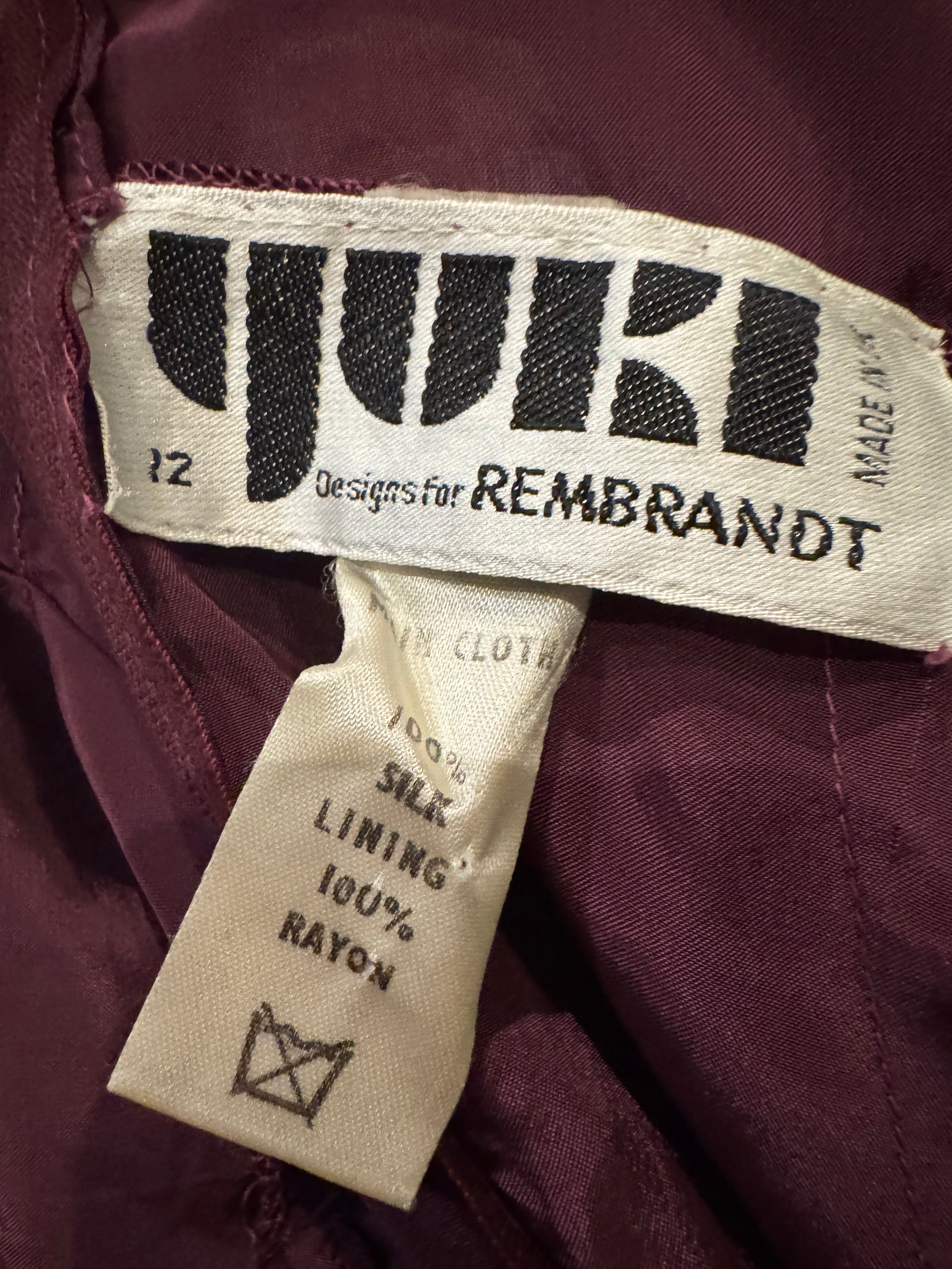 Introducing a rare and collectible Yuki 70s silk chiffon dress featuring a scoop neckline, a low scoop back, and an ombre effect of antique pinks creating an ethereal whimsical effect. This dress offers a unique and timeless look for any age. Comes fully lined in burgundy silk.