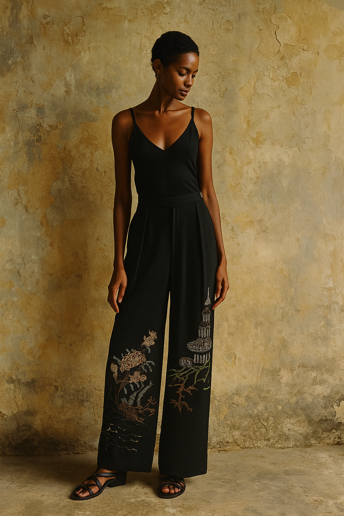 Dries Van Noten, 90s beaded chinoiserie silk trousers