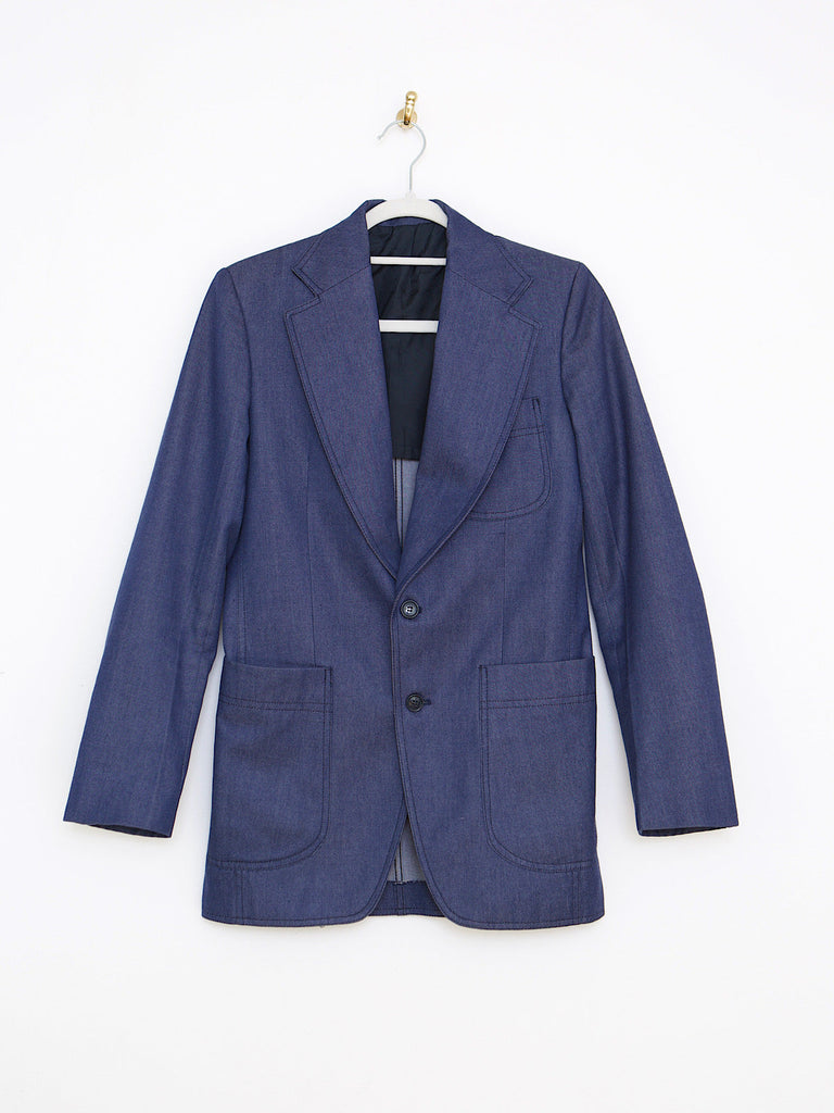 VINTAGE BLUE WOOL TWEED COAT SMALL CHECK PRINT