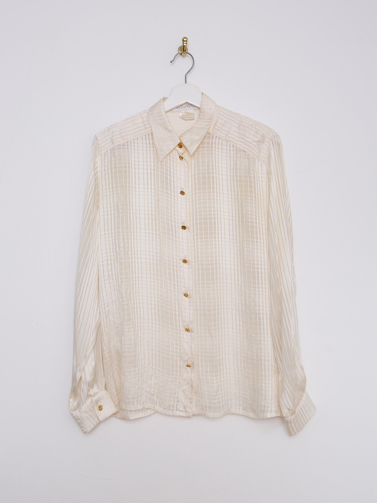 90S VINTAGE ESCADA SILK CREAM SHIRT DISCRET TARTAN PRINT
