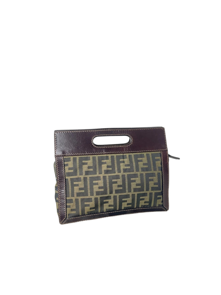 Vintage Fendi Zucca Canvas & Leather Clutch / Handle Bag