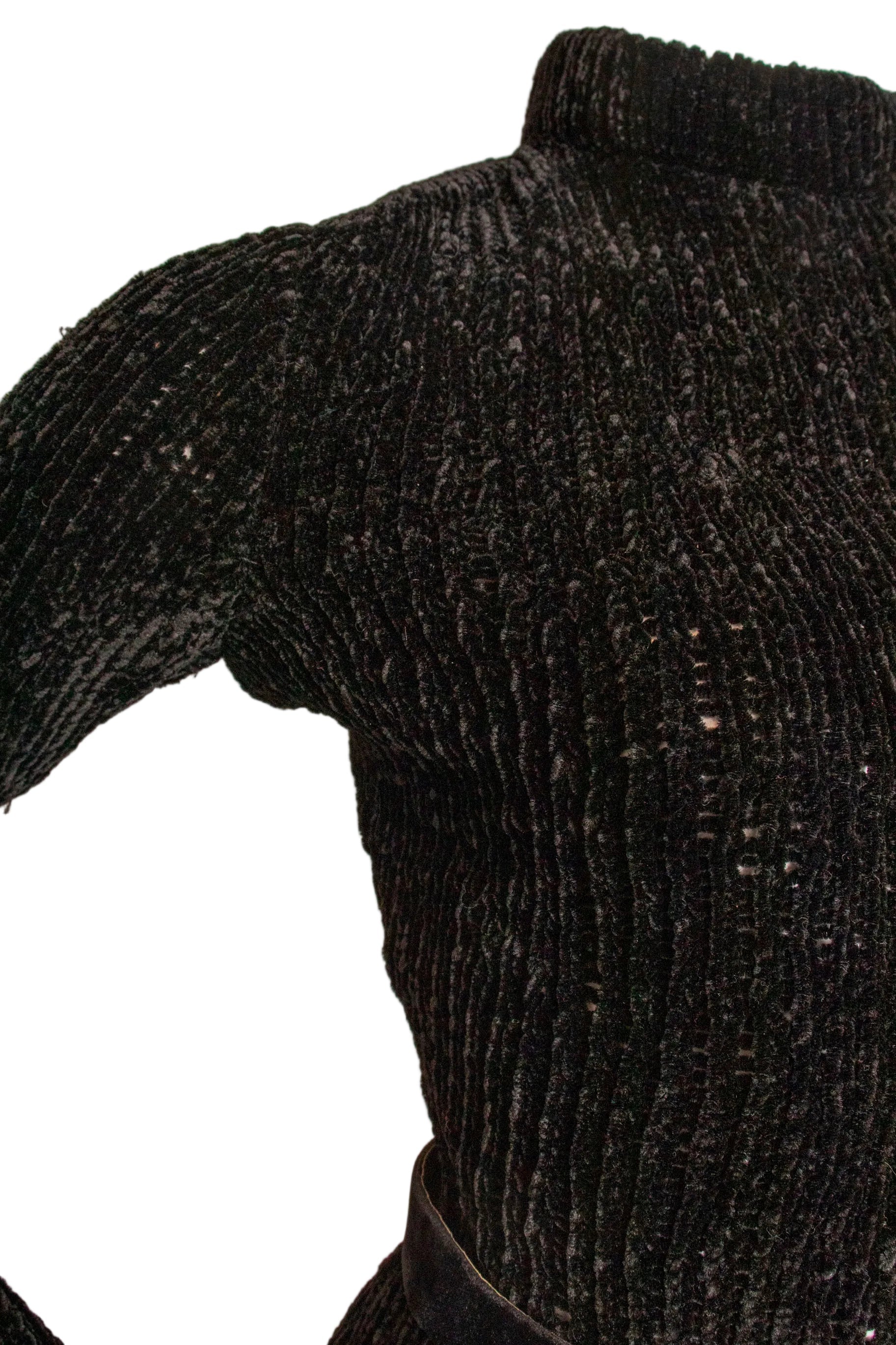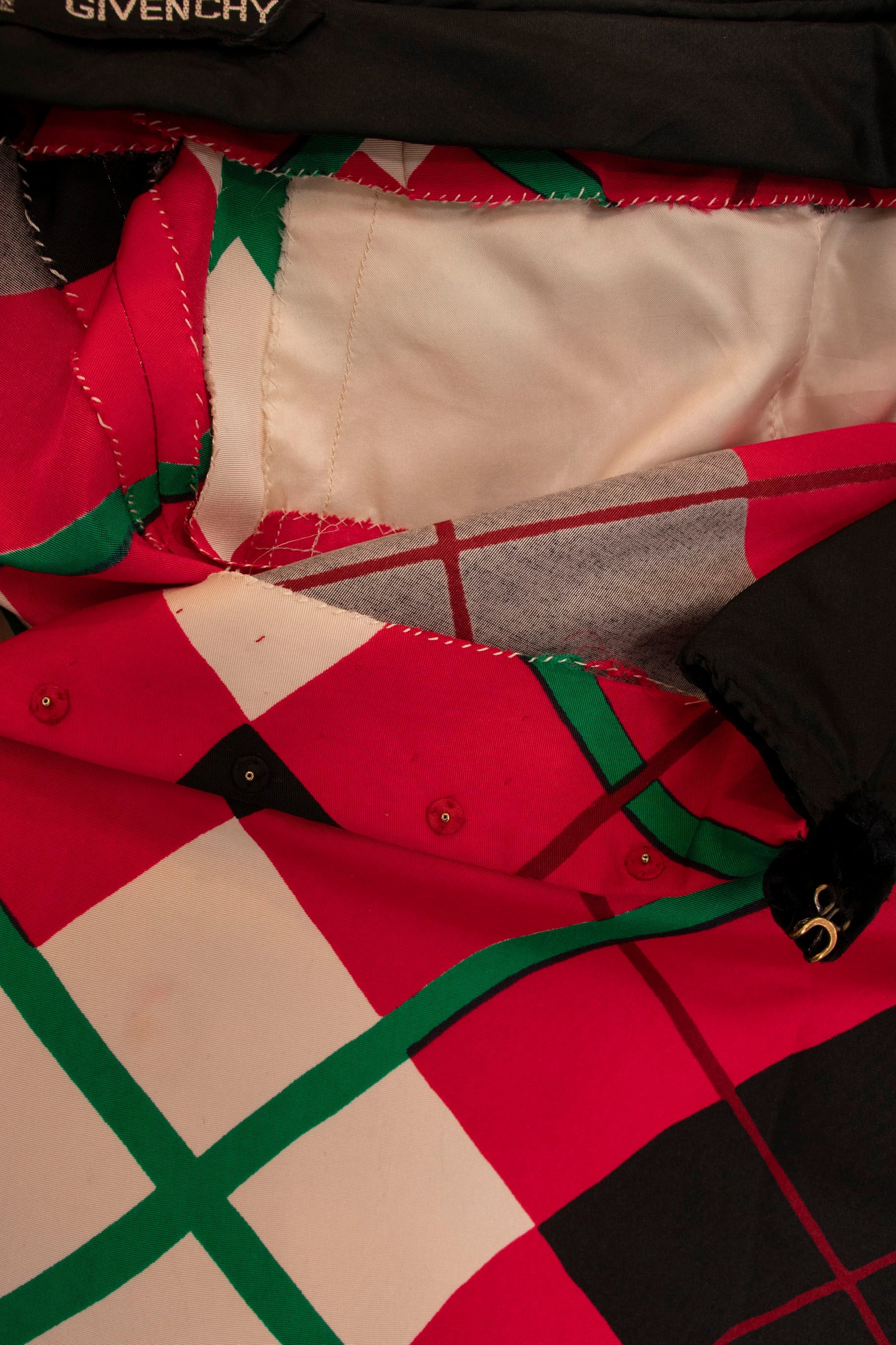 This exceptional Givenchy couture set from 1976 represents a defining moment in fashion history. The coordinated plaid skirt and chenille sweater showcase the house's signature sophistication, featuring a mock-collar design and functional zip-back closure. Our expert restoration team carefully addressed minor imperfections, preserving the piece's original integrity while bringing it to wearable condition. The unlined construction and included skinny belt complete this collector's treasure.