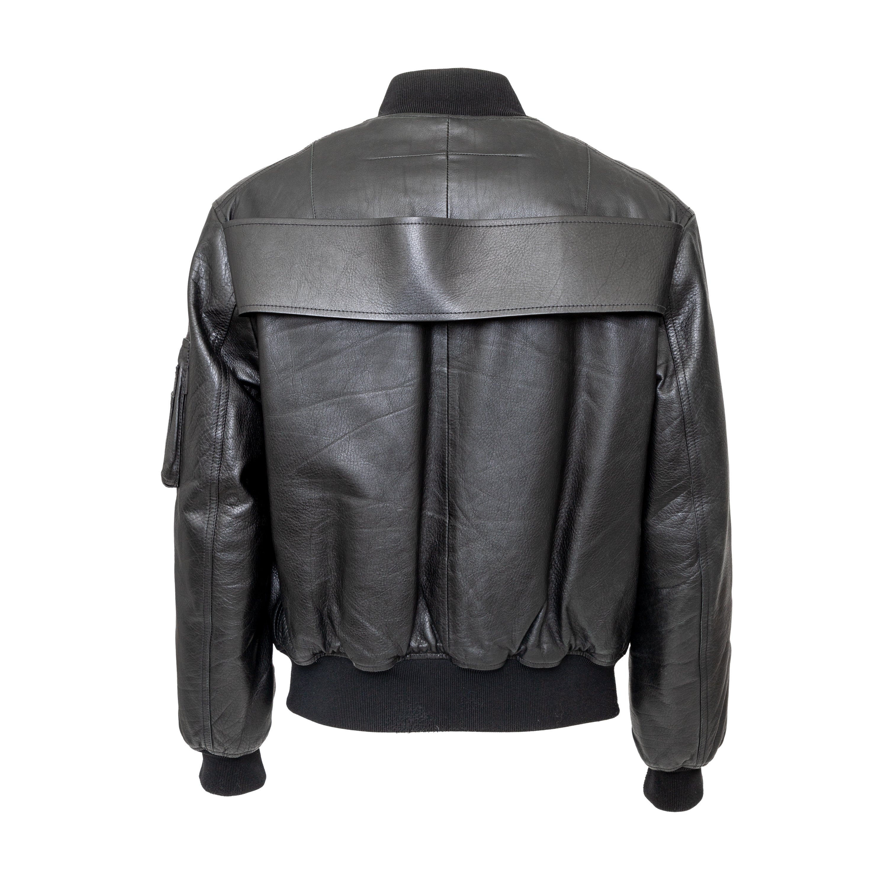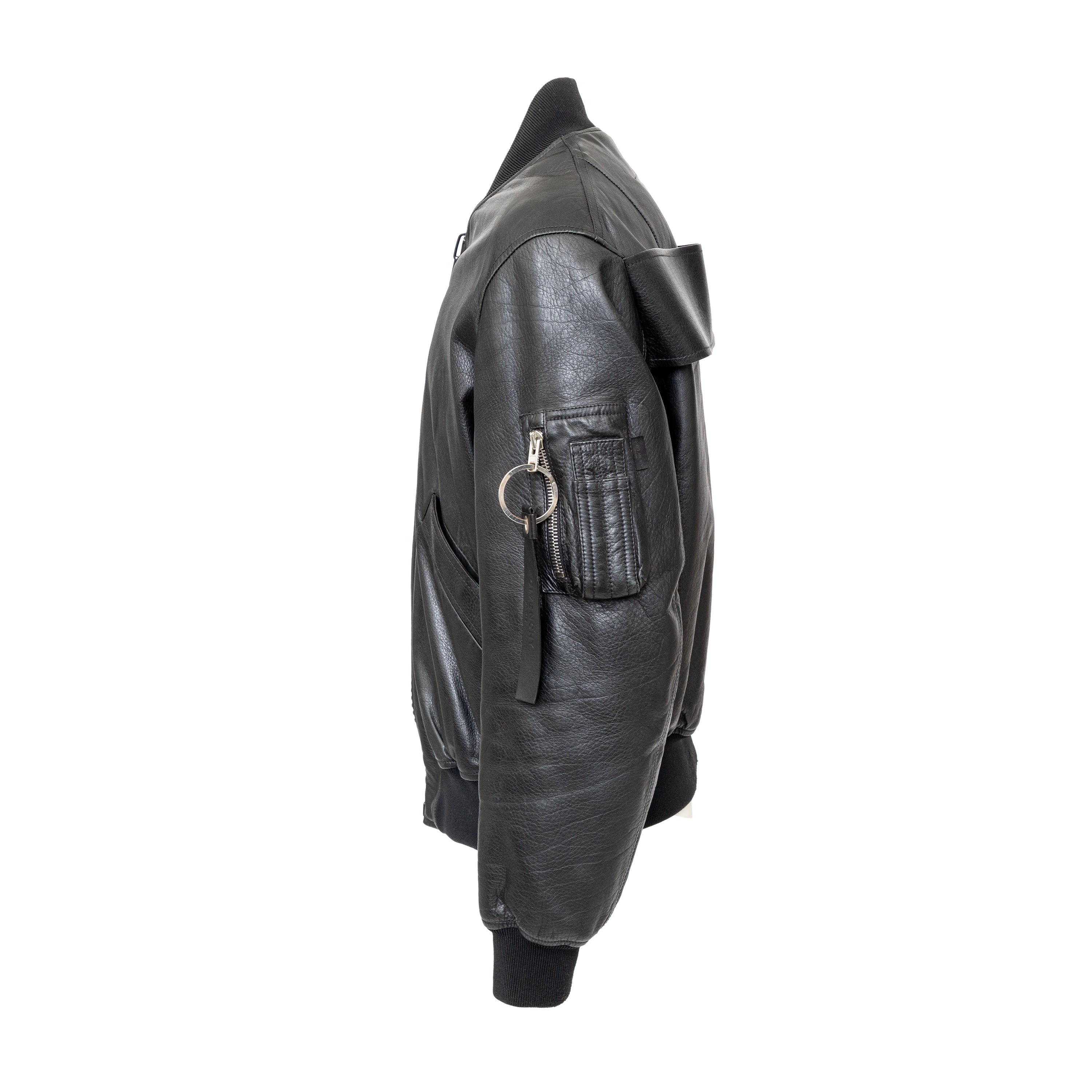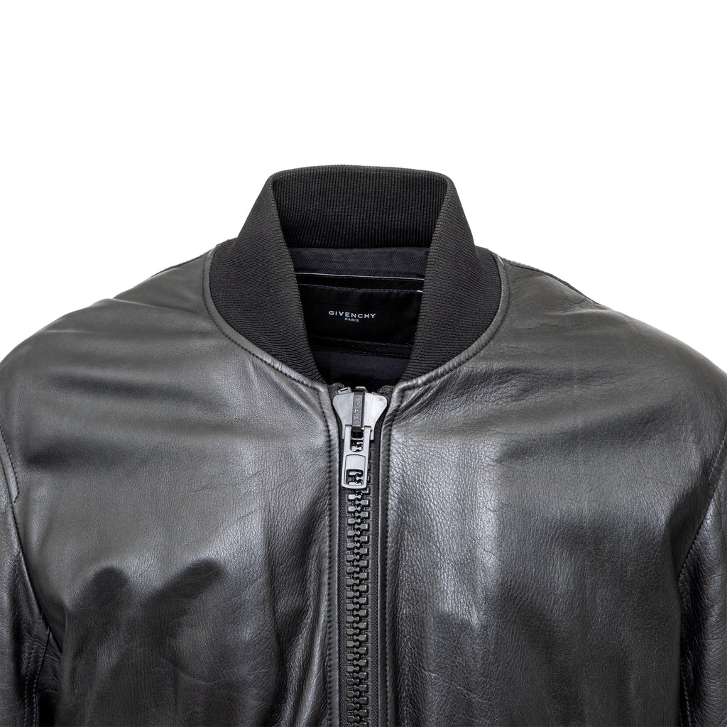 Expertly crafted from supple calfskin leather, Givenchy's bomber jacket from the FW 2014/15 runway collection boasts a loose fit and avant garde style. With oversized zipper details and a sleeve pocket, this jacket is perfect for a street style look.