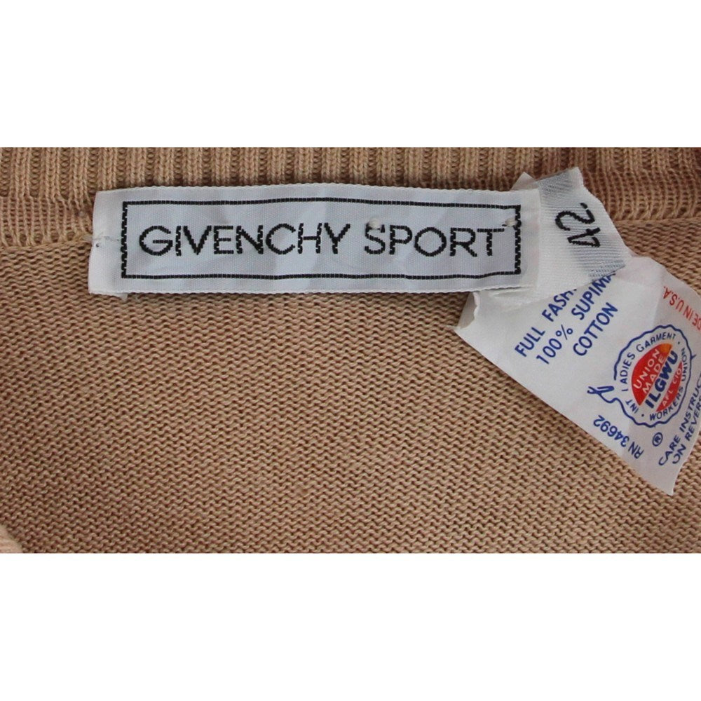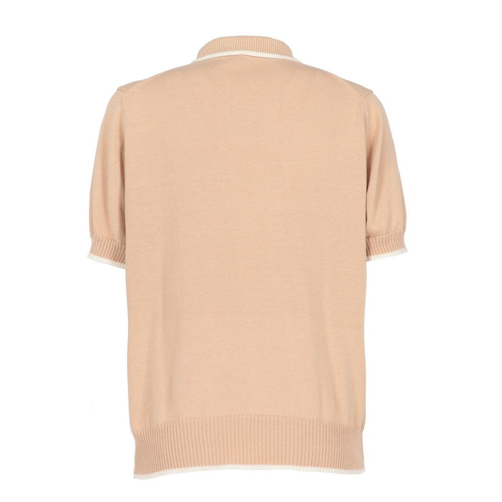 Givenchy Sport nude pink knitted polo-shirt with white details. Ribbed collar, cuffs and bottom. Two front buttons.