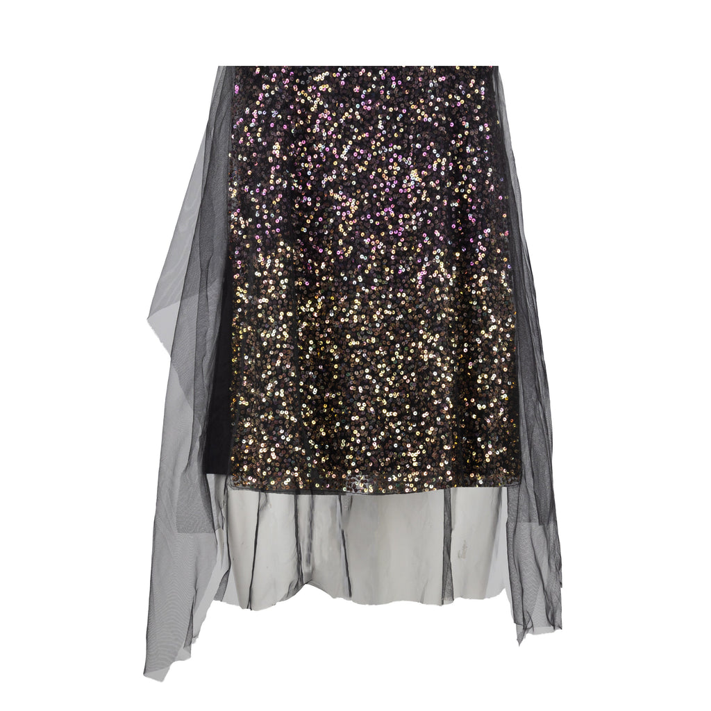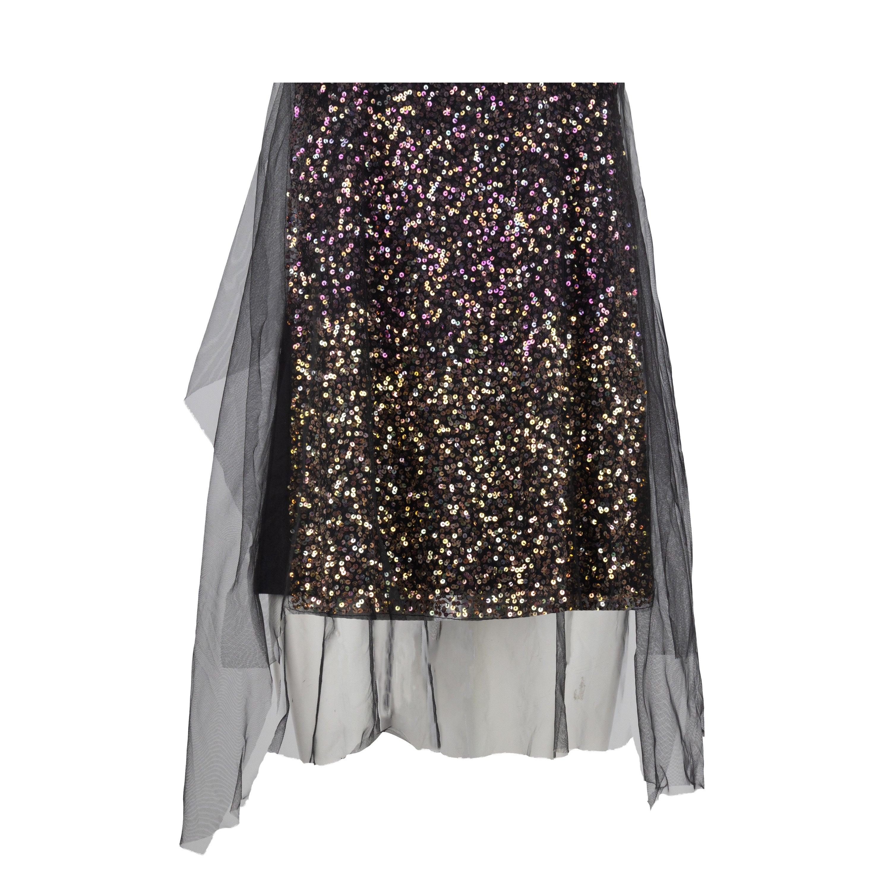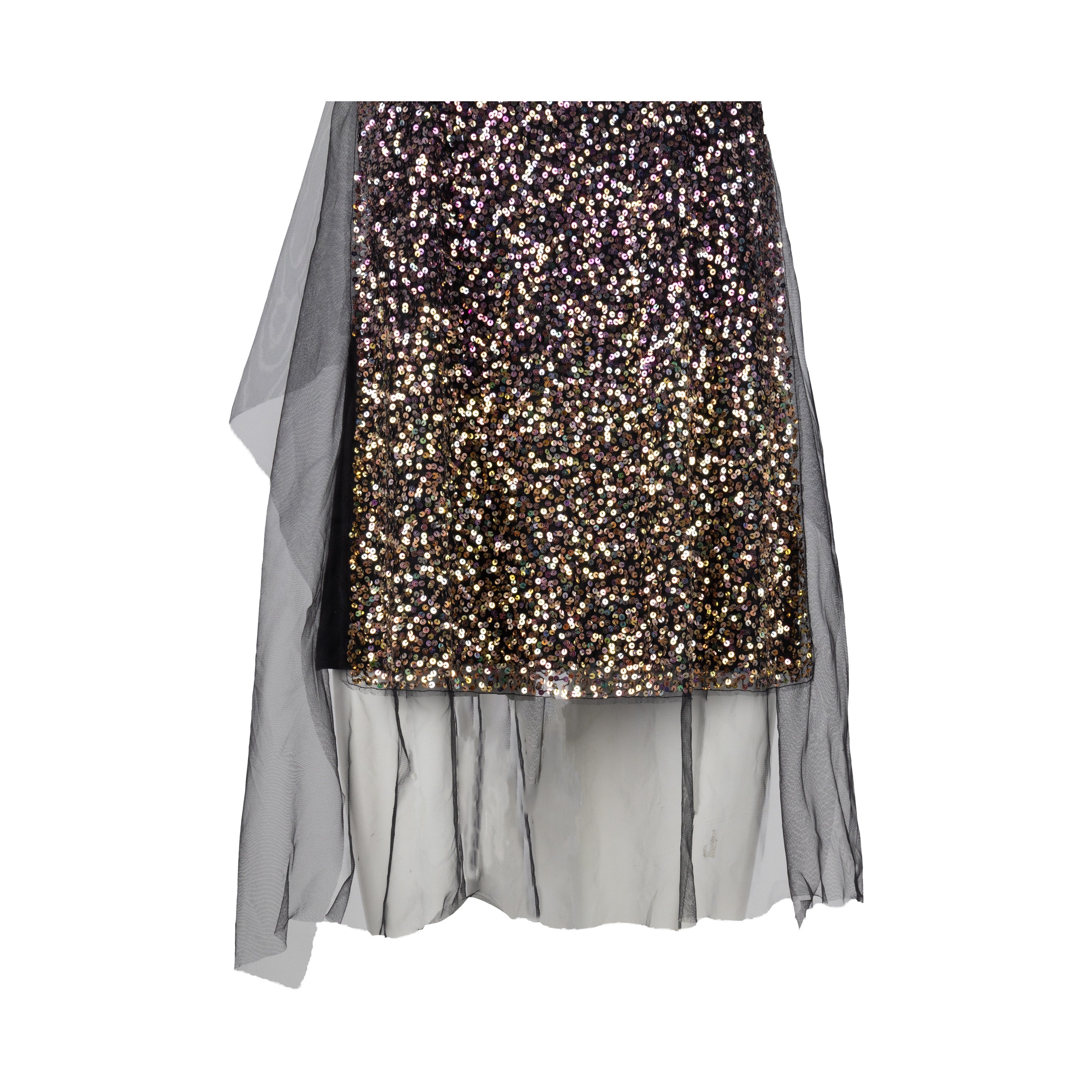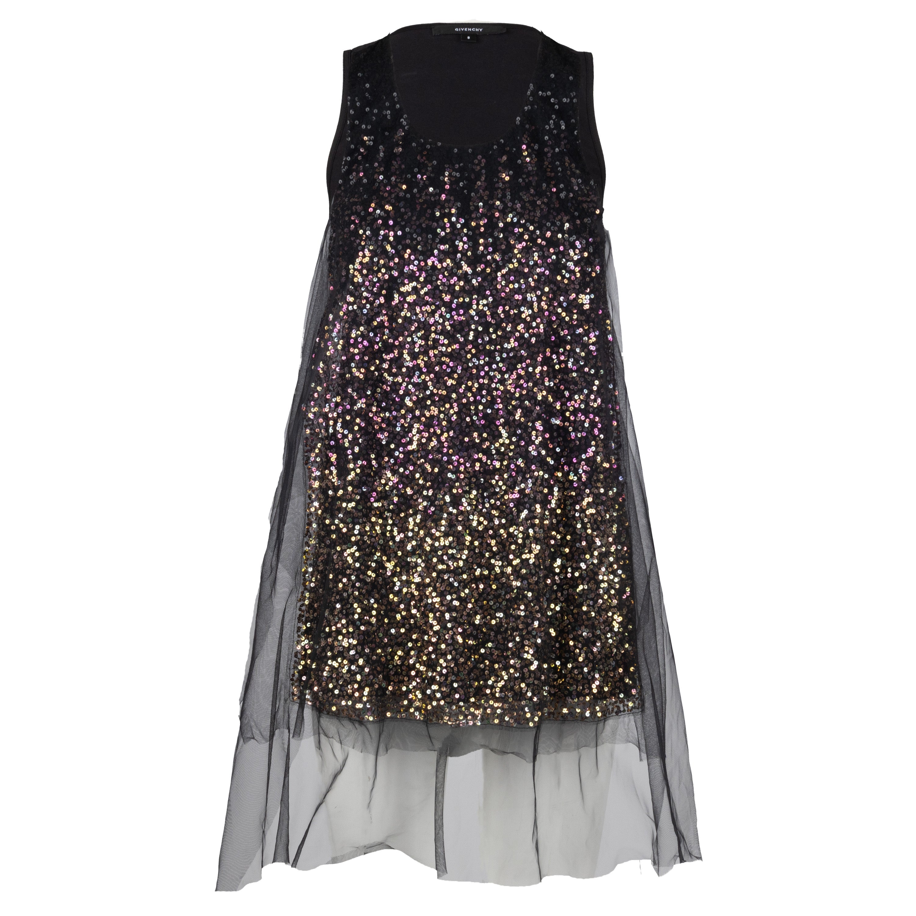 This Givenchy Sequin Dress is expertly crafted with two layer, a cotton body and polyamide mesh with a multicolor and golden sequin panel, adding an extra level of dimension. Its sleeveless design and deep round neckline provide a flattering fit, while the tulle skirt cascades over the short length.