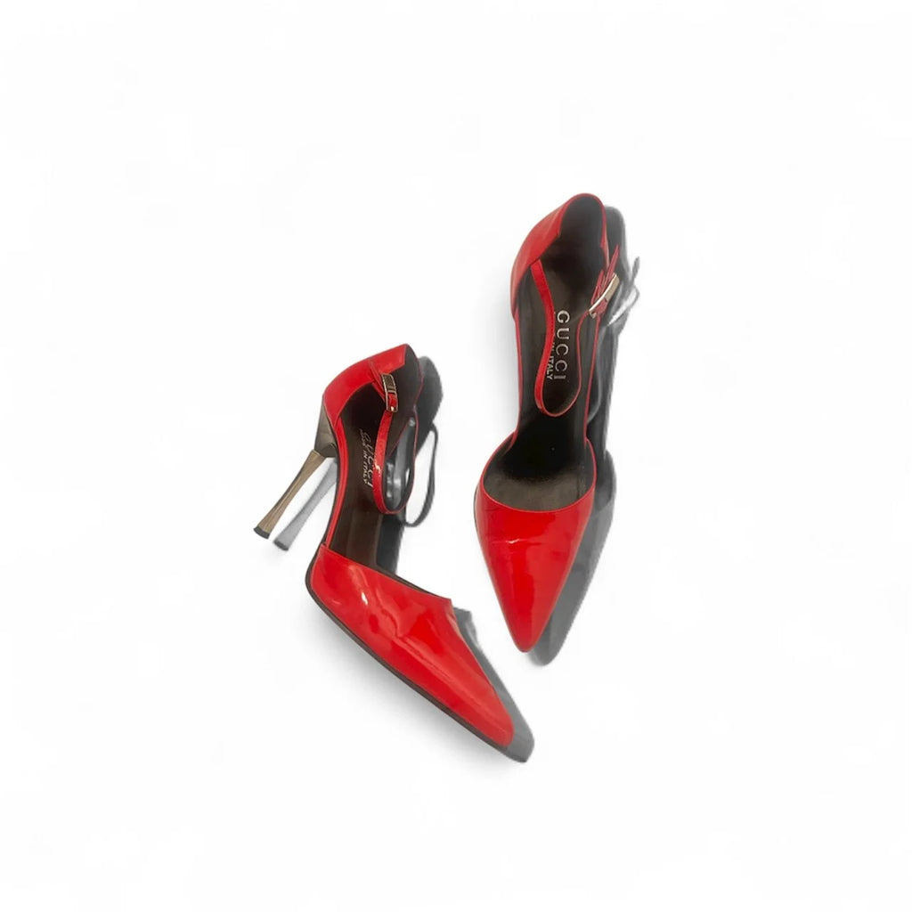 Vintage Tom Ford for Gucci F/W 1997 Red Leather Ankle‑Strap Stiletto – Size IT 37 (Runs Large –