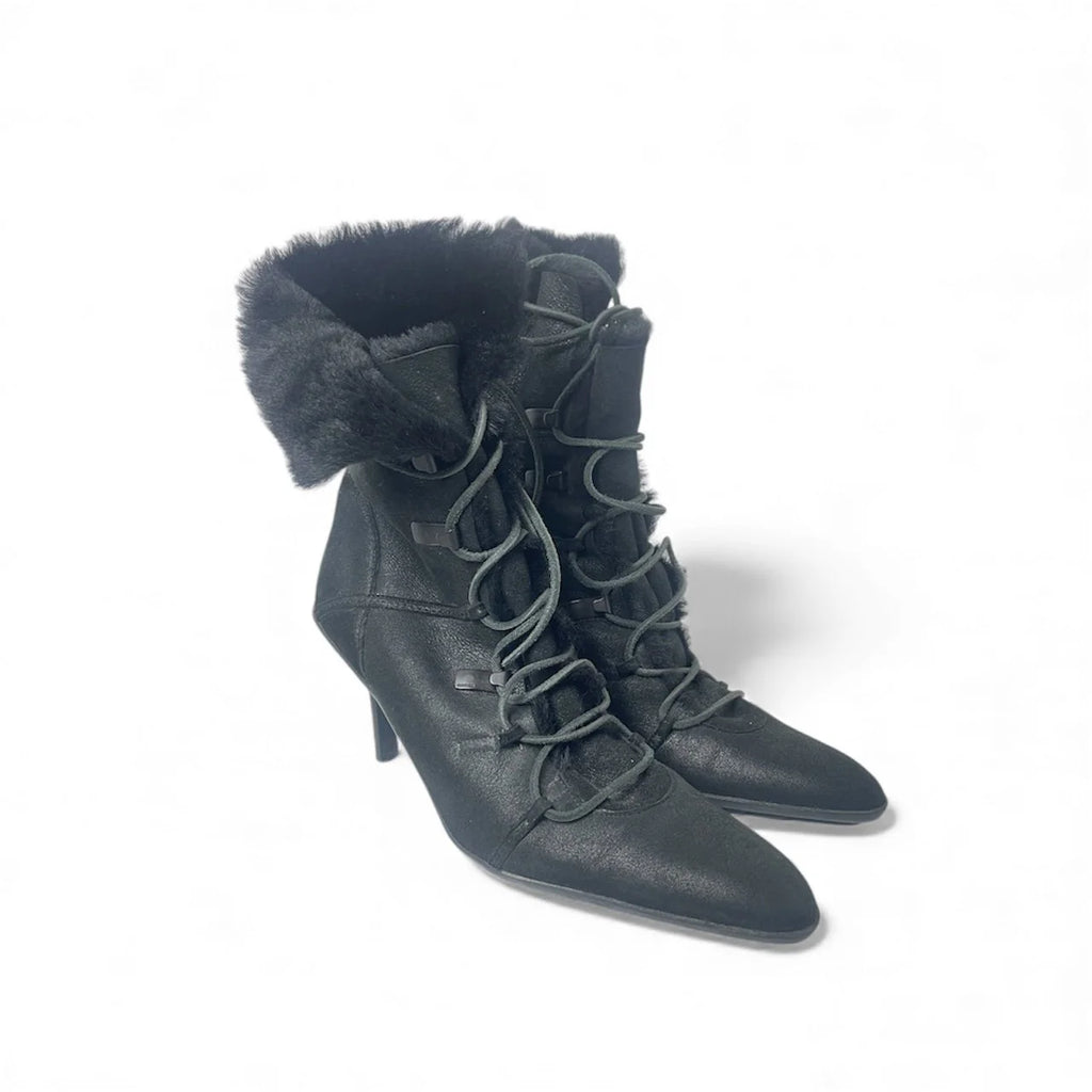 Gucci Vintage Shearling-Lined Lace-Up Heeled Boots — Size 41