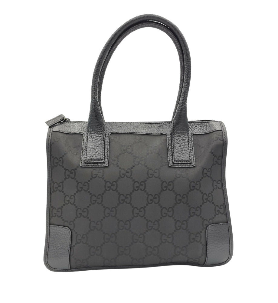 GUCCI BLACK MONOGRAM NYLON LEATHER TOTE BAG