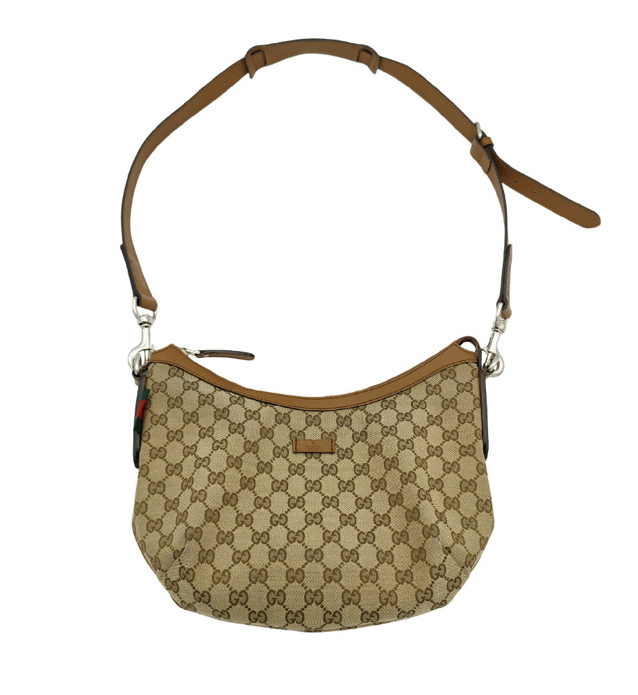 GUCCI BROWN MONOGRAM HALF MOON SHOULDER BAG