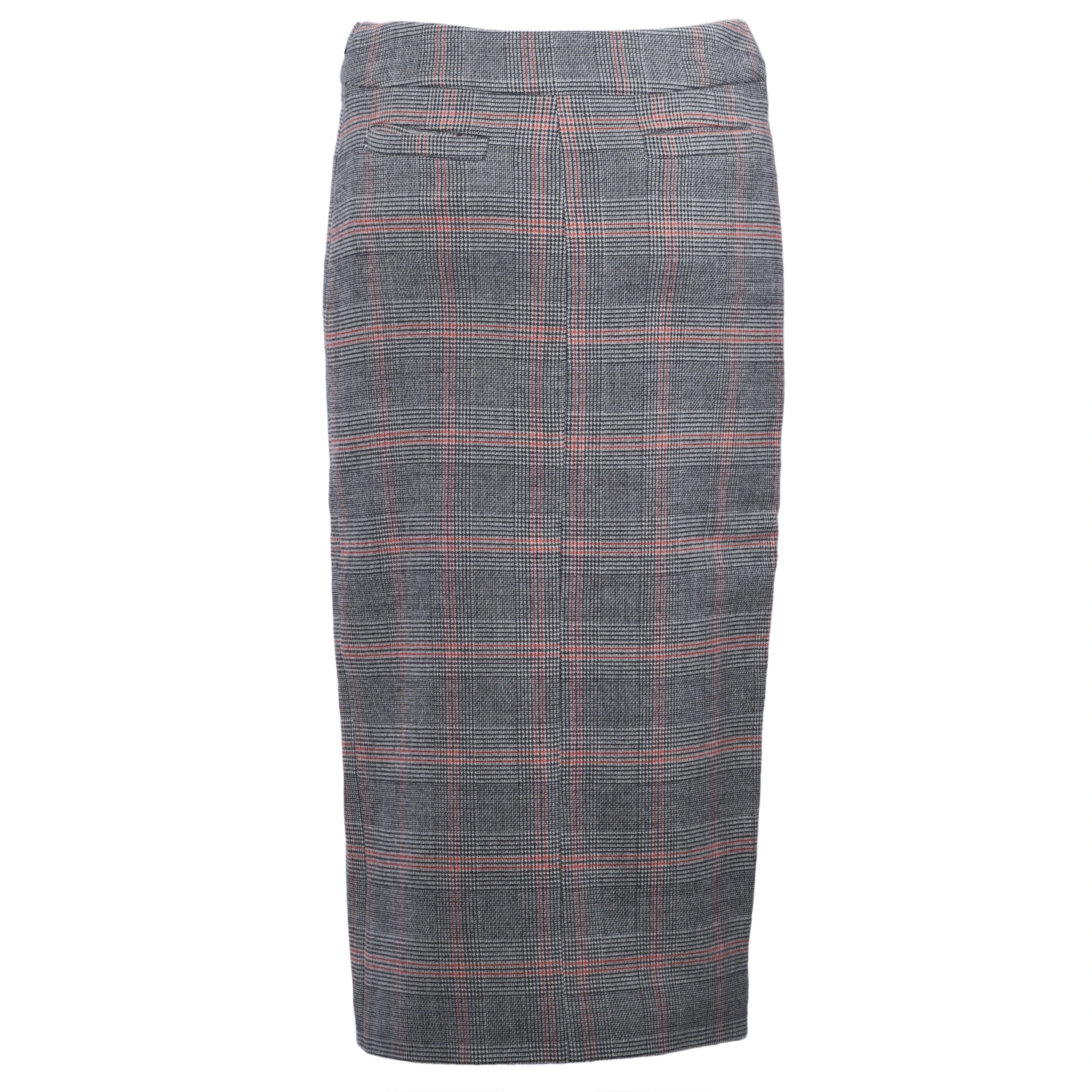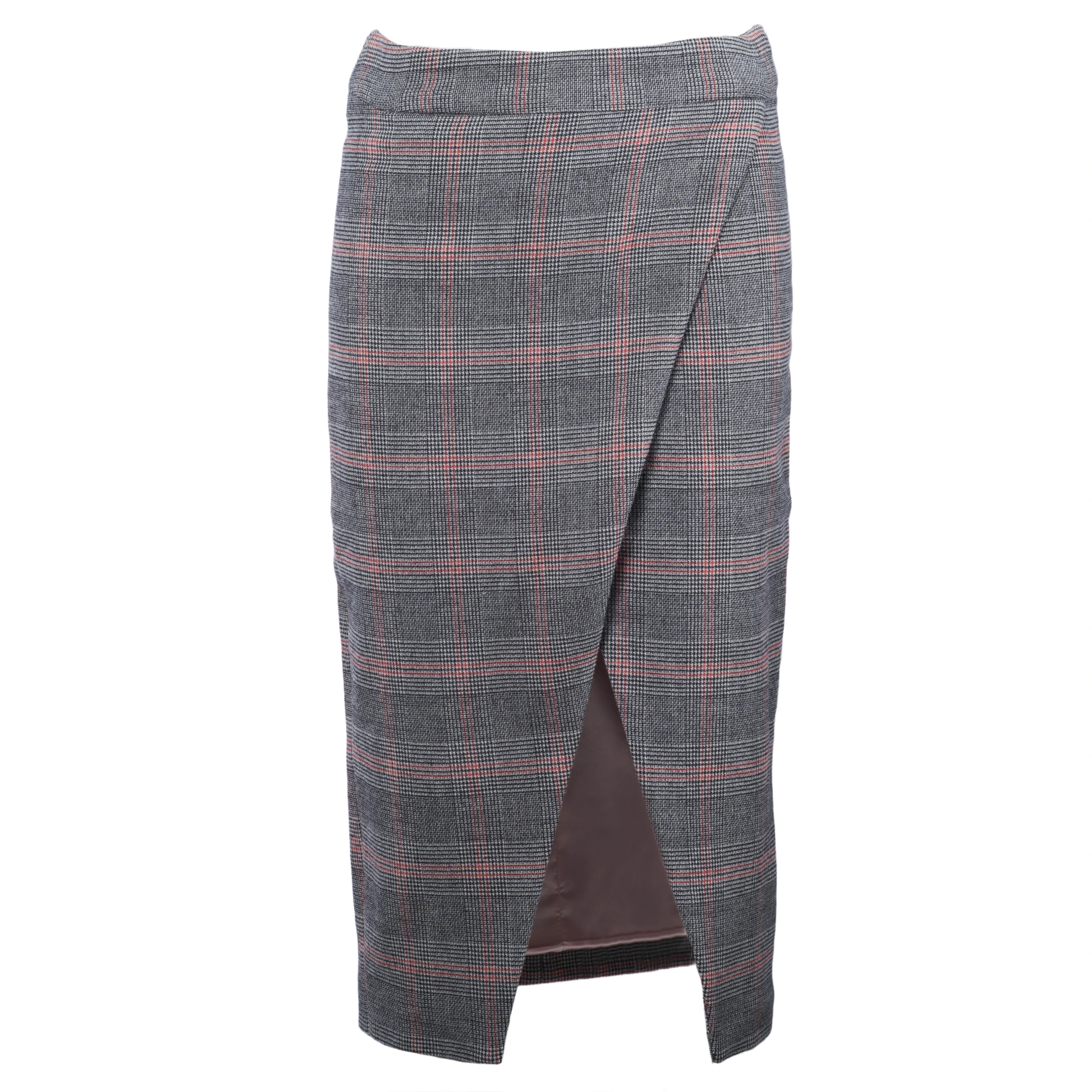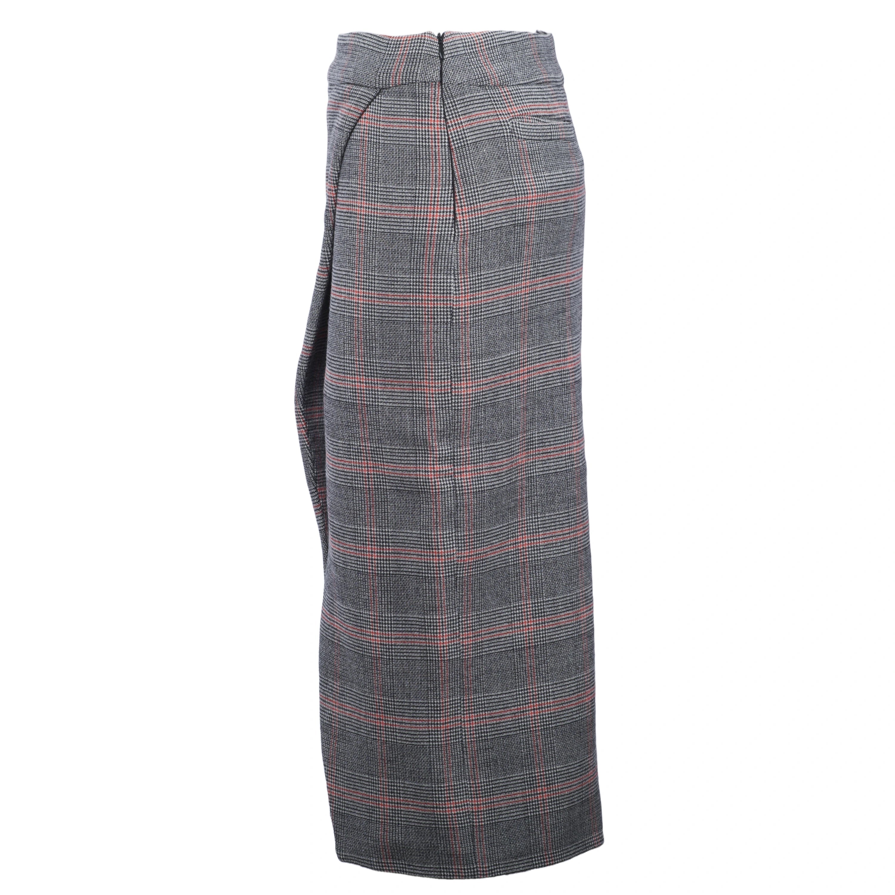The front wrap detail adds movement and character, while the Scottish plaid pattern gives it a timeless charm, making the skirt perfect for both office outfits and more casual occasions.