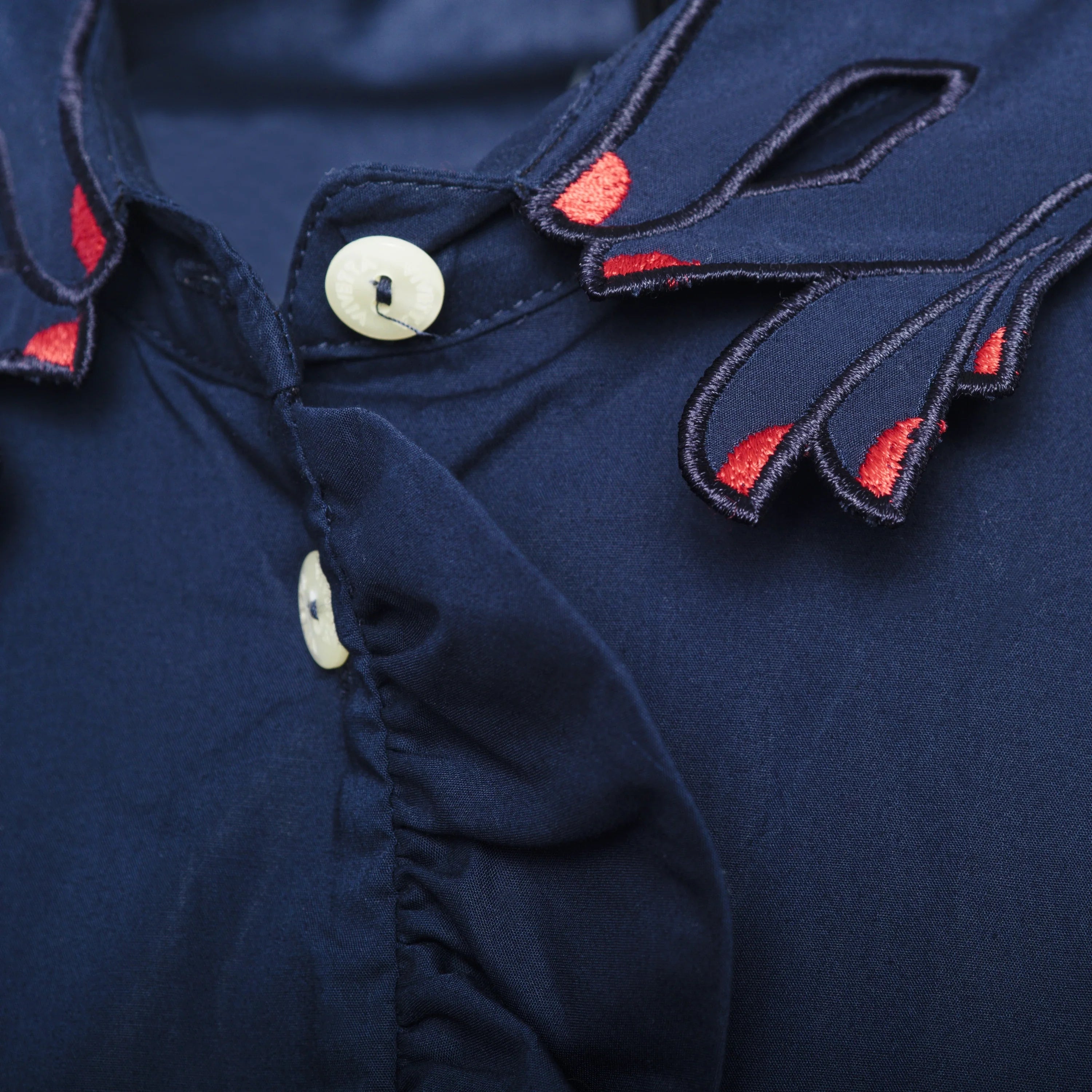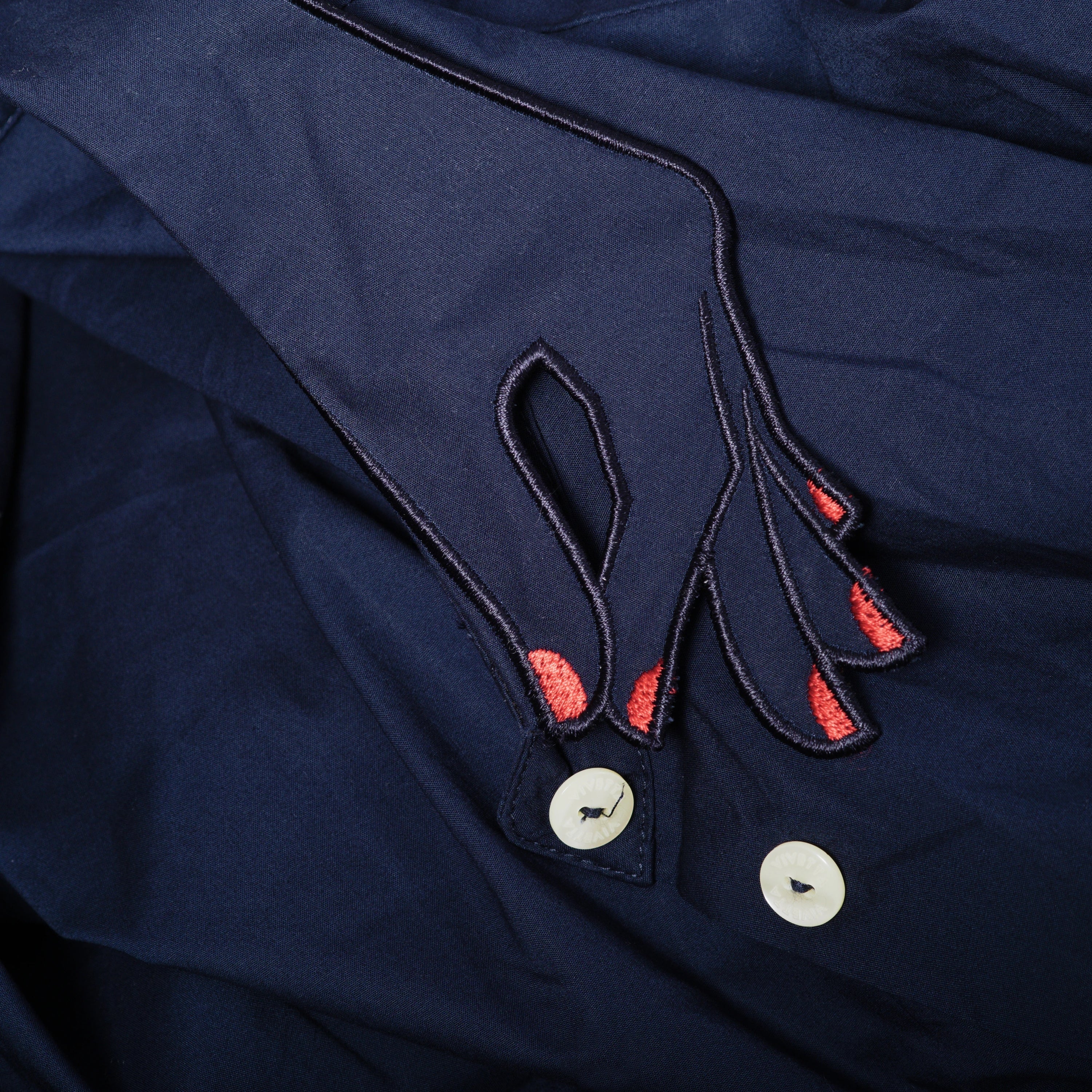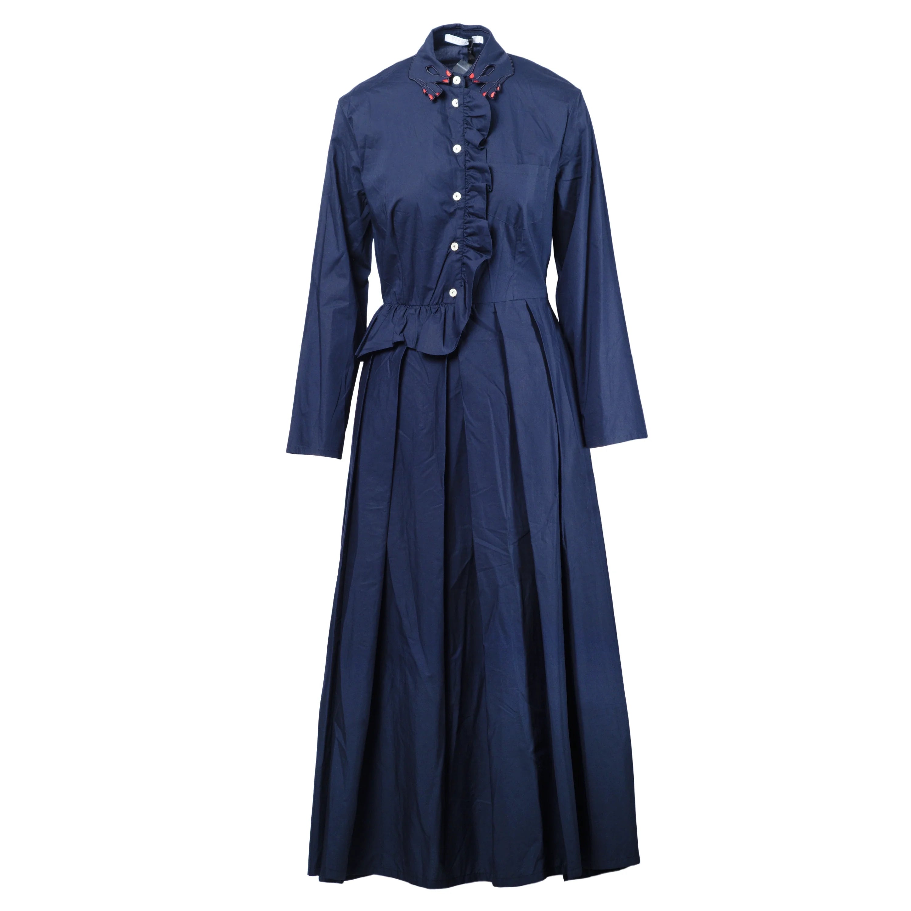 Long-sleeve dress by Vivetta in navy blue, with a flowing cut that flatters every curve, while the long sleeves and the unique collar featuring two hands joined together add a poetic and distinctive detail, making the dress a true symbol of style.