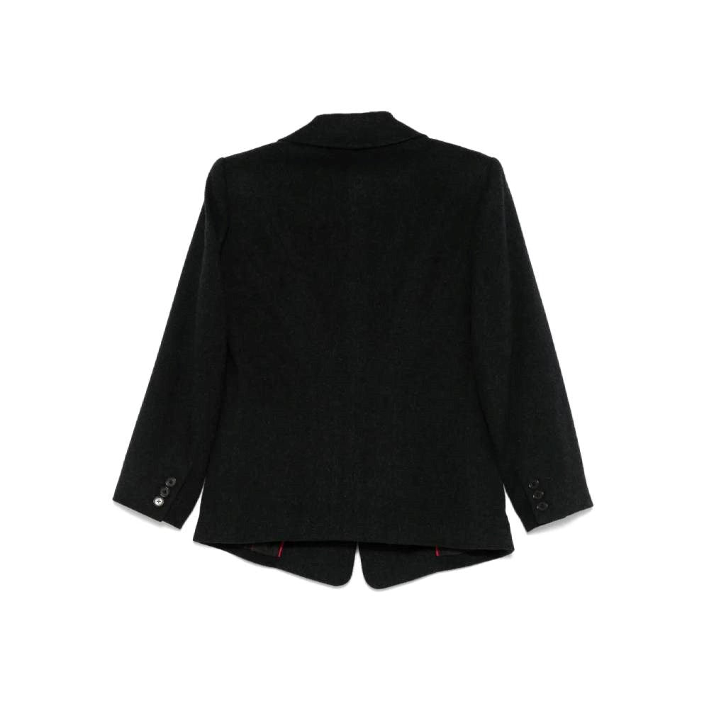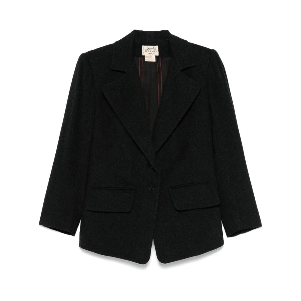 Hermès dark blue cashmere 90s jacket. Classic lapel collar, front button fastening, flap pockets and buttoned cuffs. Padded shoulders.