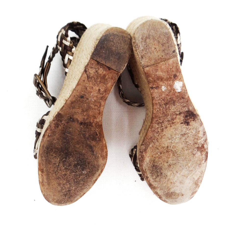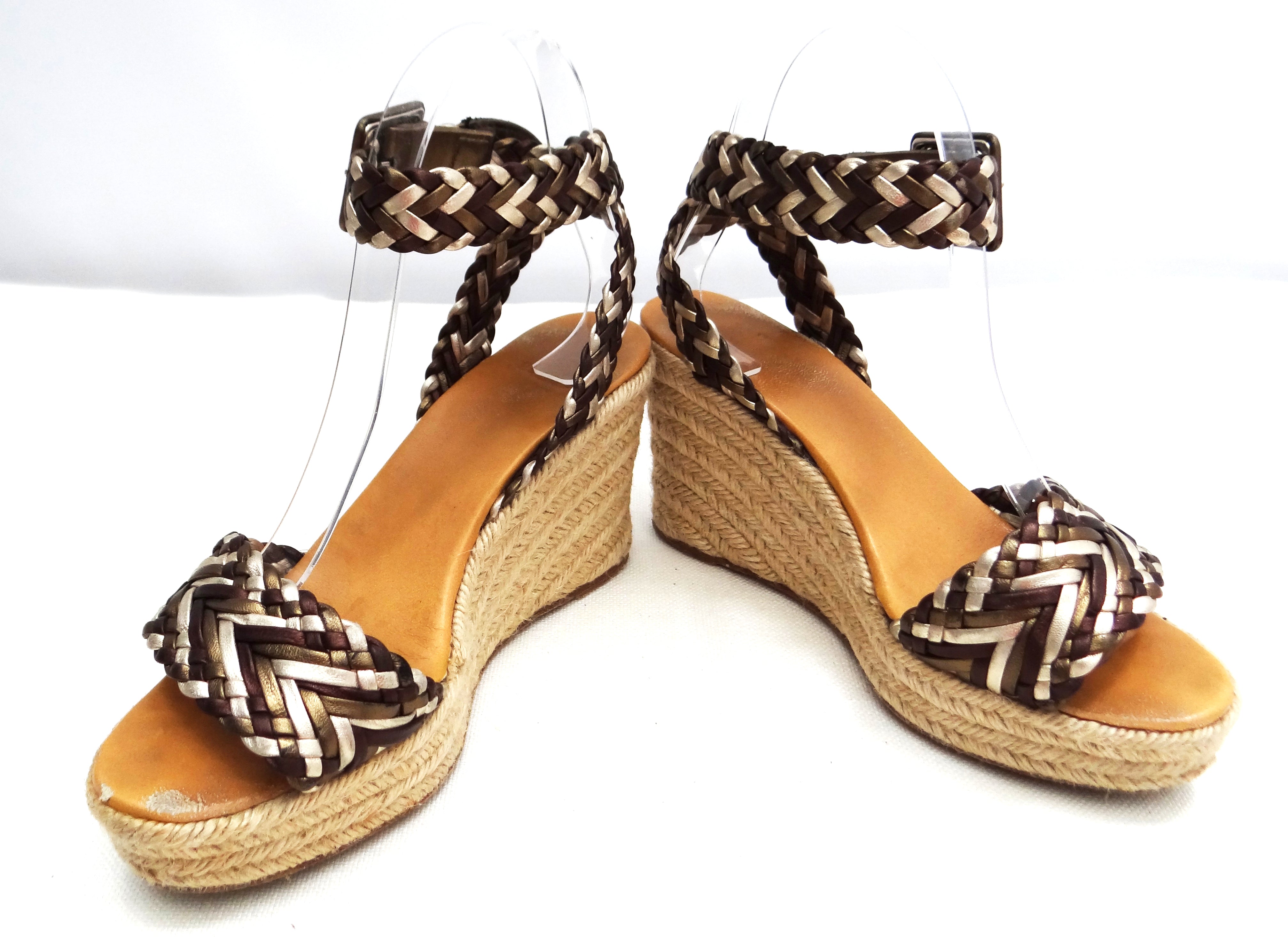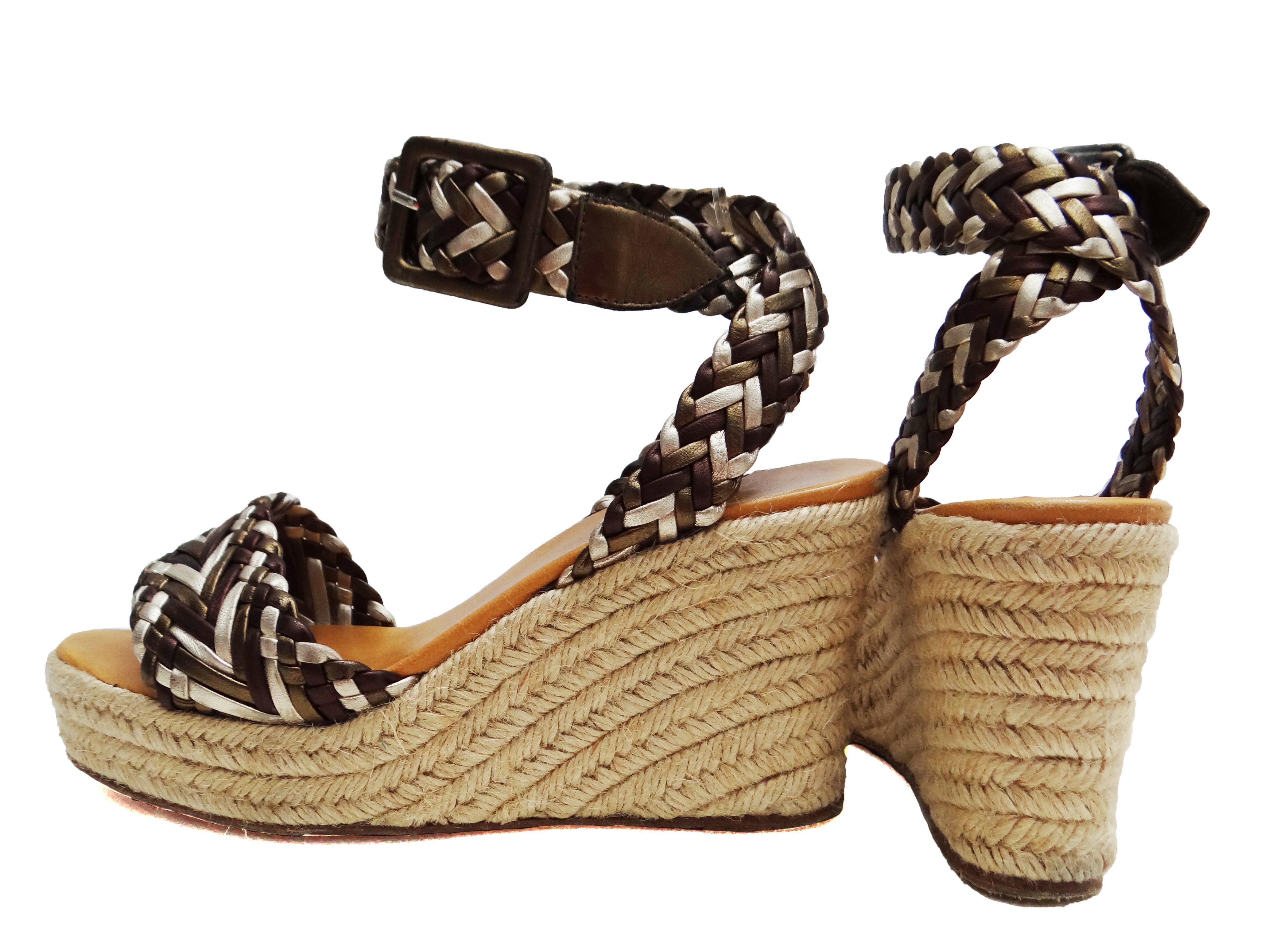 Hermes Rope Soled Platform Wedges with Plaited Straps, EU36