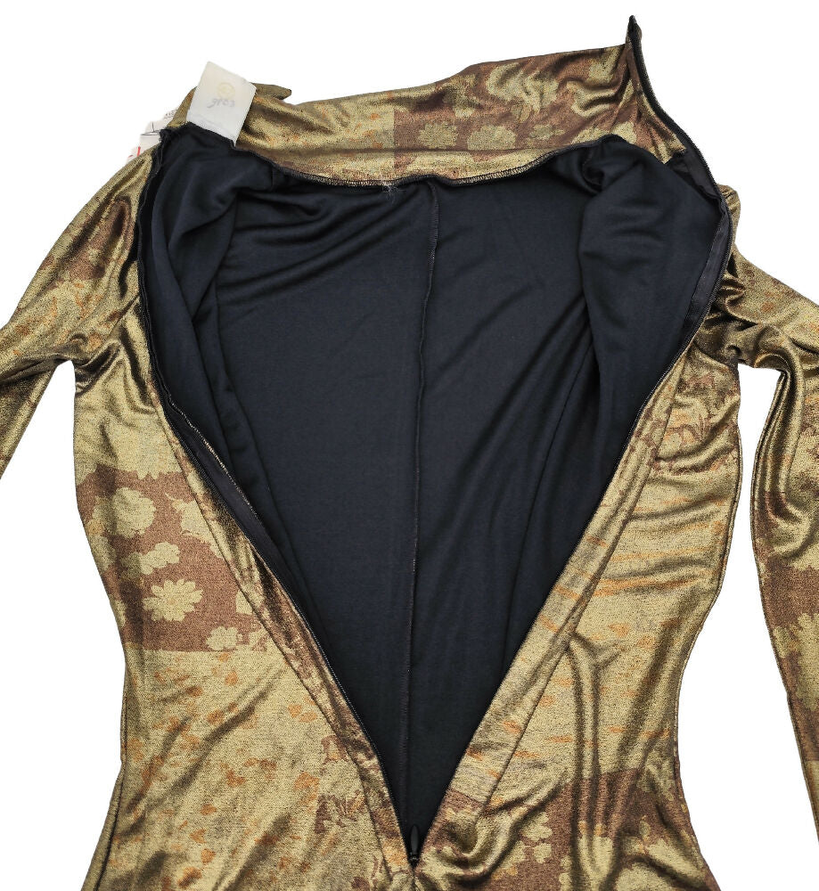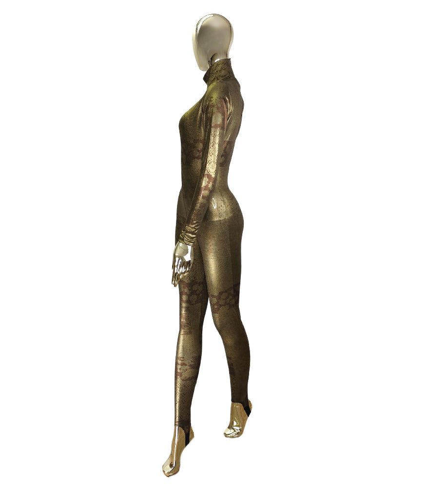 KRIZIA F/W 1994 RUNWAY GOLD BRONZE PRINTED CATSUIT