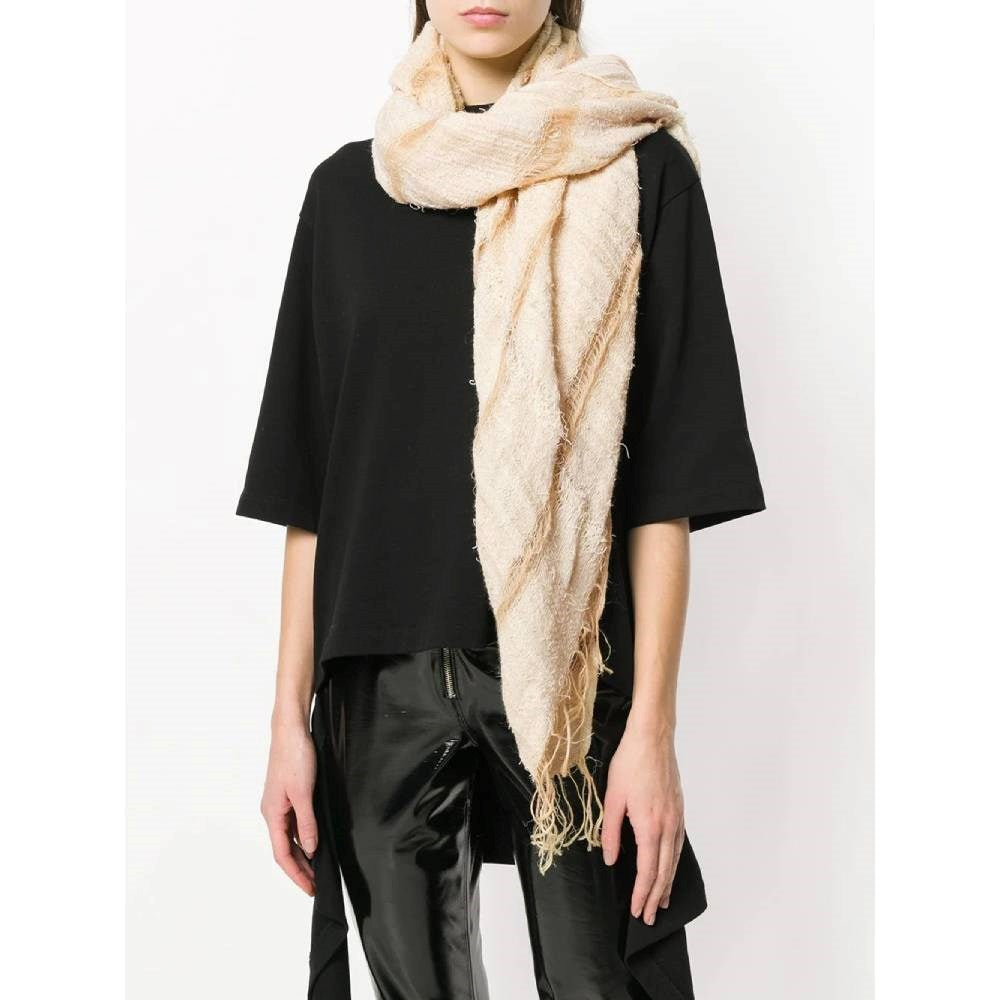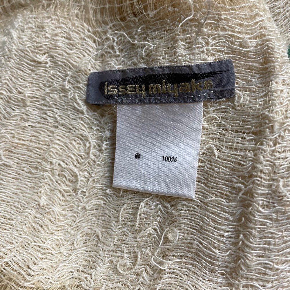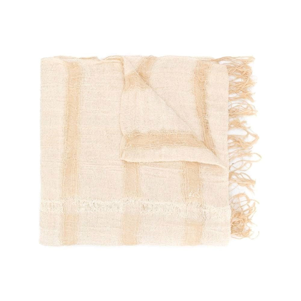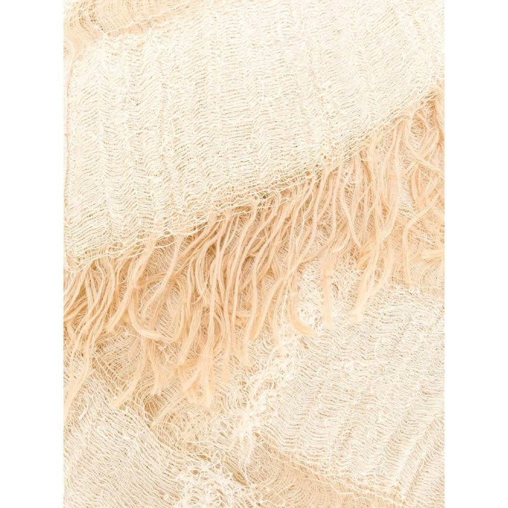 Issey Miyake beige cotton scarf with dark beige cut-out details and fringed edges.
